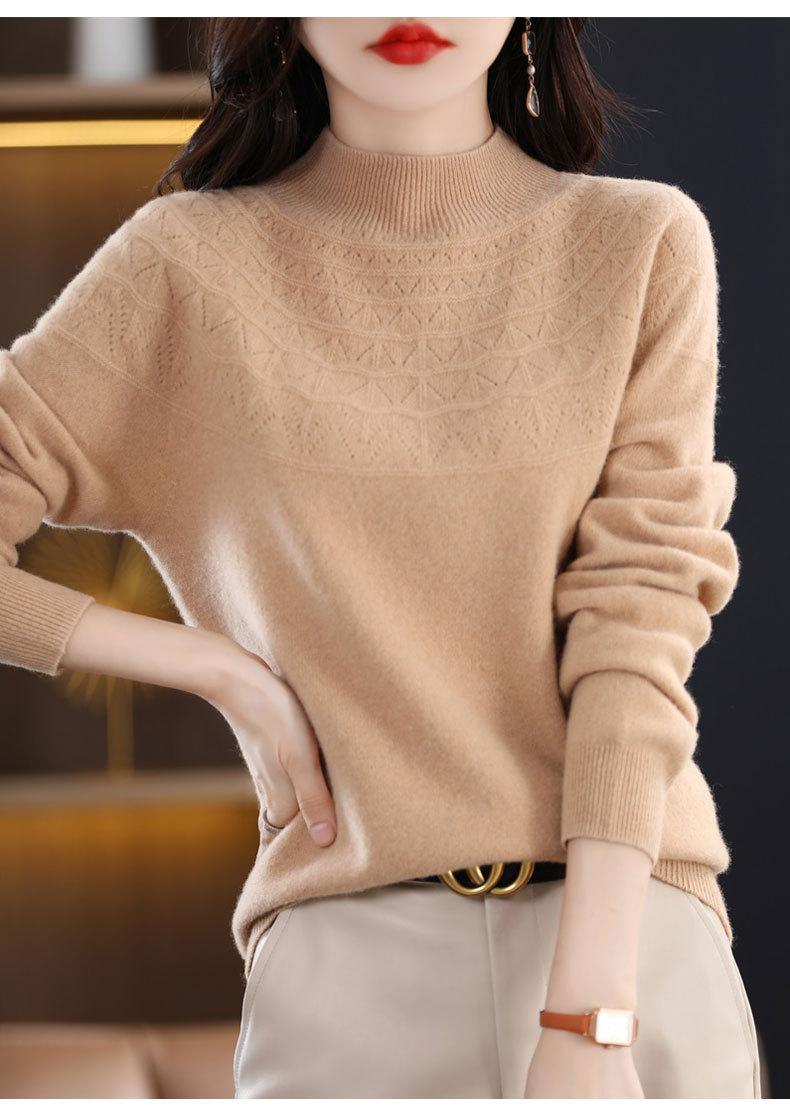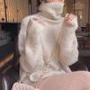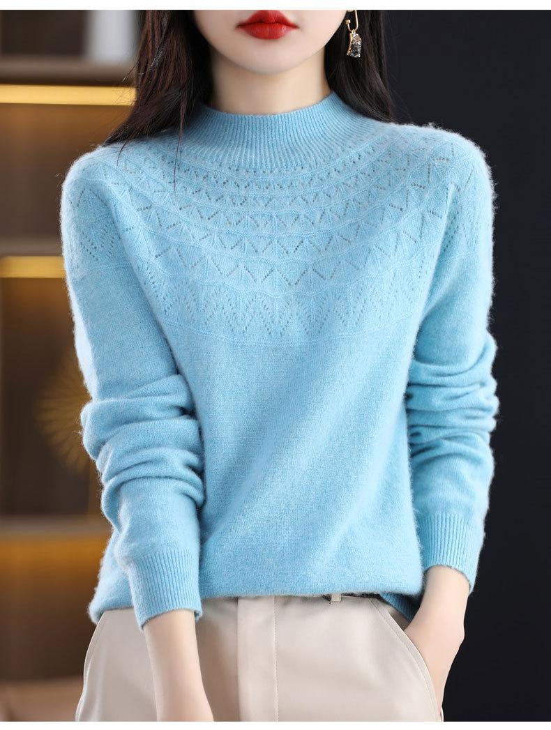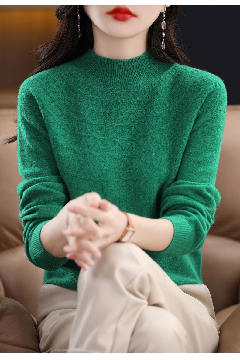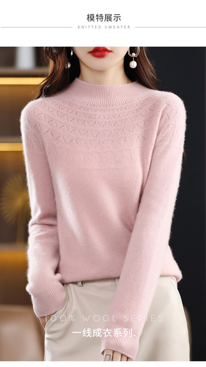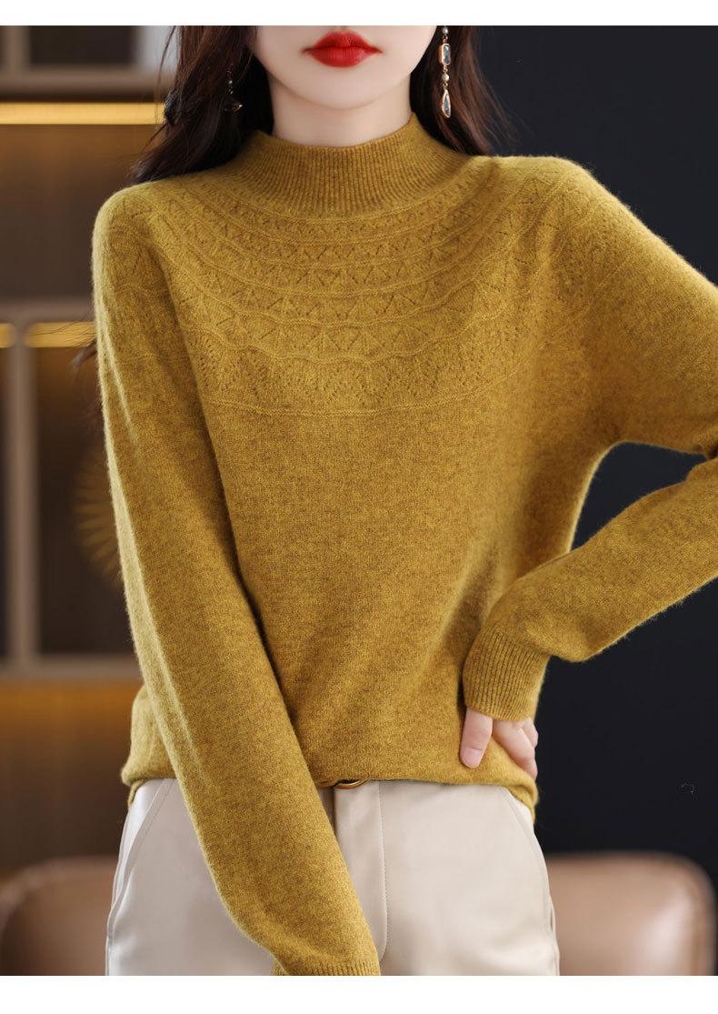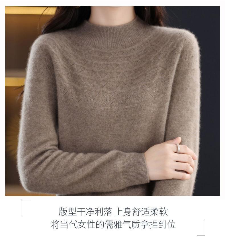 Suéter de lana pura para mujer, suéter holgado de manga larga, otoño e invierno 2024, con cuello medio alto