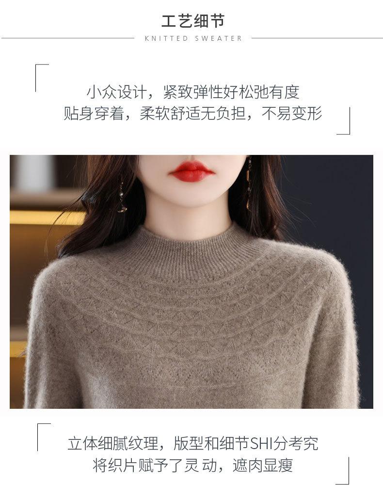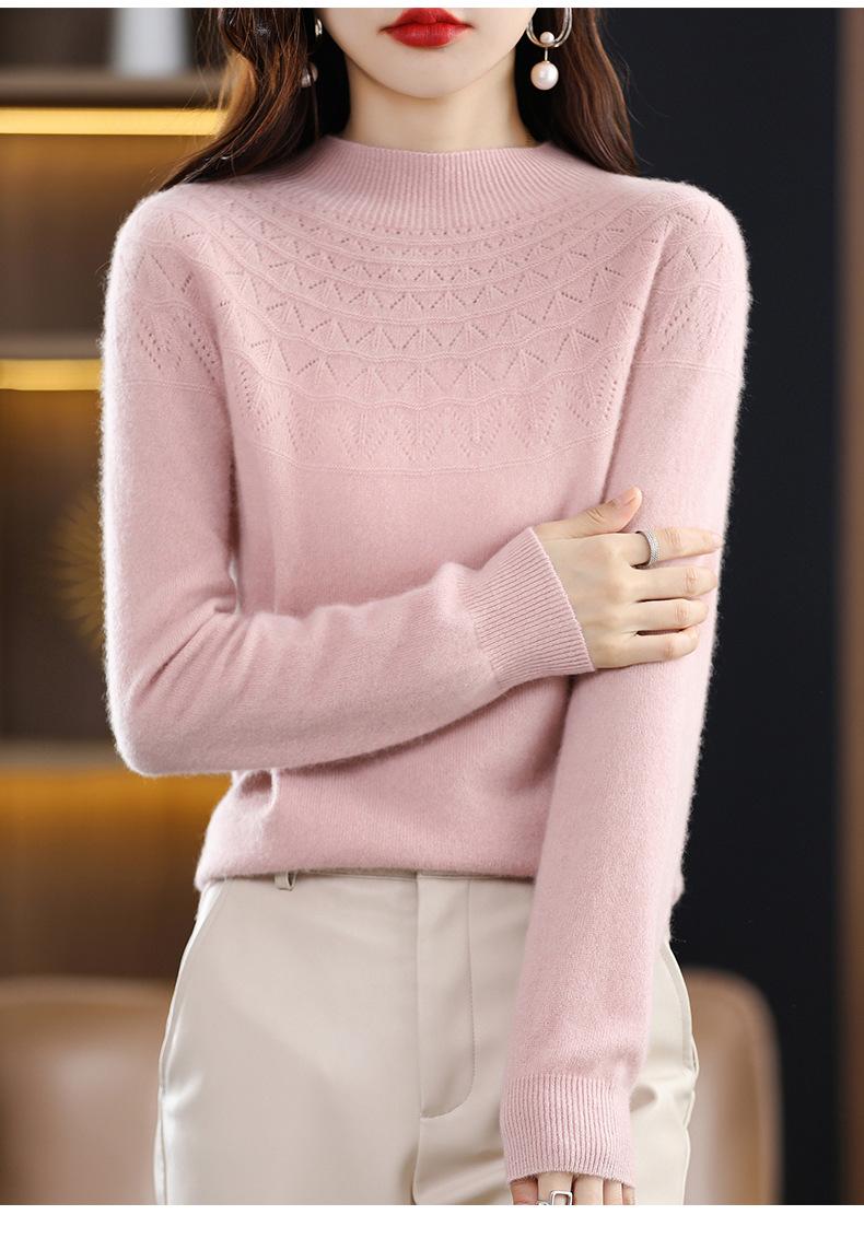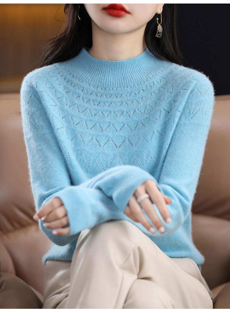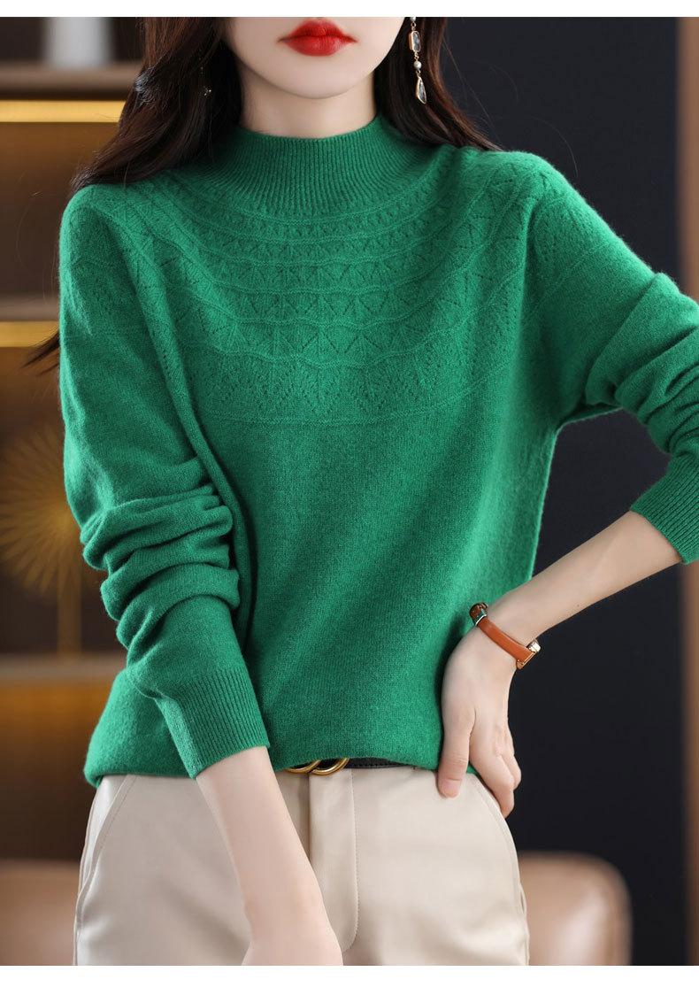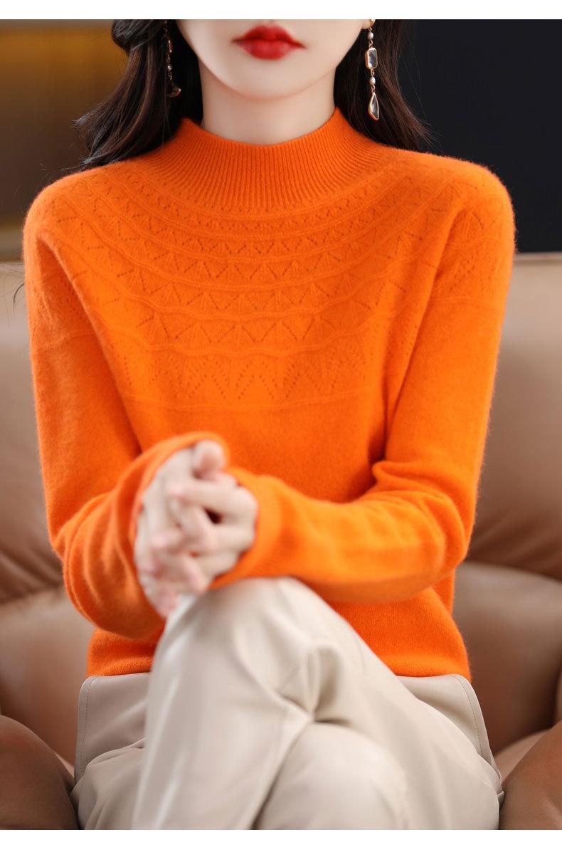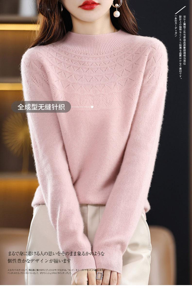 Suéter de lana pura para mujer, suéter holgado de manga larga, otoño e invierno 2024, con cuello medio alto