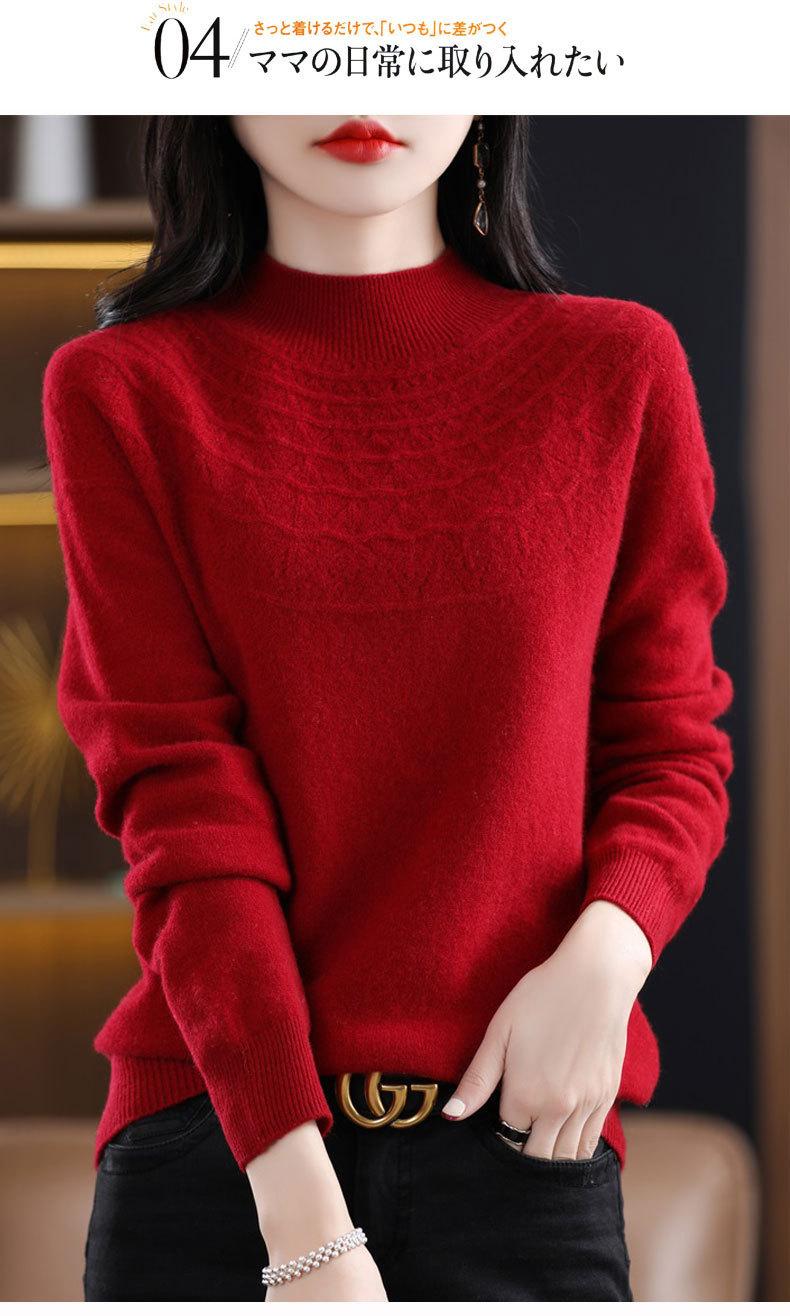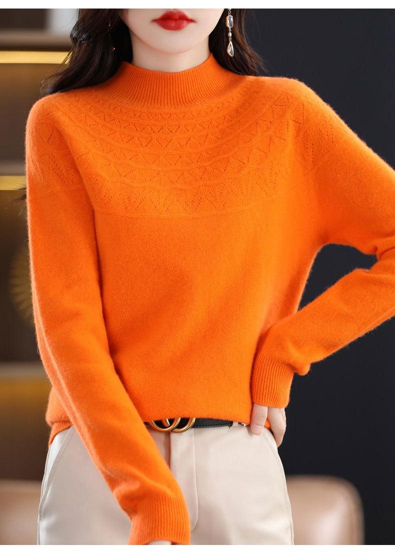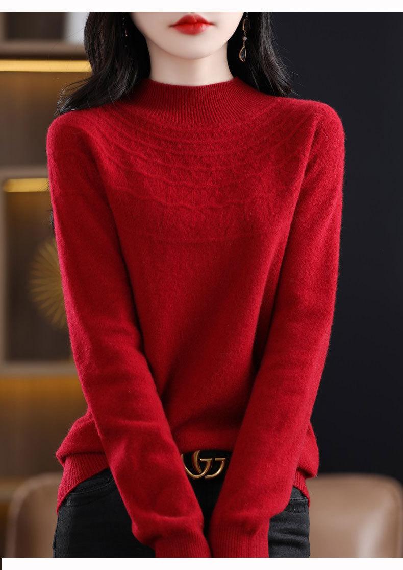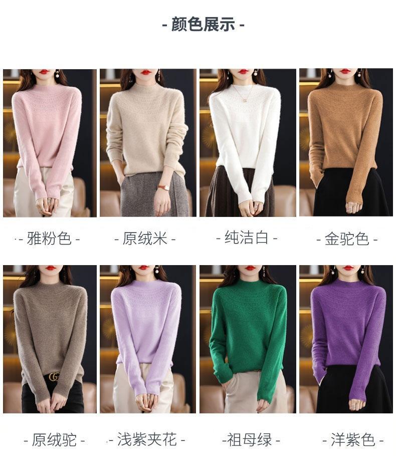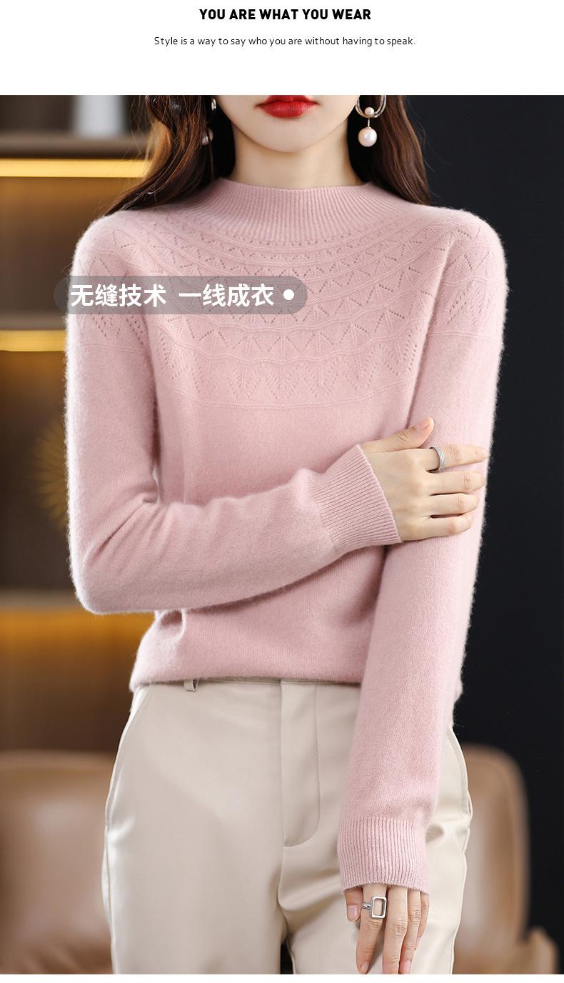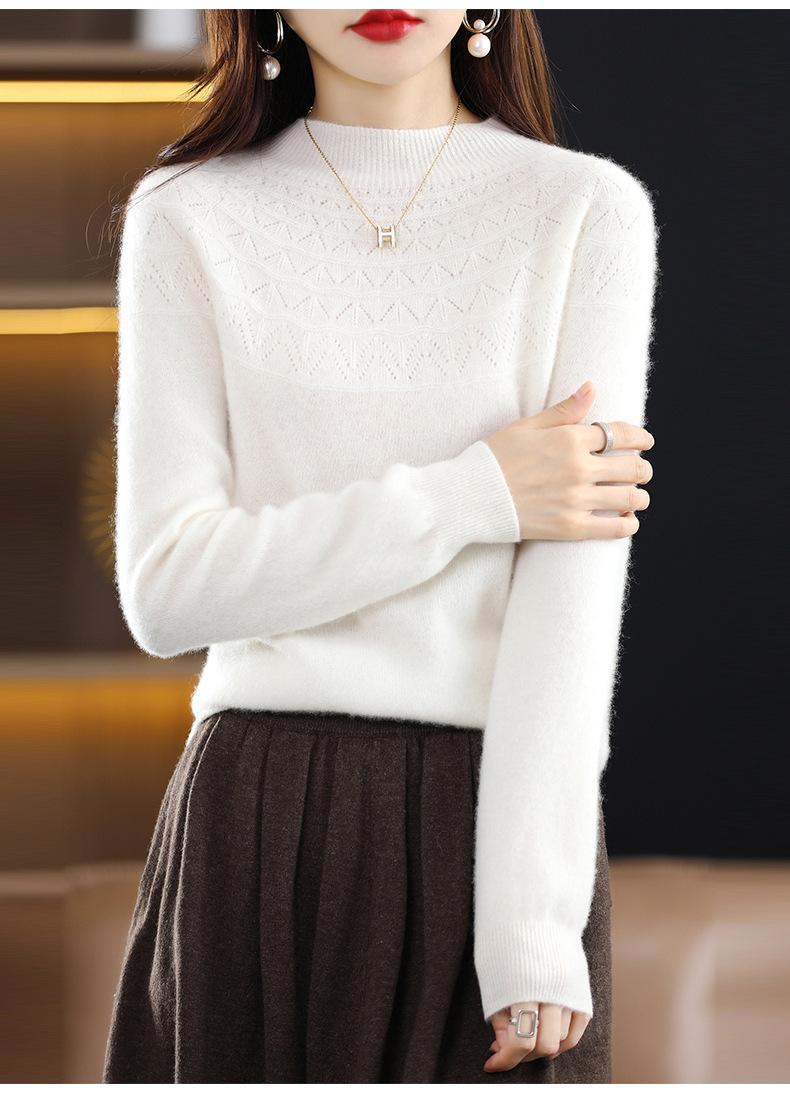 Suéter de lana pura para mujer, suéter holgado de manga larga, otoño e invierno 2024, con cuello medio alto
