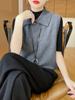 Chaleco de punto corto sin mangas de color liso con cuello tipo polo suelto para mujer, otoño e invierno 2024, de lana pura