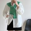 Suéter de mujer de comercio exterior transfronterizo con rayas irregulares, cuello medio alto, manga murciélago, chal de moda