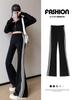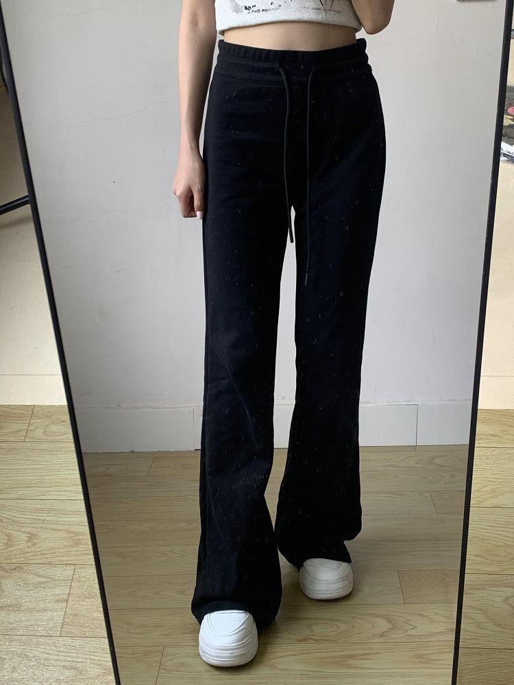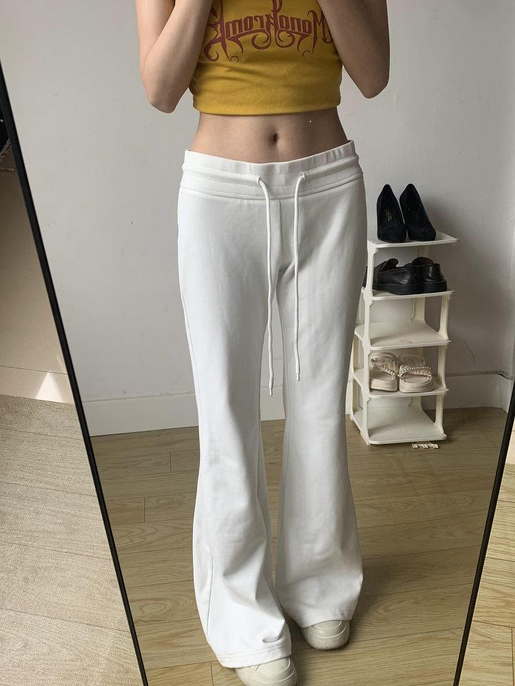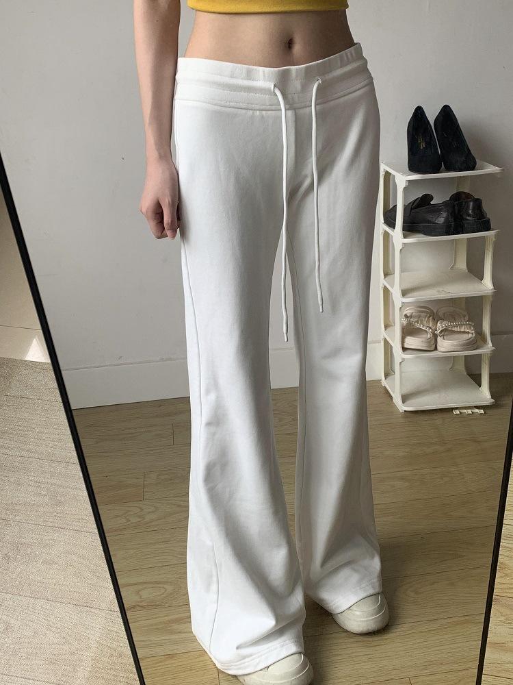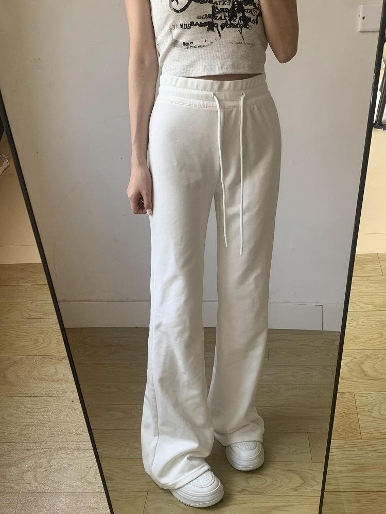 Pantalones Deportivos de Yoga Estilo Americano para Mujer Primavera y Otoño Casual Cintura Alta Drapeados Acampanados Pantalones Casuales Blancos y Grises
