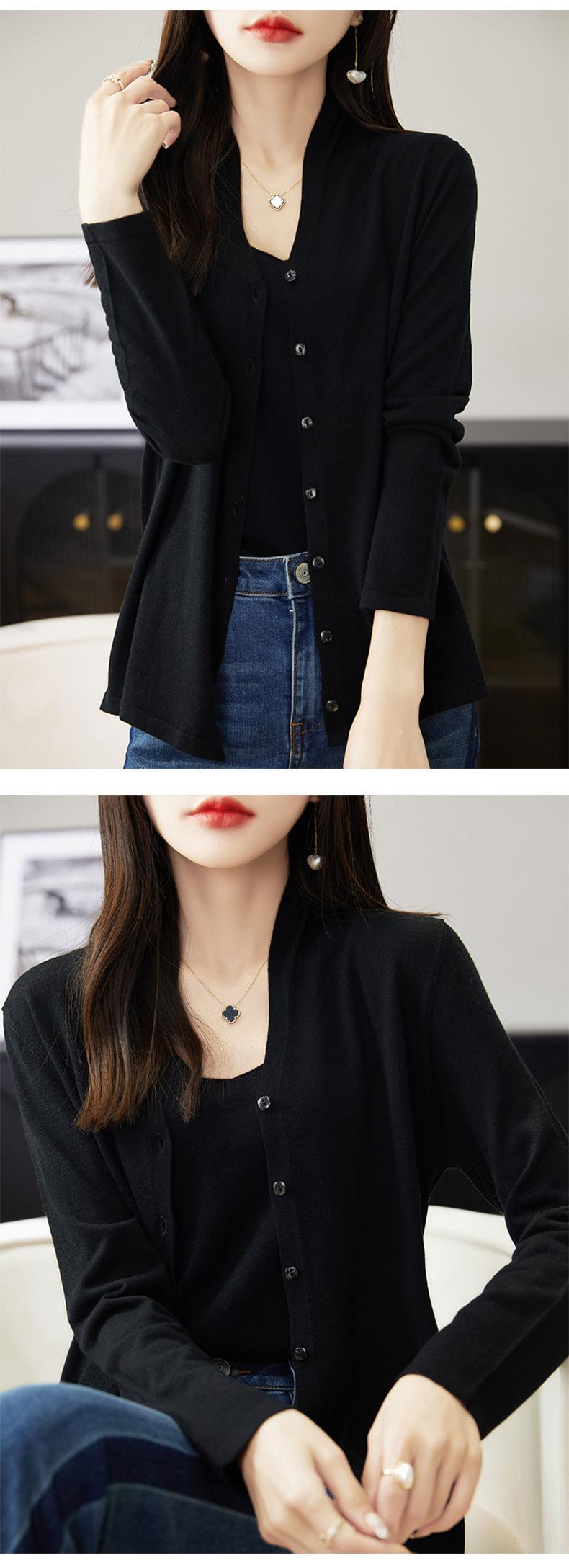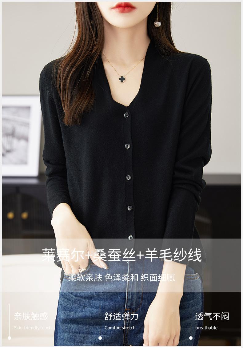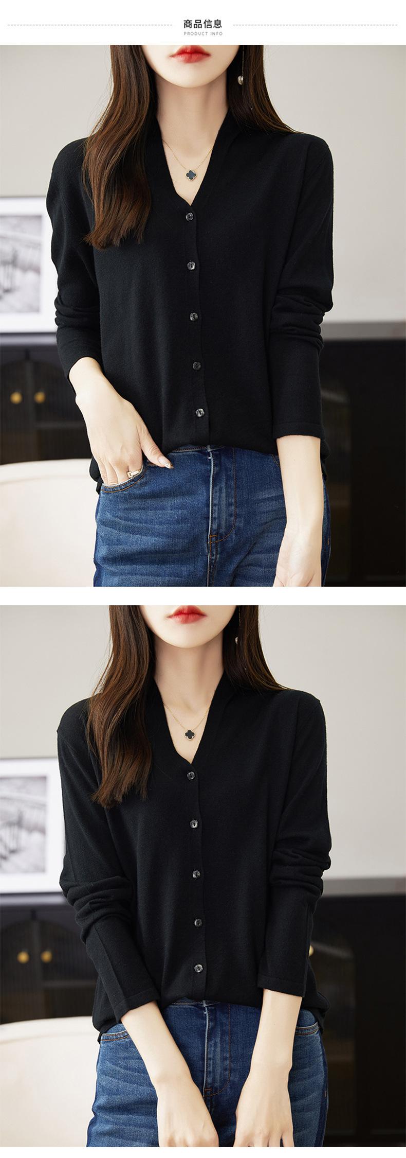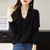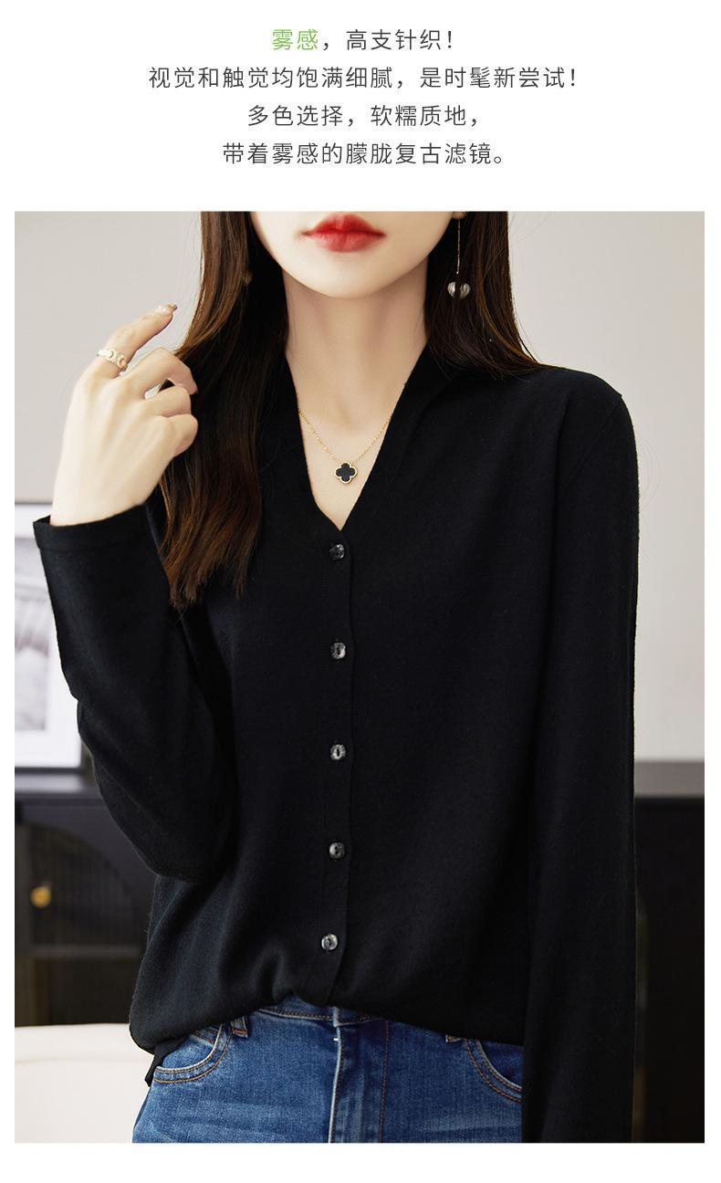 Camisa Francesa 2025 Nueva Otoño e Invierno con Top Elegante, Cárdigan de Lana Tejida con Cuello en V, Mangas Largas, Moderna y Chic