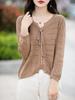 Suéter de punto calado de algodón puro para mujer, blusa holgada adelgazante con cordón, camisa fina de moda para primavera y otoño
