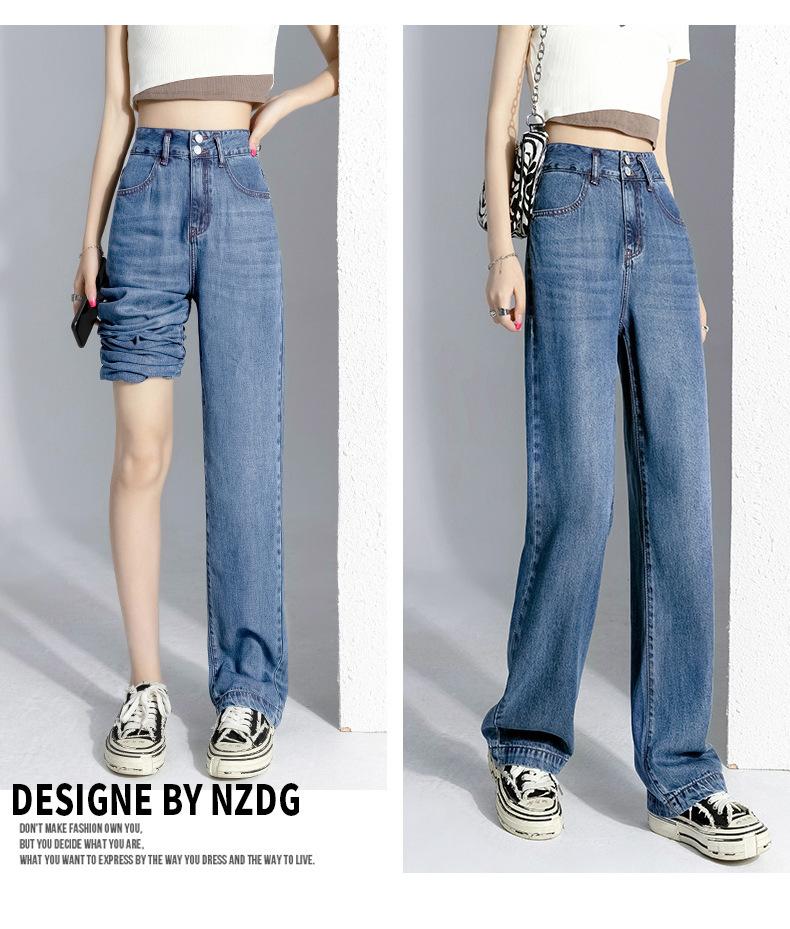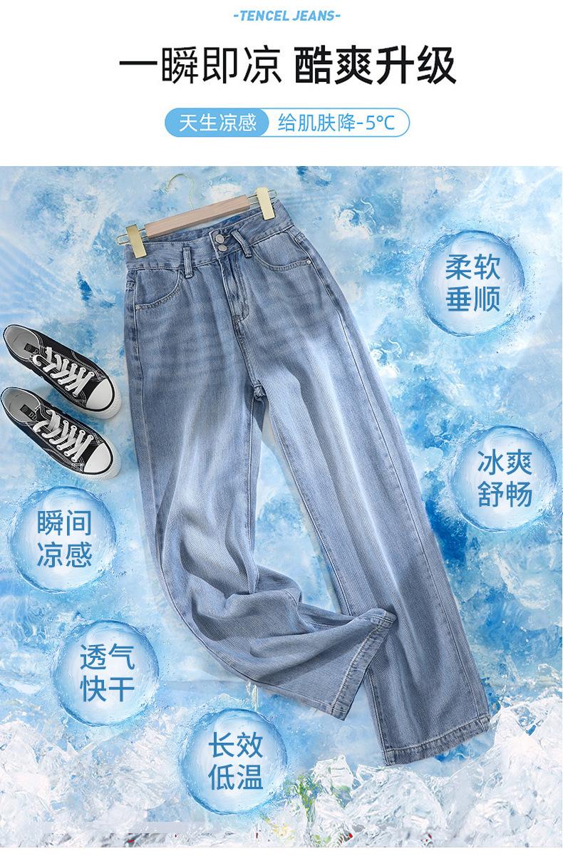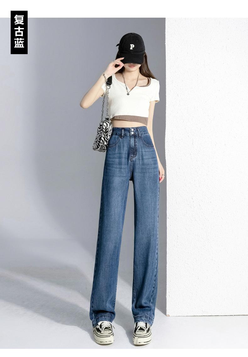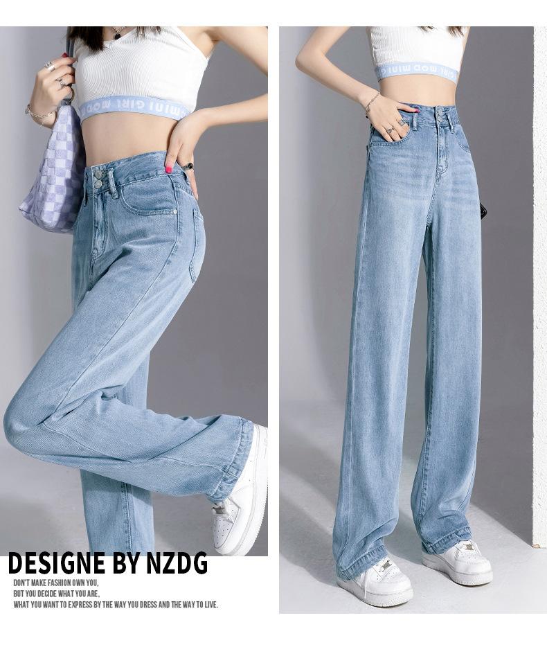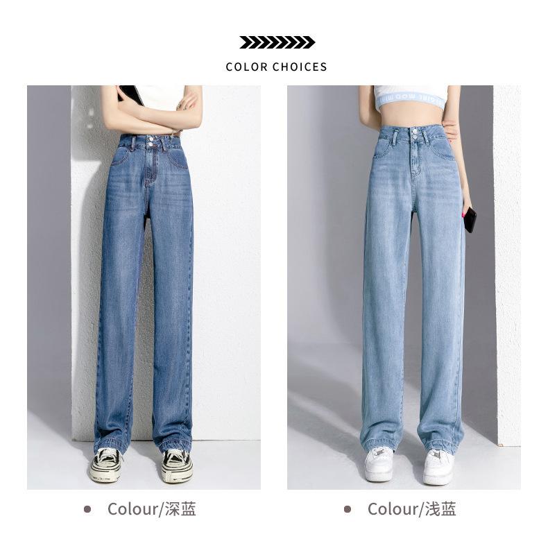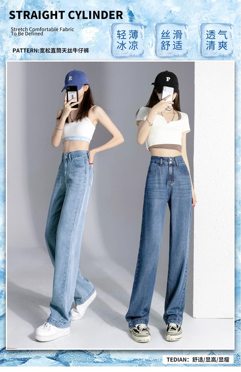 Nuevos Jeans de Pierna Recta y Pierna Ancha de Tela Tencel Lyocell con Cremallera YKK Ropa de Mujer Dosificación Verano Pantalones de Seda de Hielo