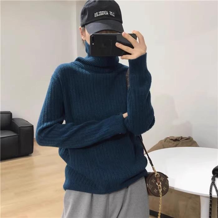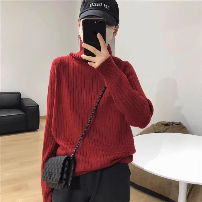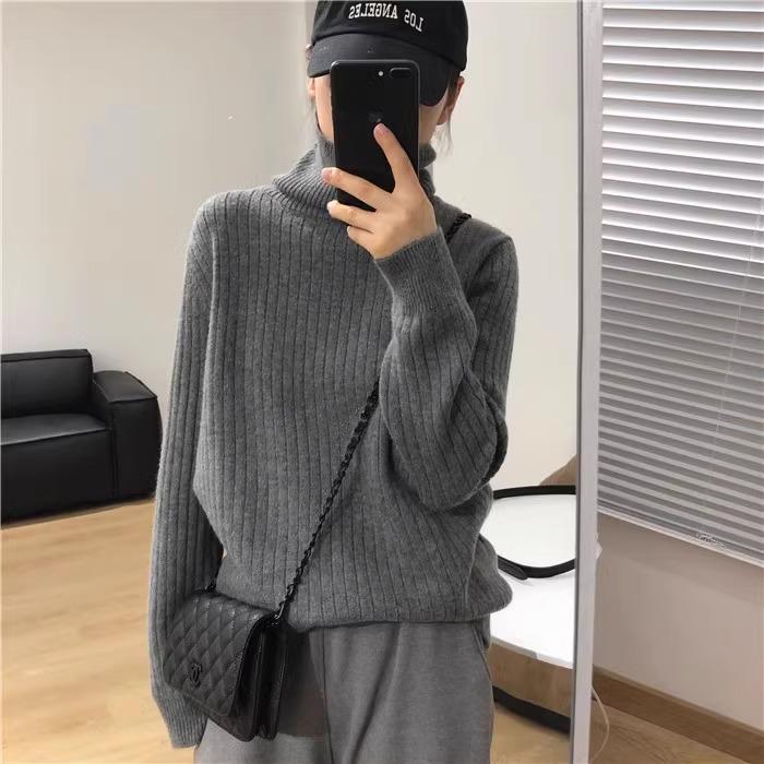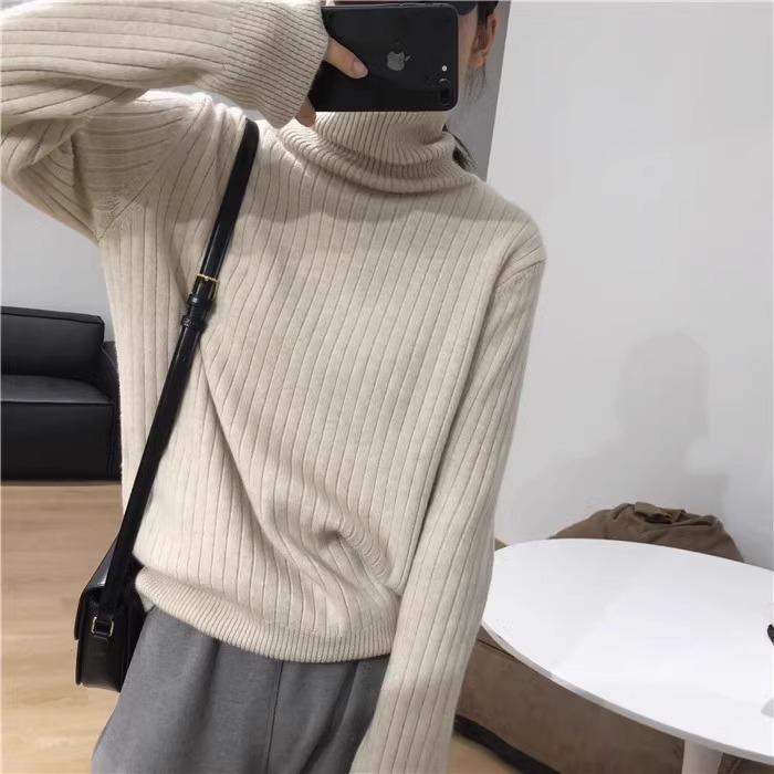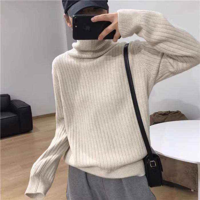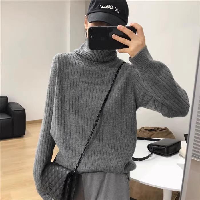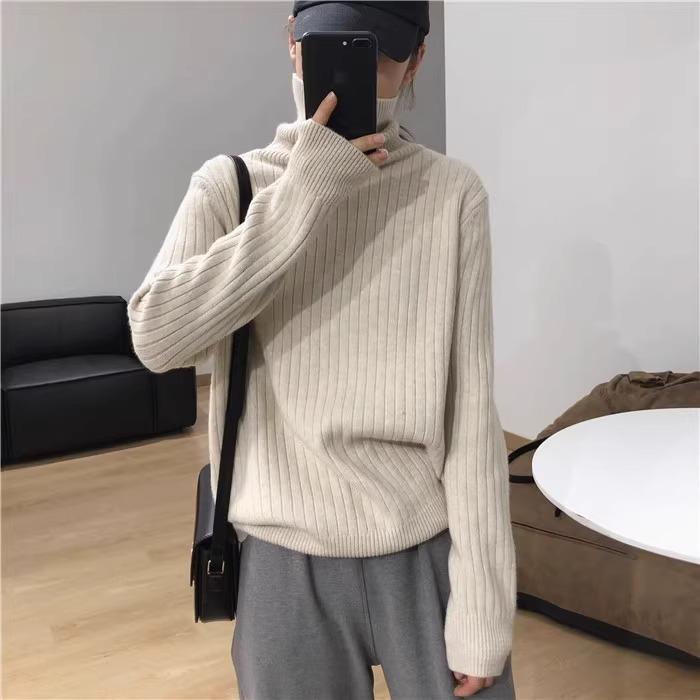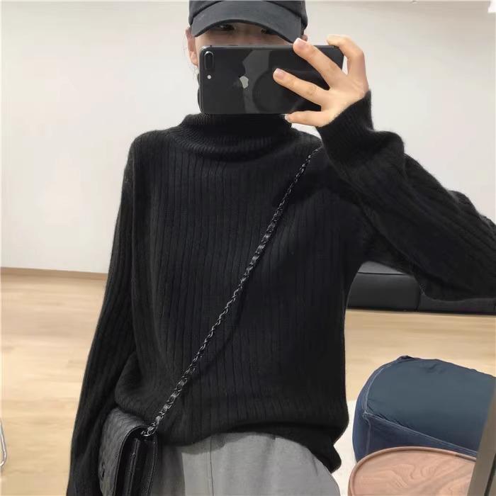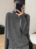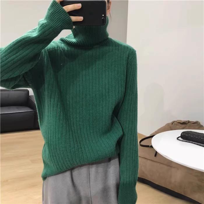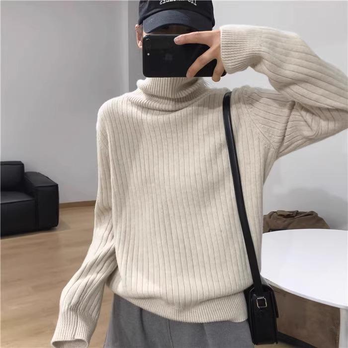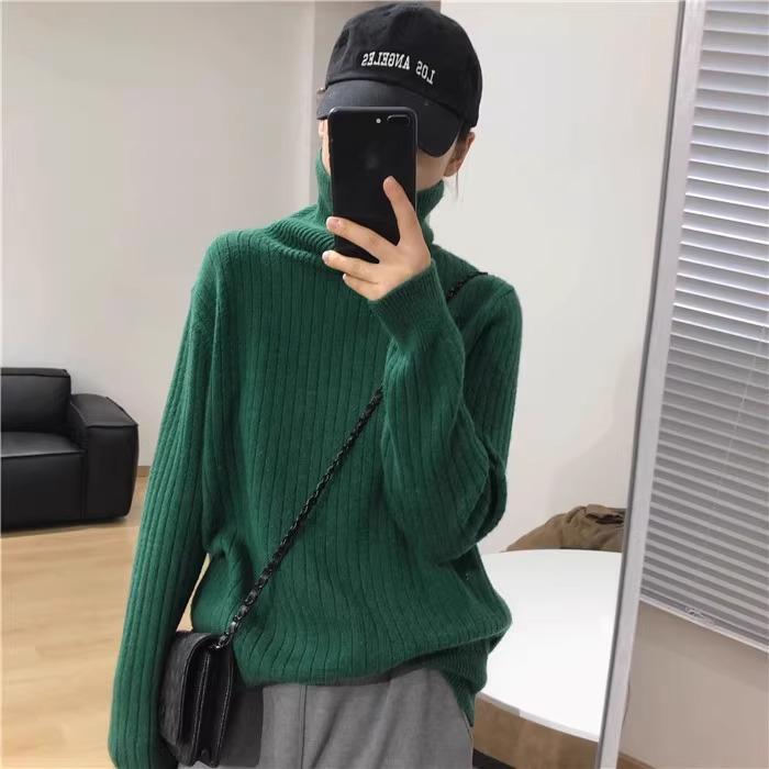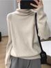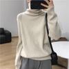 Suéter holgado con cuello alto, color sólido simple, adelgazante de axila, para ir al trabajo, primavera nuevo, todo lana, tejido base para mujer
