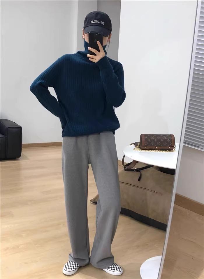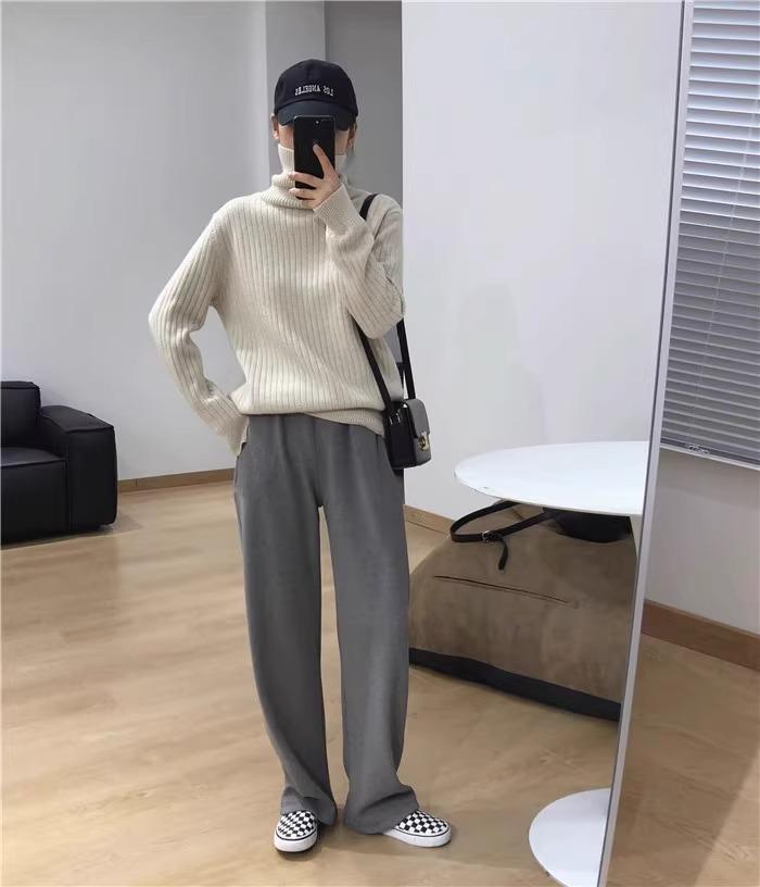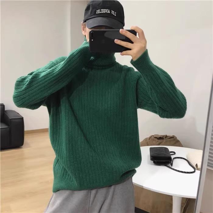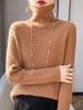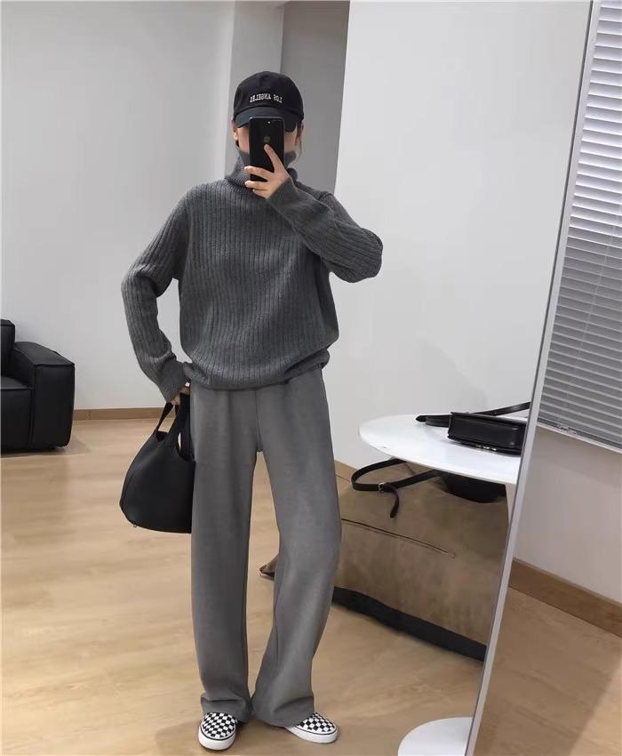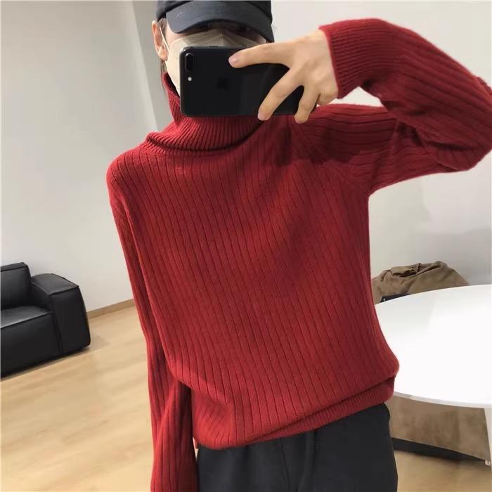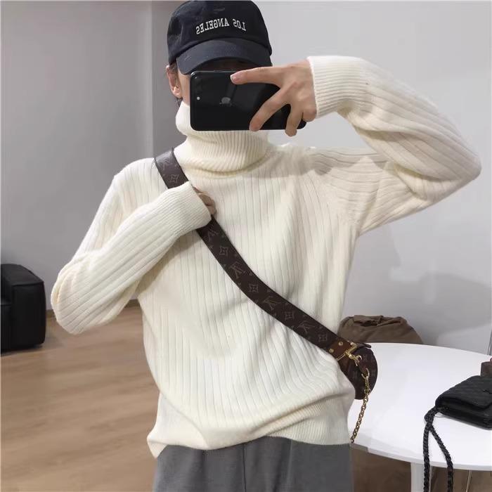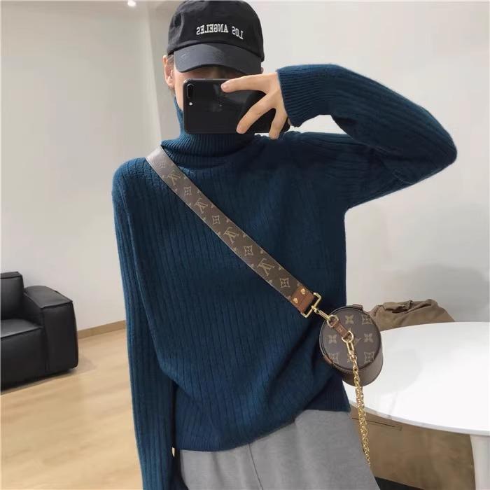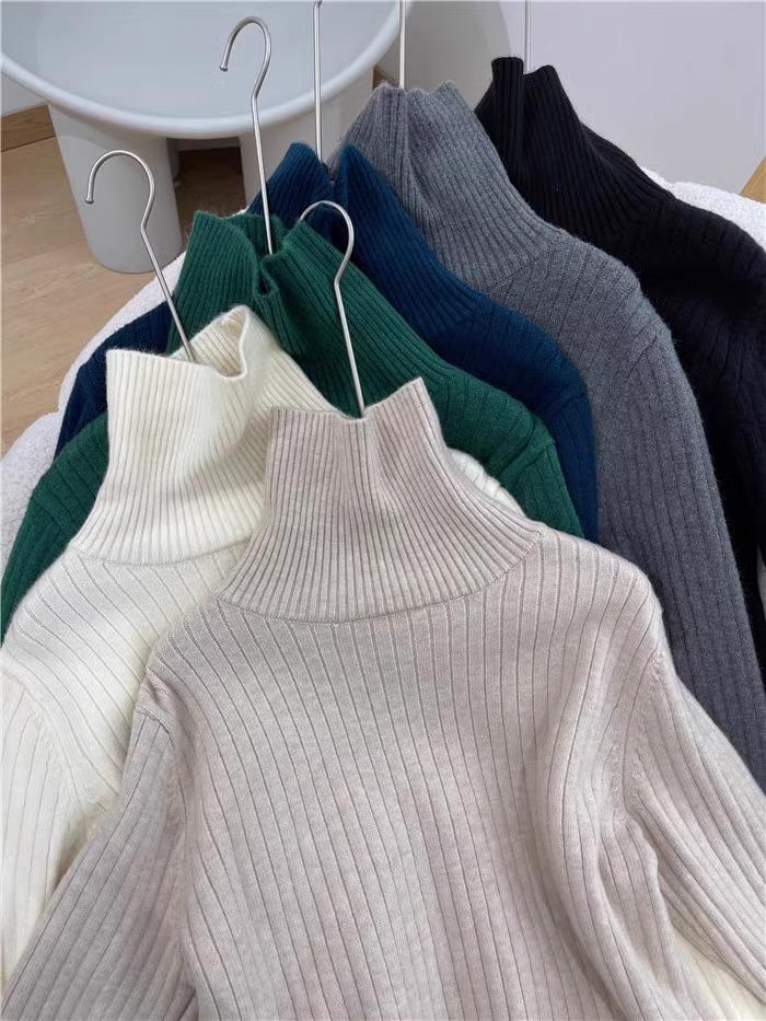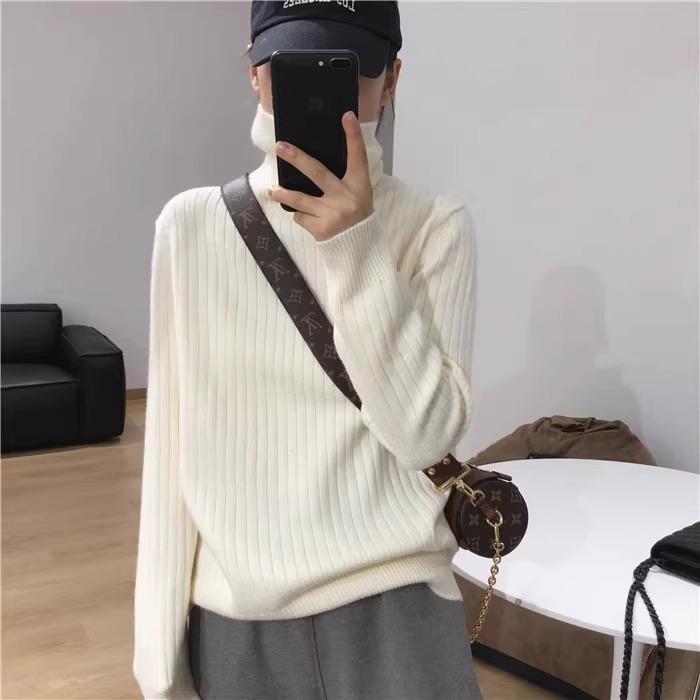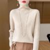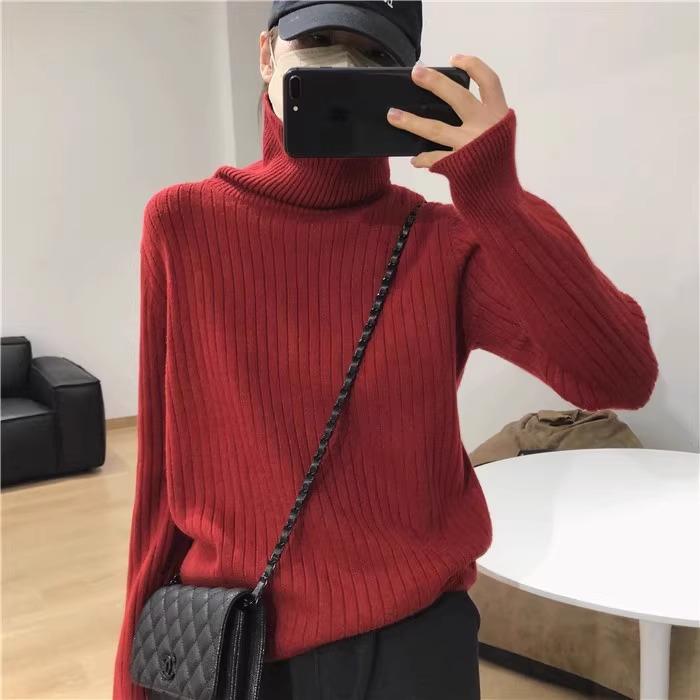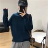 Suéter holgado con cuello alto, color sólido simple, adelgazante de axila, para ir al trabajo, primavera nuevo, todo lana, tejido base para mujer