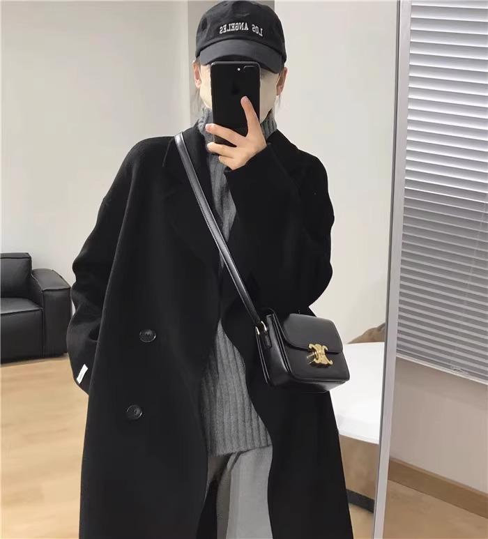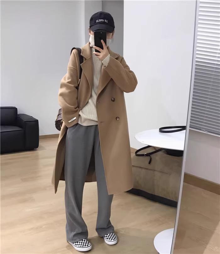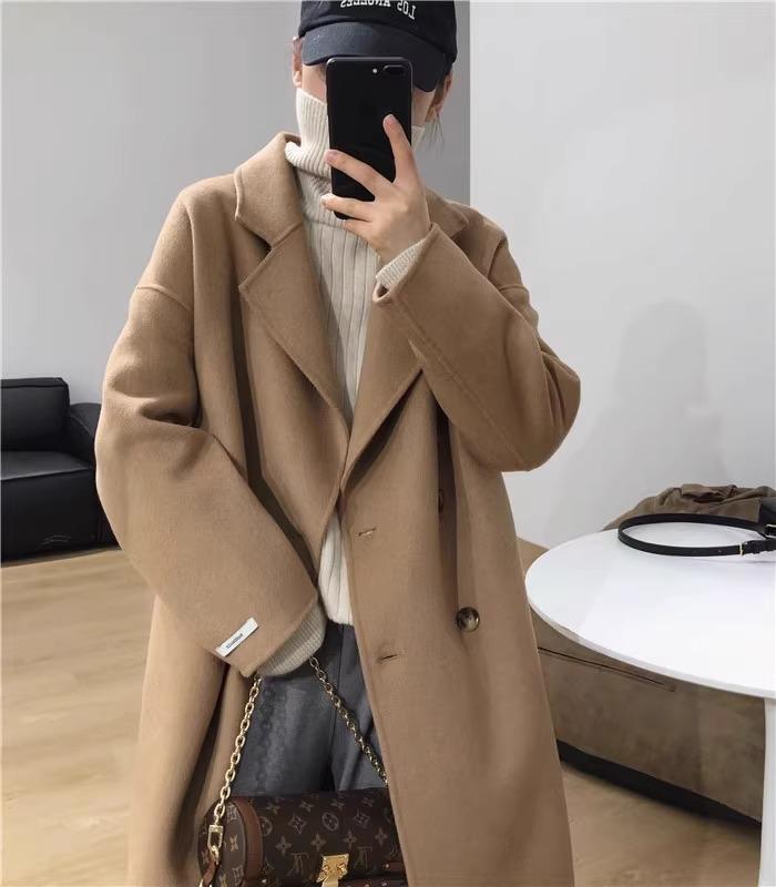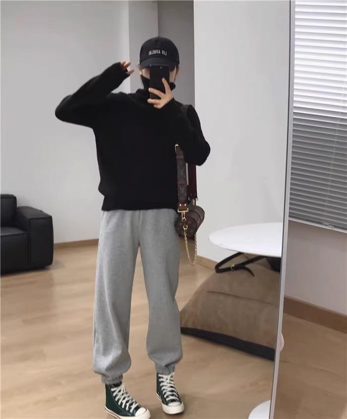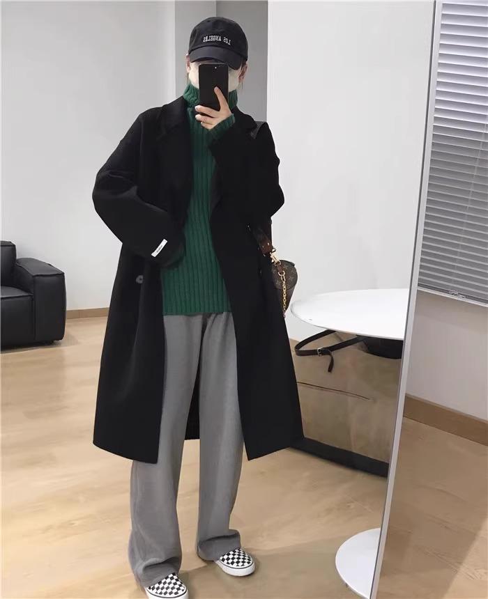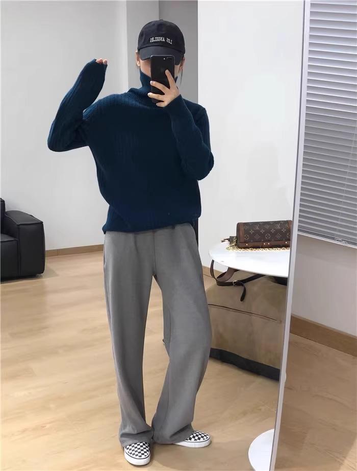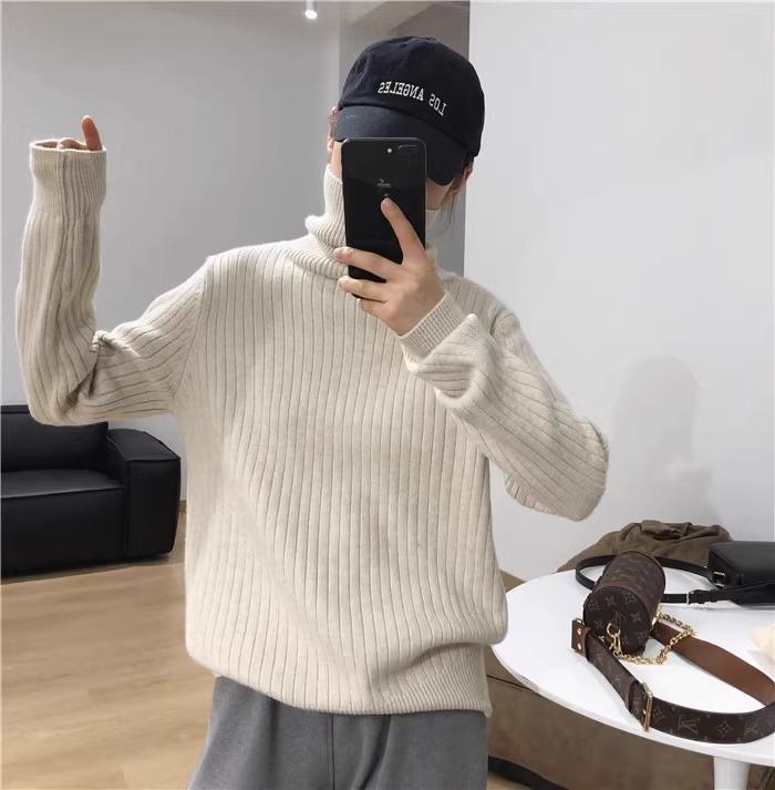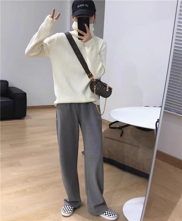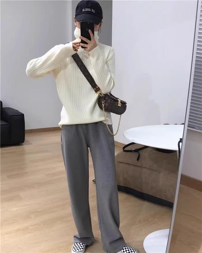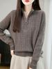Suéter holgado con cuello alto, color sólido simple, adelgazante de axila, para ir al trabajo, primavera nuevo, todo lana, tejido base para mujer