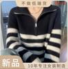 Nuevo jersey de punto de manga larga con cuello redondo para mujer, de otoño e invierno, con rayas de costura en contraste de color, estilo holgado casual versátil.