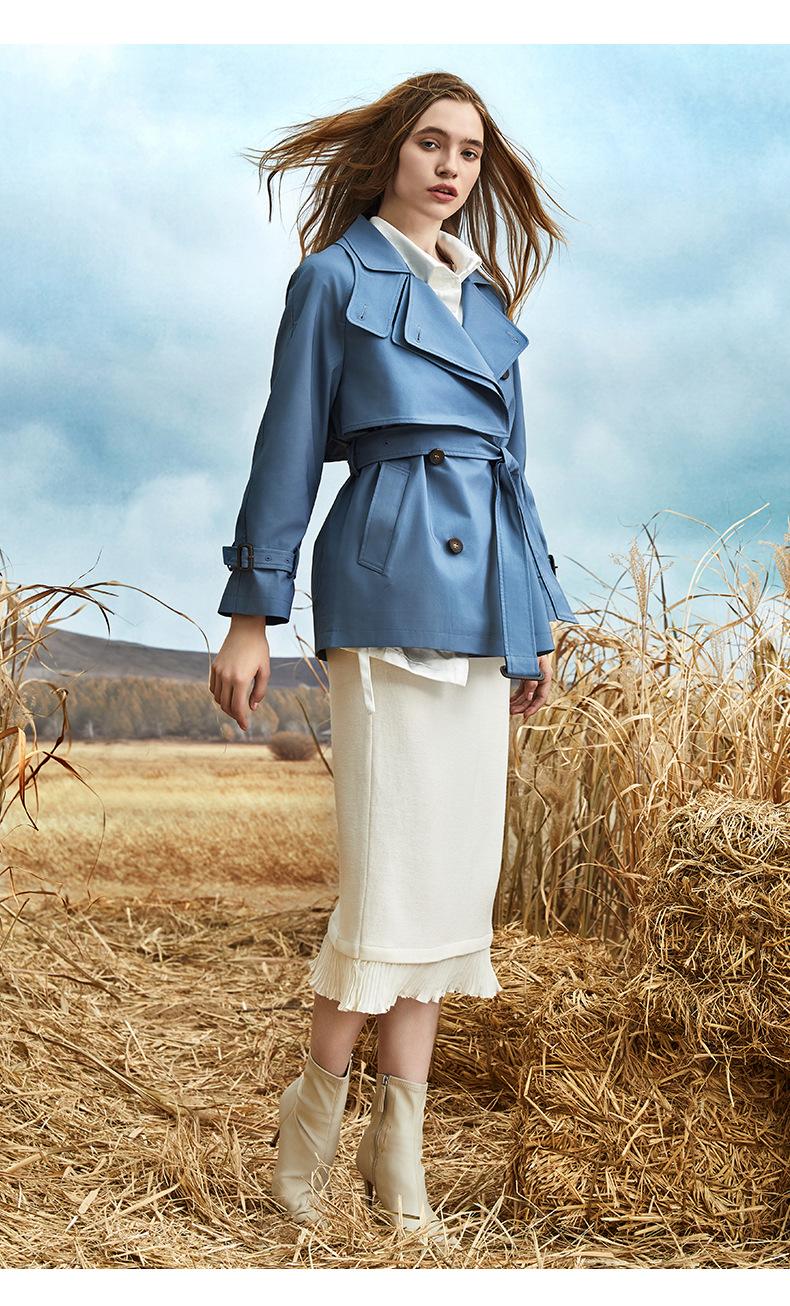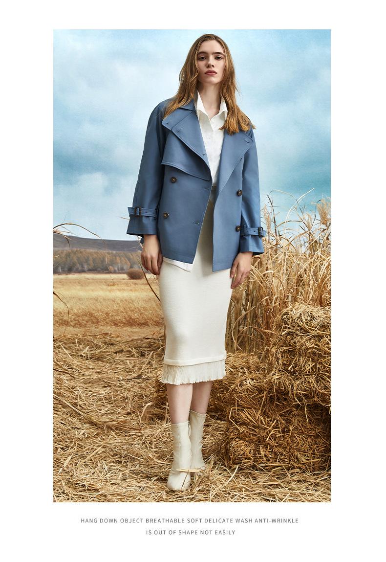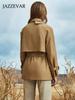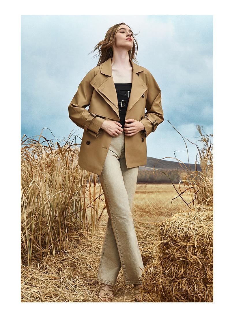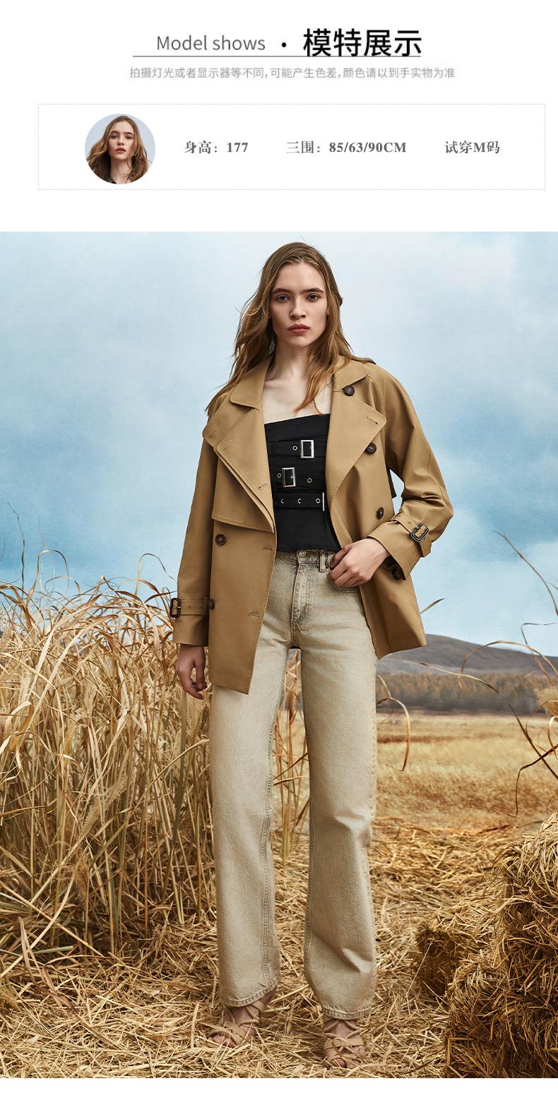 Abrigo de Largo Medio para Mujer Jiaze Huanyuan Otoño Nuevo Caqui Abrigo Cortavientos Británico Petite para Mujer