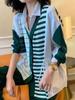 Cárdigan de punto para mujer Primavera y Otoño Nuevo Largo medio Costuras Rayado Suelto Irregular Elegante Abrigo Top que combina con todo