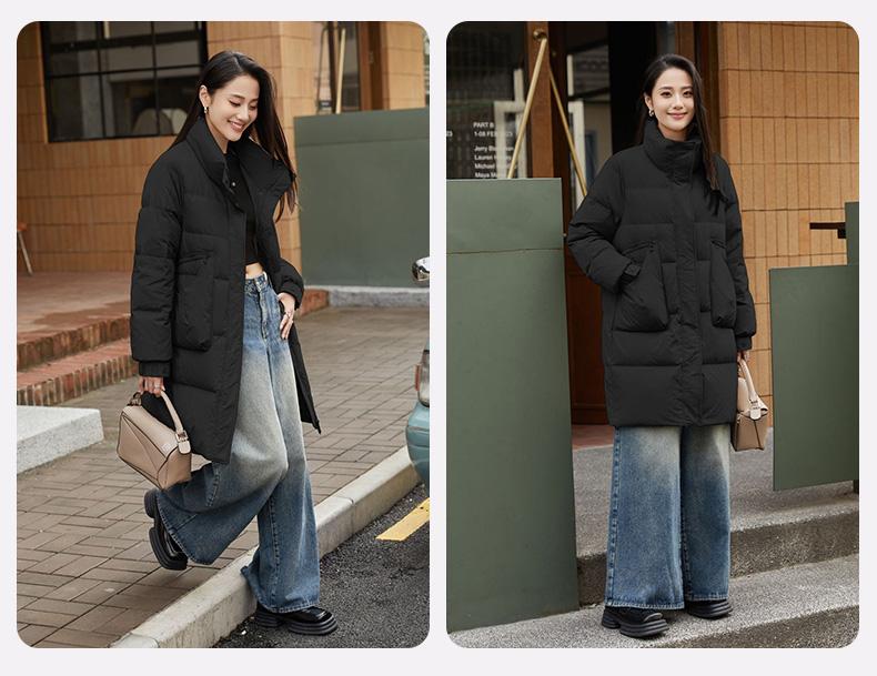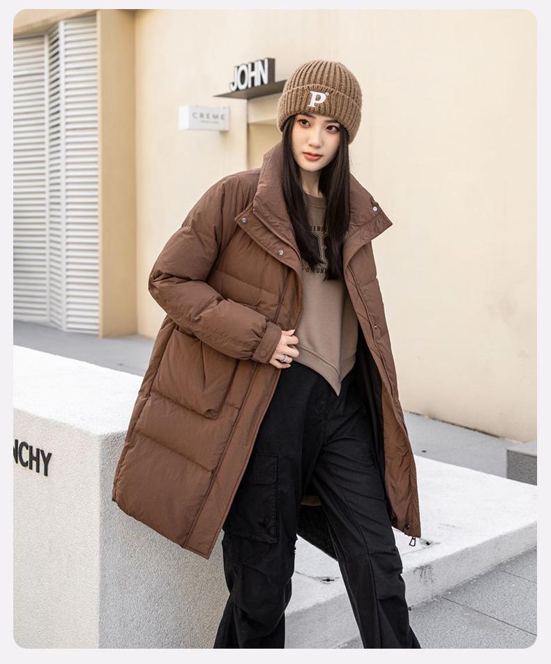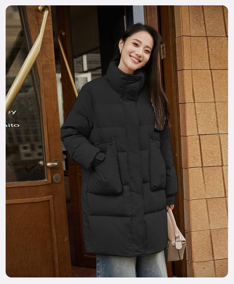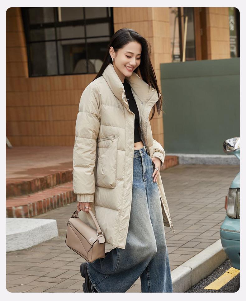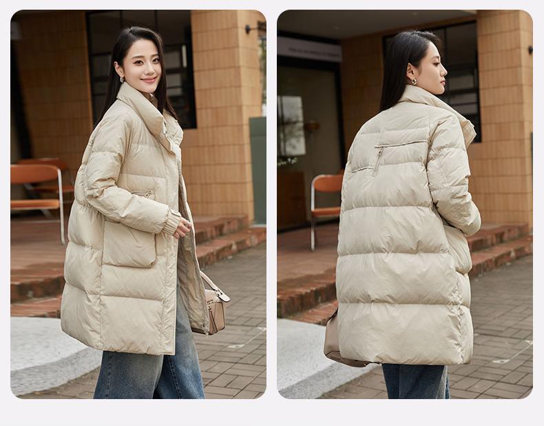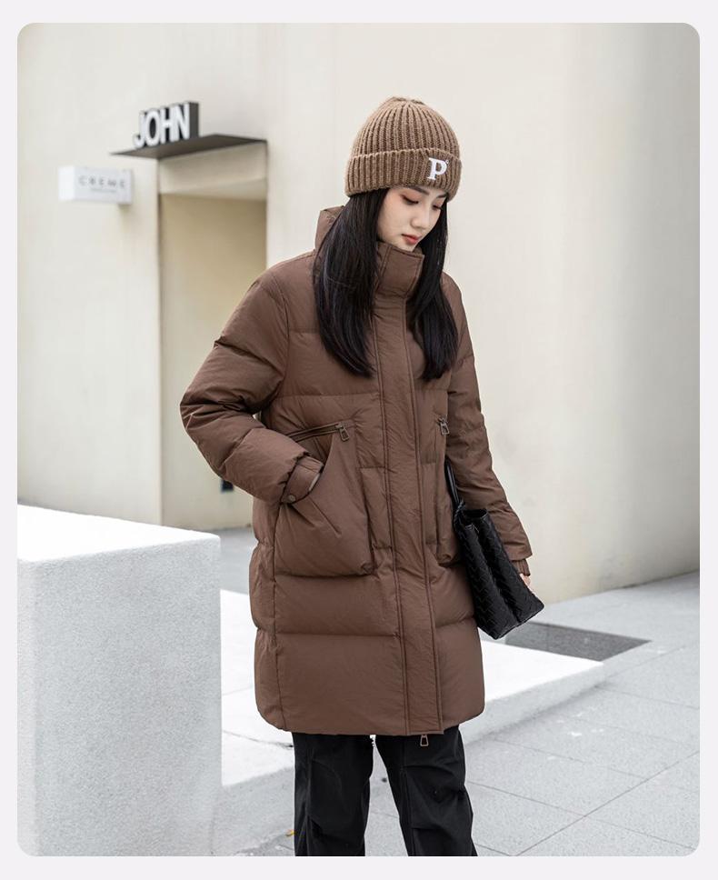 Chamarra de Plumón de Pato para Mujer 2024 Otoño e Invierno Nuevo Largo Medio Cuello Vertical Moda Casual Combinable Cálida Chamarra de Plumón de Pato