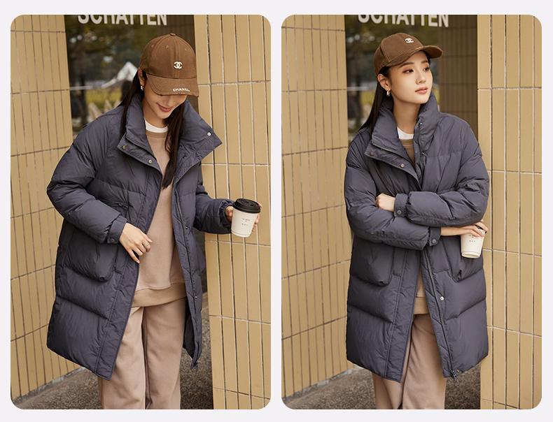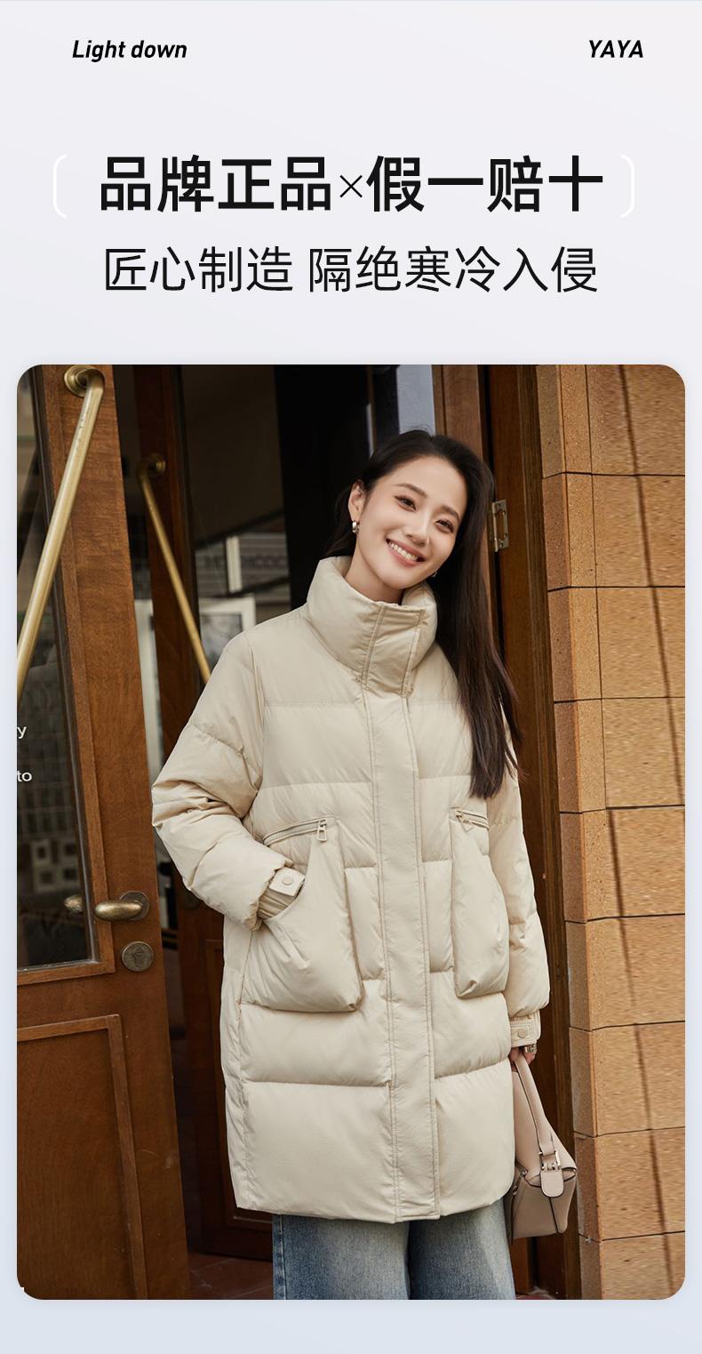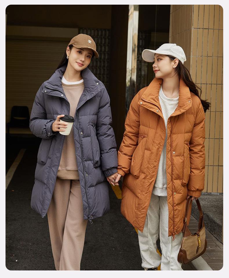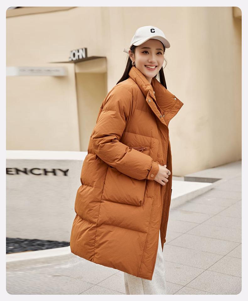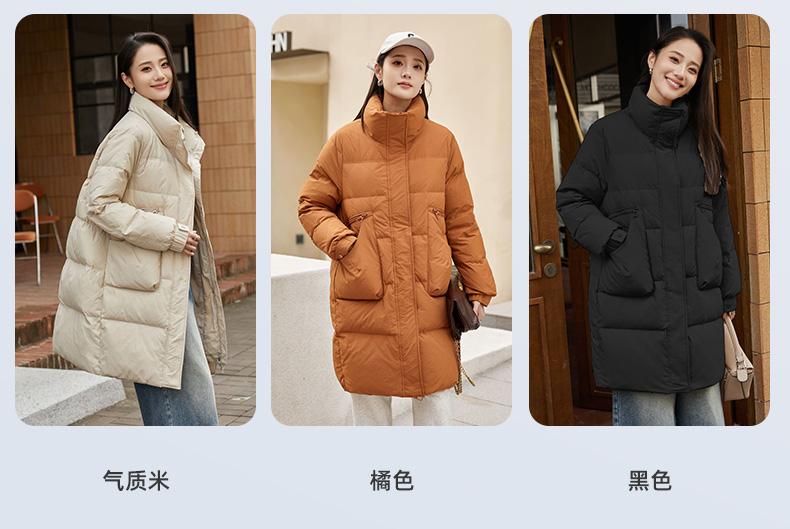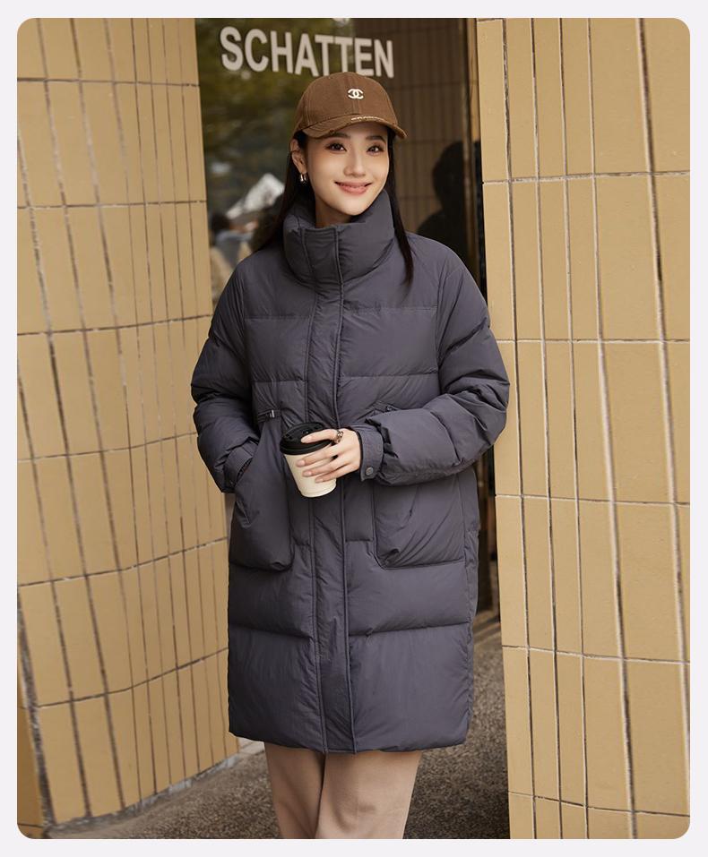 Chamarra de Plumón de Pato para Mujer 2024 Otoño e Invierno Nuevo Largo Medio Cuello Vertical Moda Casual Combinable Cálida Chamarra de Plumón de Pato