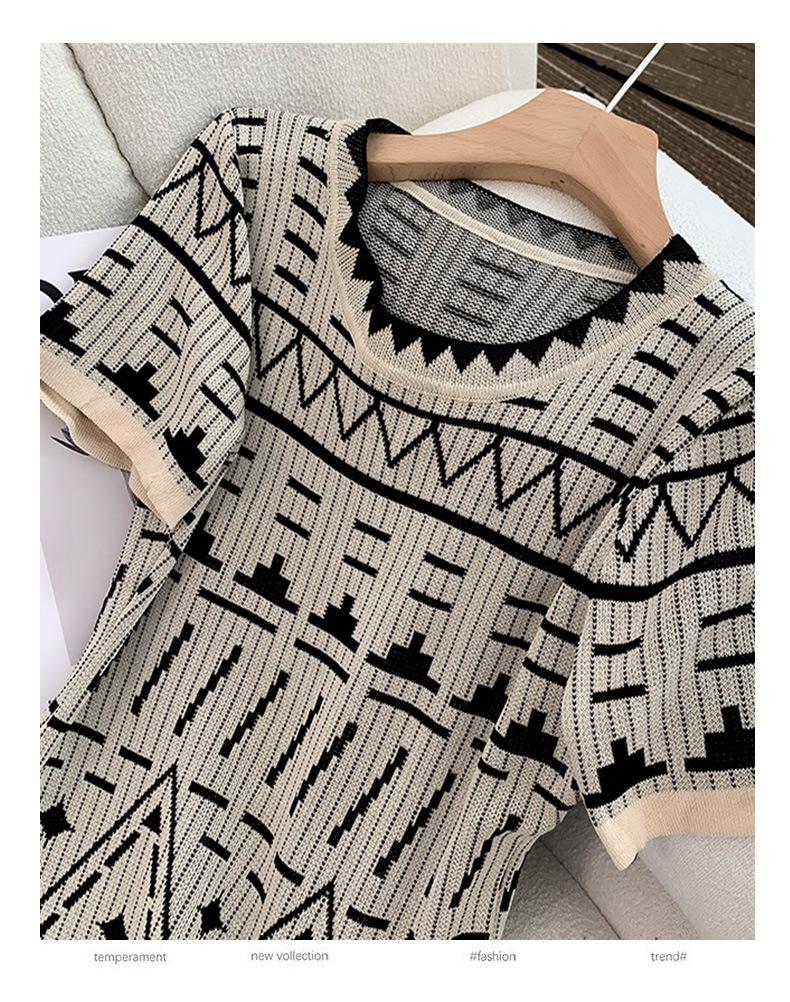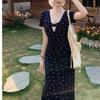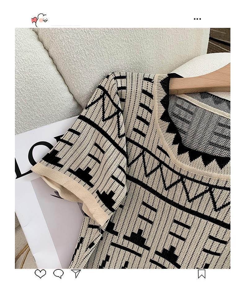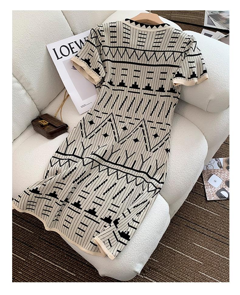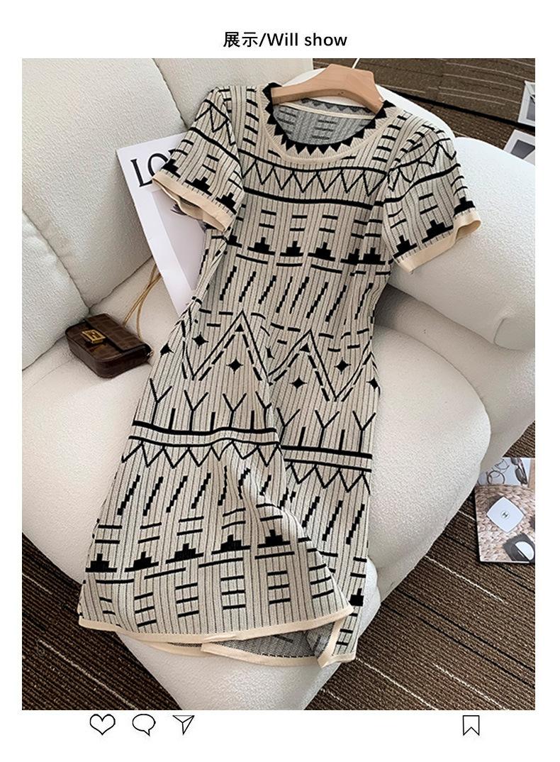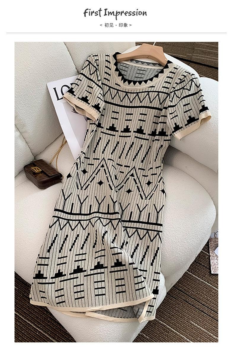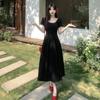 Vestido Retro Francés para Mujer 2025 Verano Nuevo Estilo Diseño de Aspecto Adelgazante Cuello Redondo Manga Corta Falda Midi