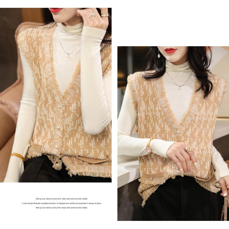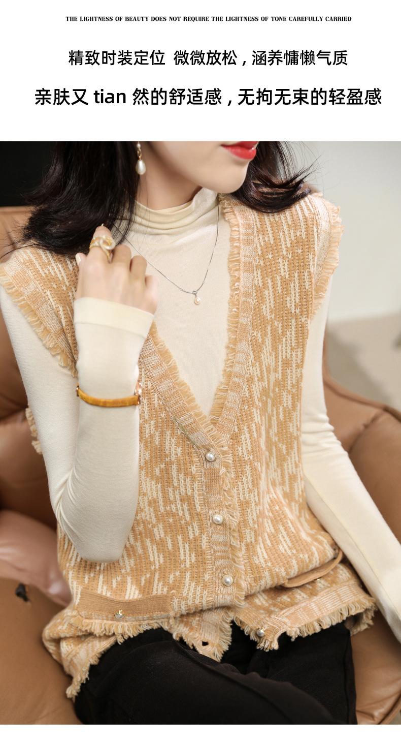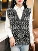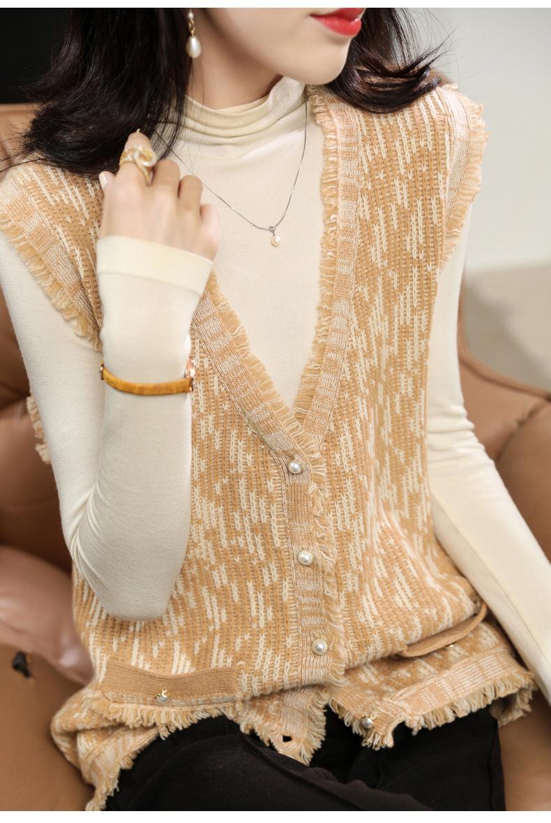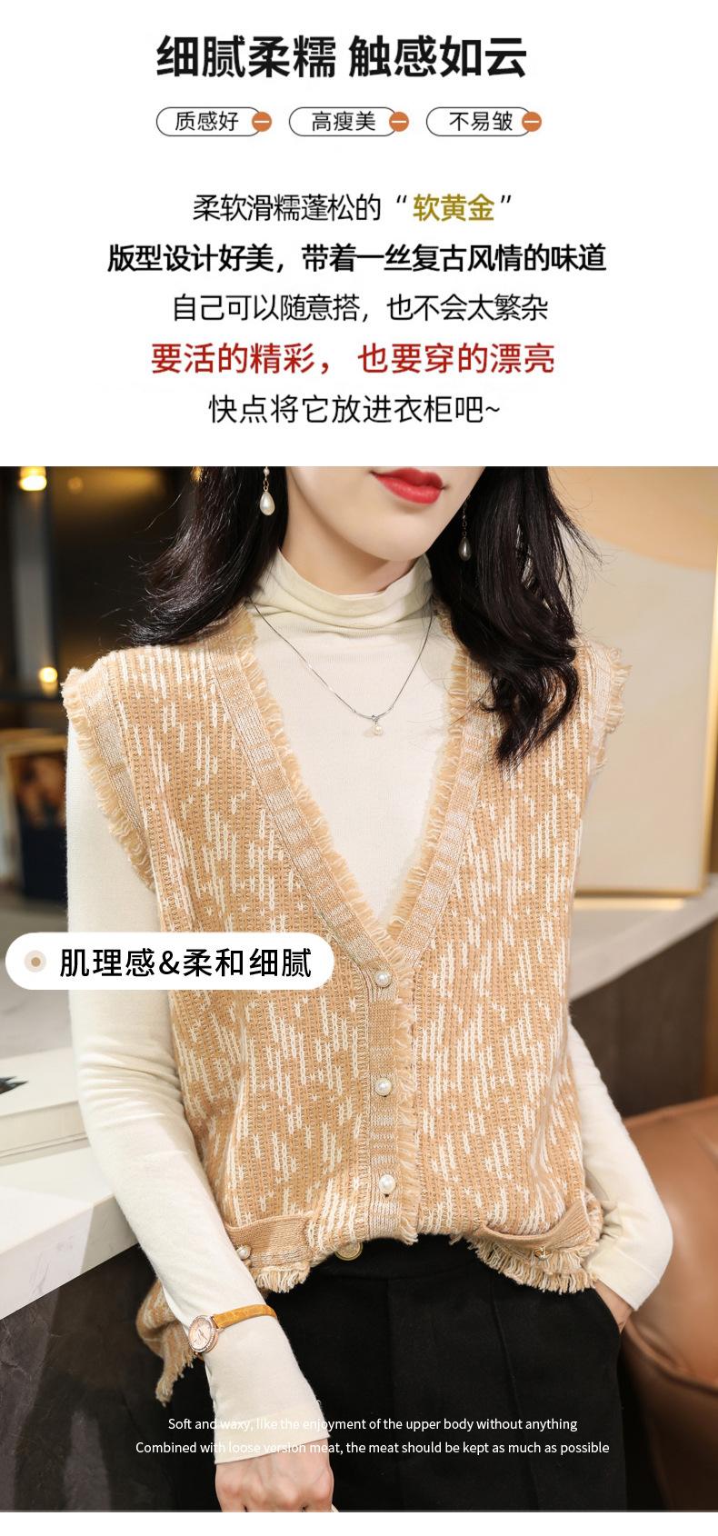Suéter de lana pura para mujer, chaleco holgado con cuello en V y mangas cortas, estilo Chanel, con borlas, talla grande