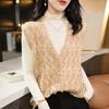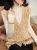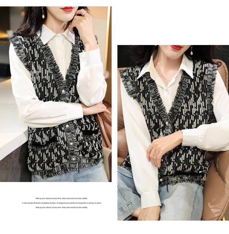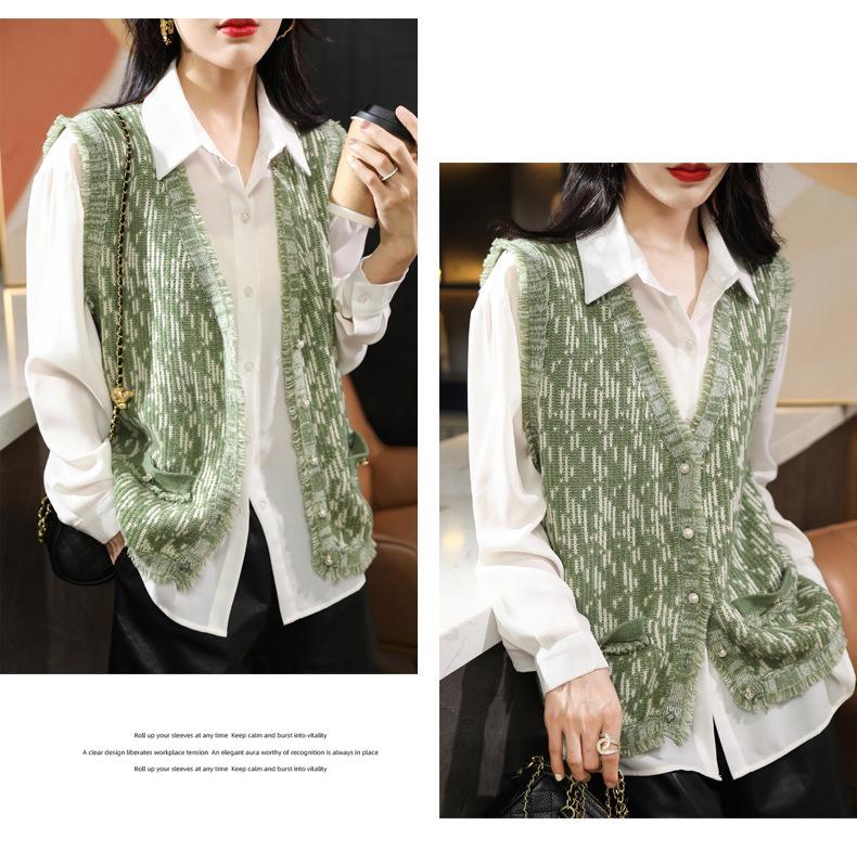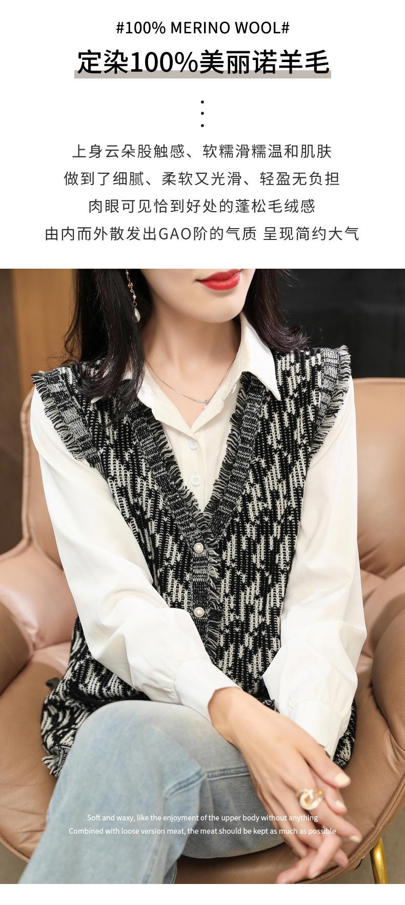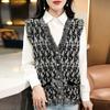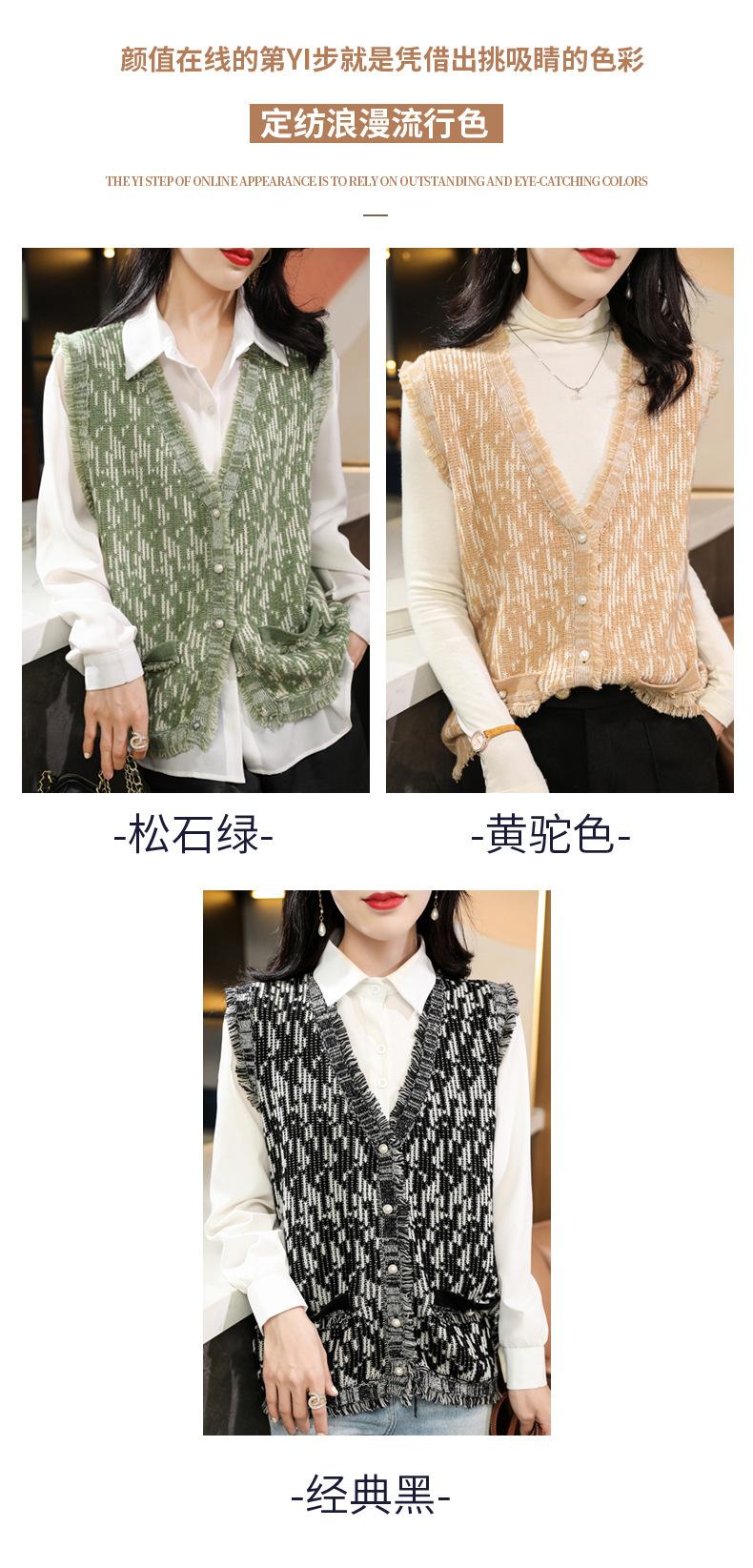 Suéter de lana pura para mujer, chaleco holgado con cuello en V y mangas cortas, estilo Chanel, con borlas, talla grande
