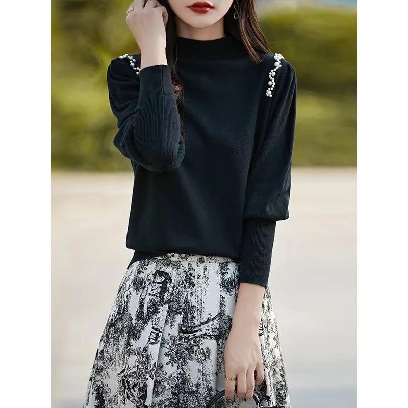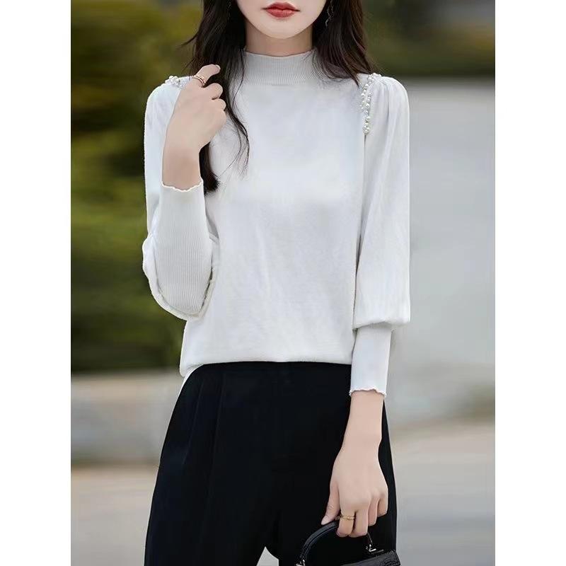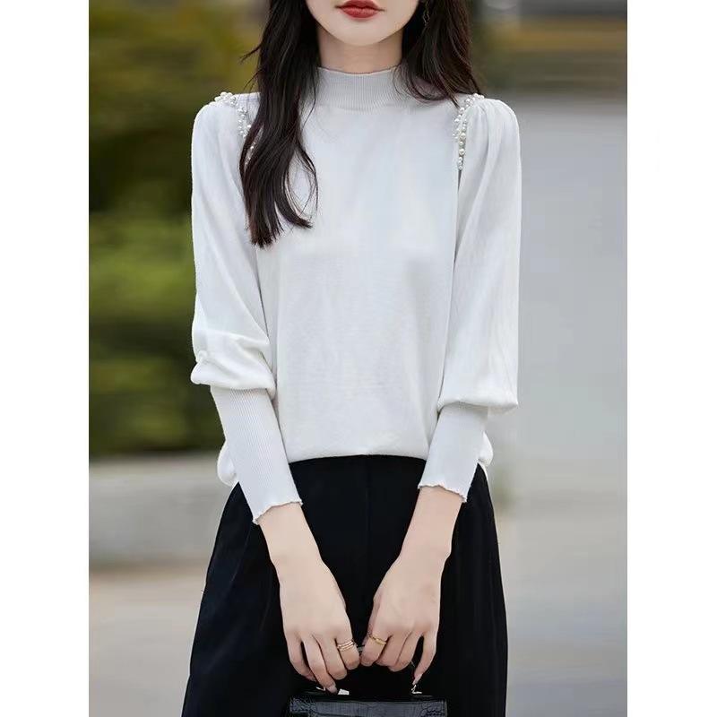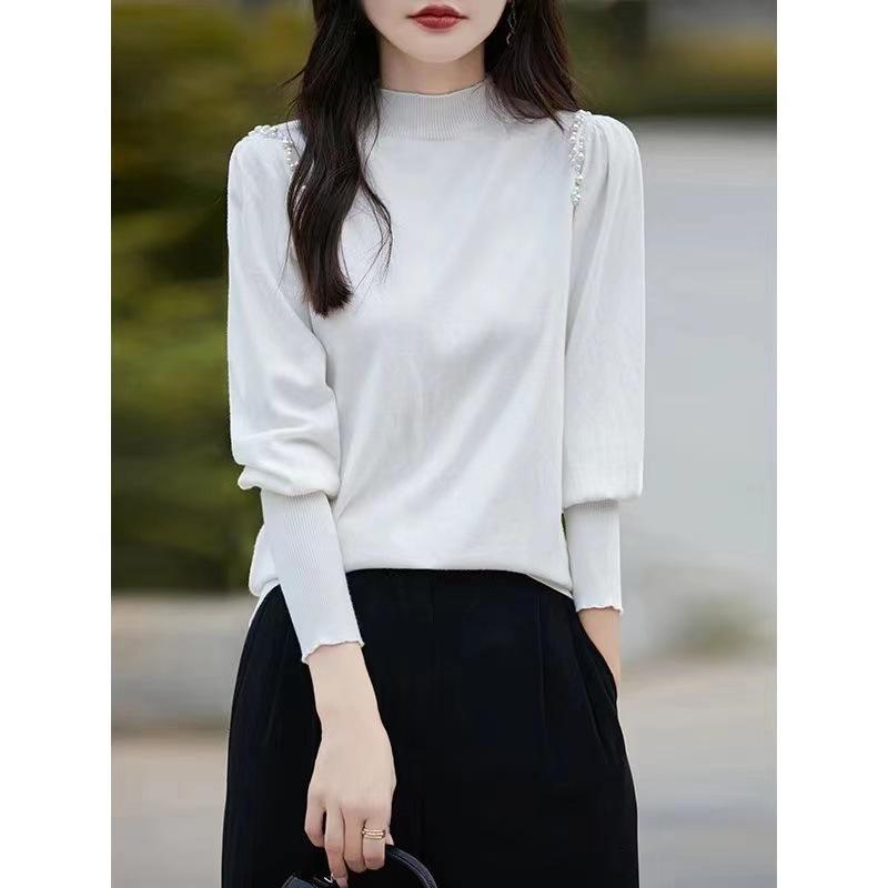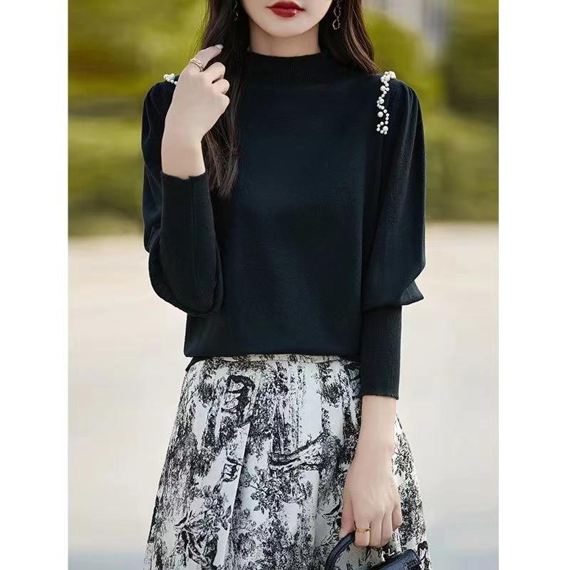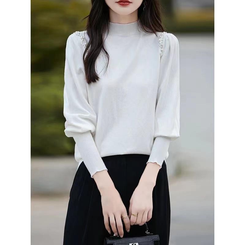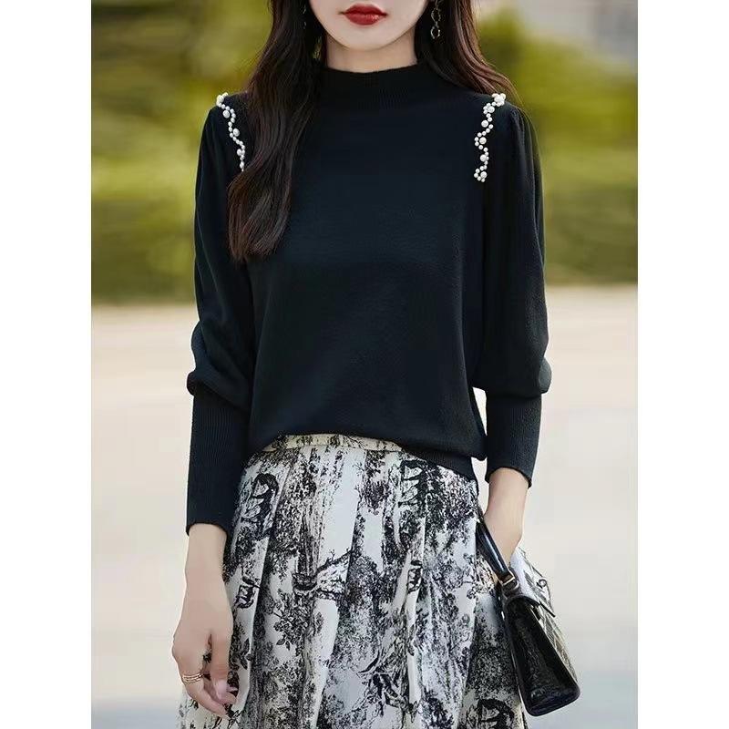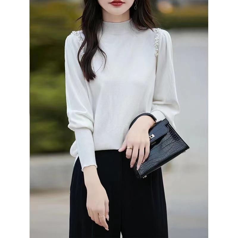 Elegante Suéter Base Tejido Dulce y Delicado para Mujer Otoño e Invierno Nuevo Suéter Elegante Lazy con Cuentas
