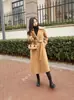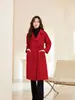 Abrigo de lana de doble cara con cuello de traje para mujer, otoño e invierno 2024, elegante abrigo de lana con cinturón de longitud media para mujer