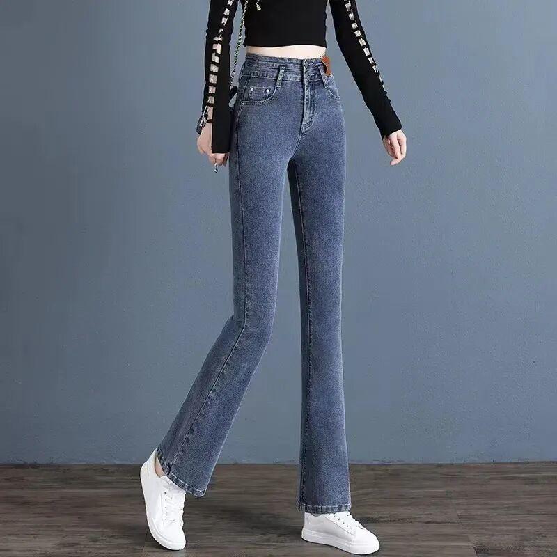 Pantalones vaqueros elásticos de cintura alta blancos para mujer, de primavera y otoño, elegantes y largos que combinan con todo.