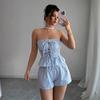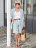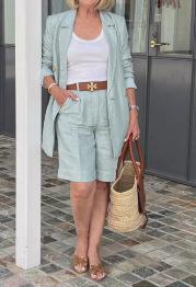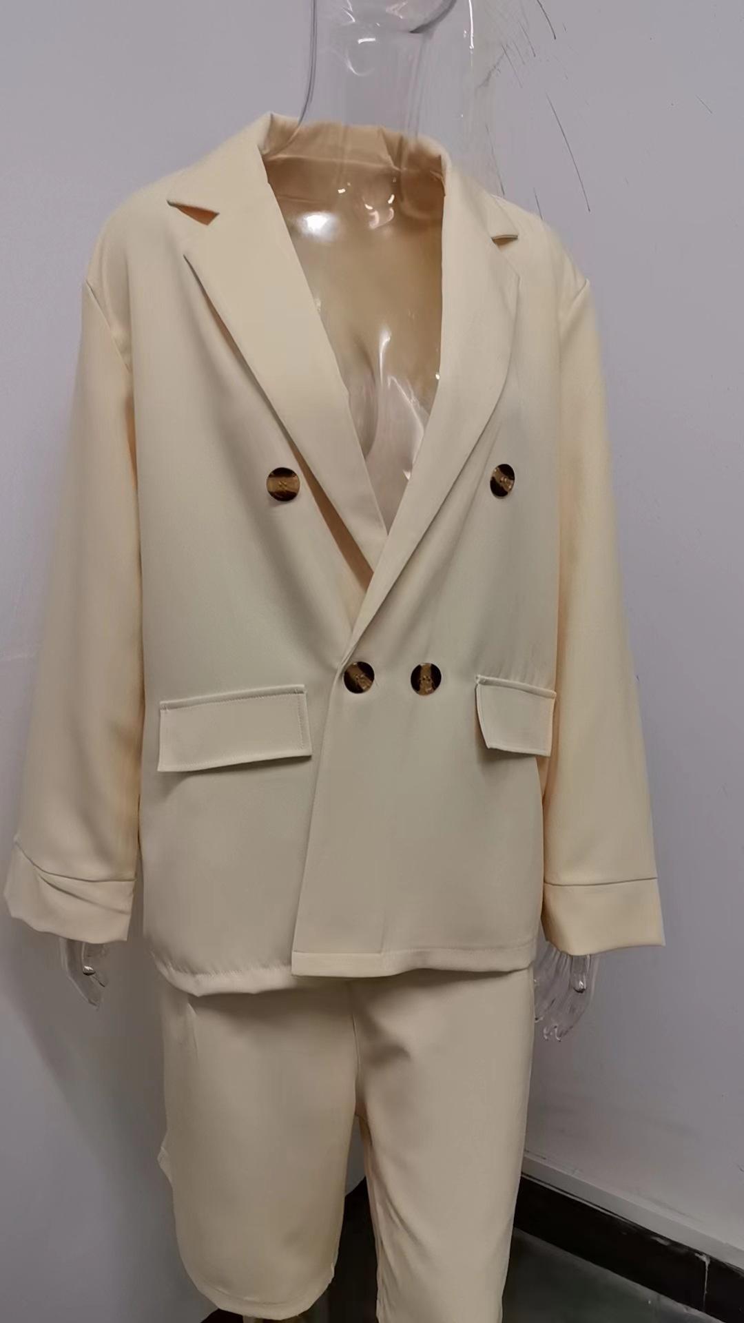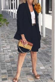 2024 Traje transfronterizo europeo y americano, top y pantalones cortos, deseo de temperamento sexy, cárdigan de solapa informal de moda para mujer