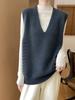 Chaleco Tejido de Lana Pura Perezoso para Mujer Otoño e Invierno Chaleco Suéter sin Mangas Nuevo Cuello en V Apilado Holgado Moda