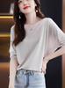 Top de verano 2024 de cuello redondo de seda helada de manga corta para mujer, holgado, adelgazante, estilo perezoso, fino y elegante, de talla grande