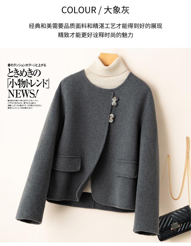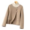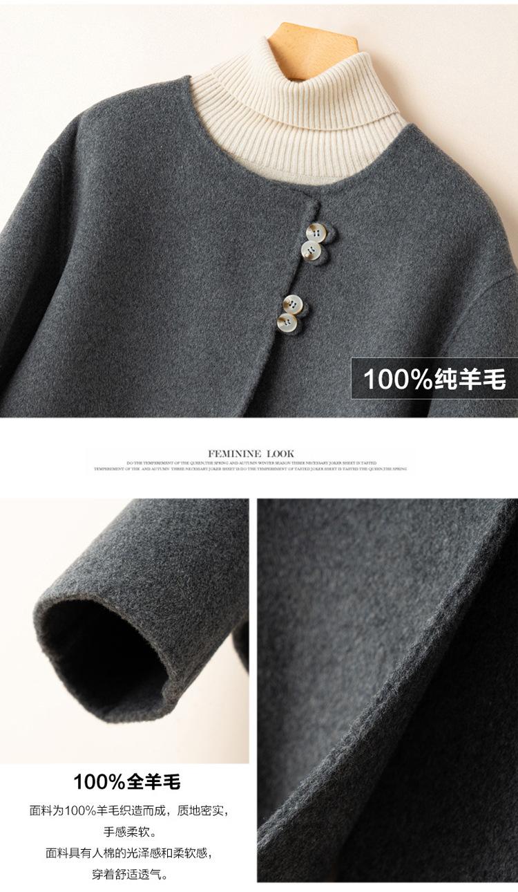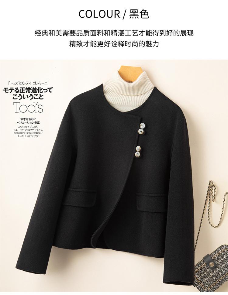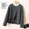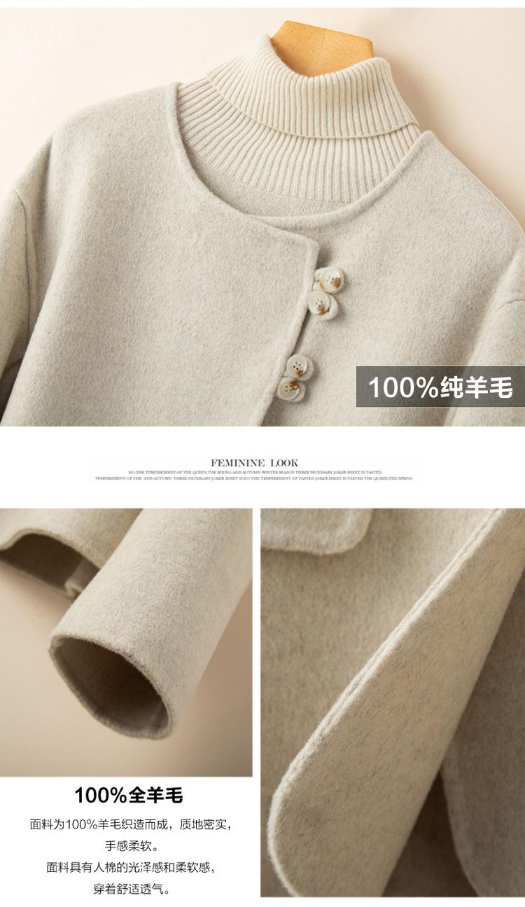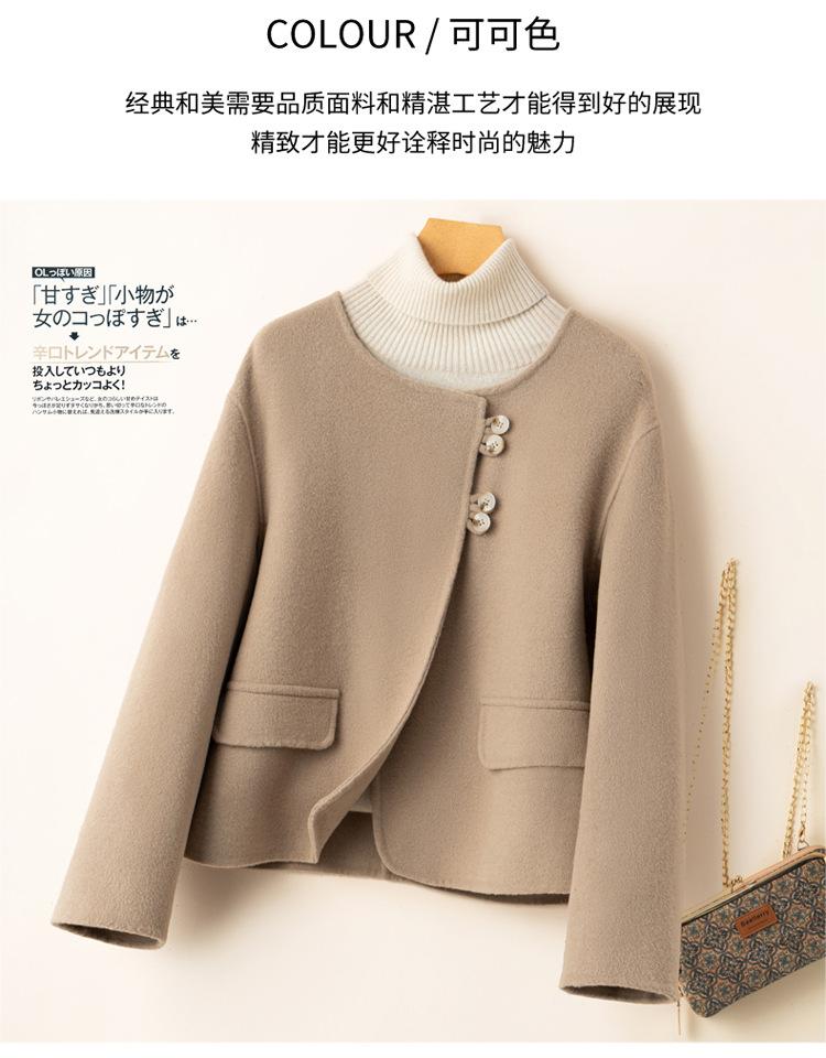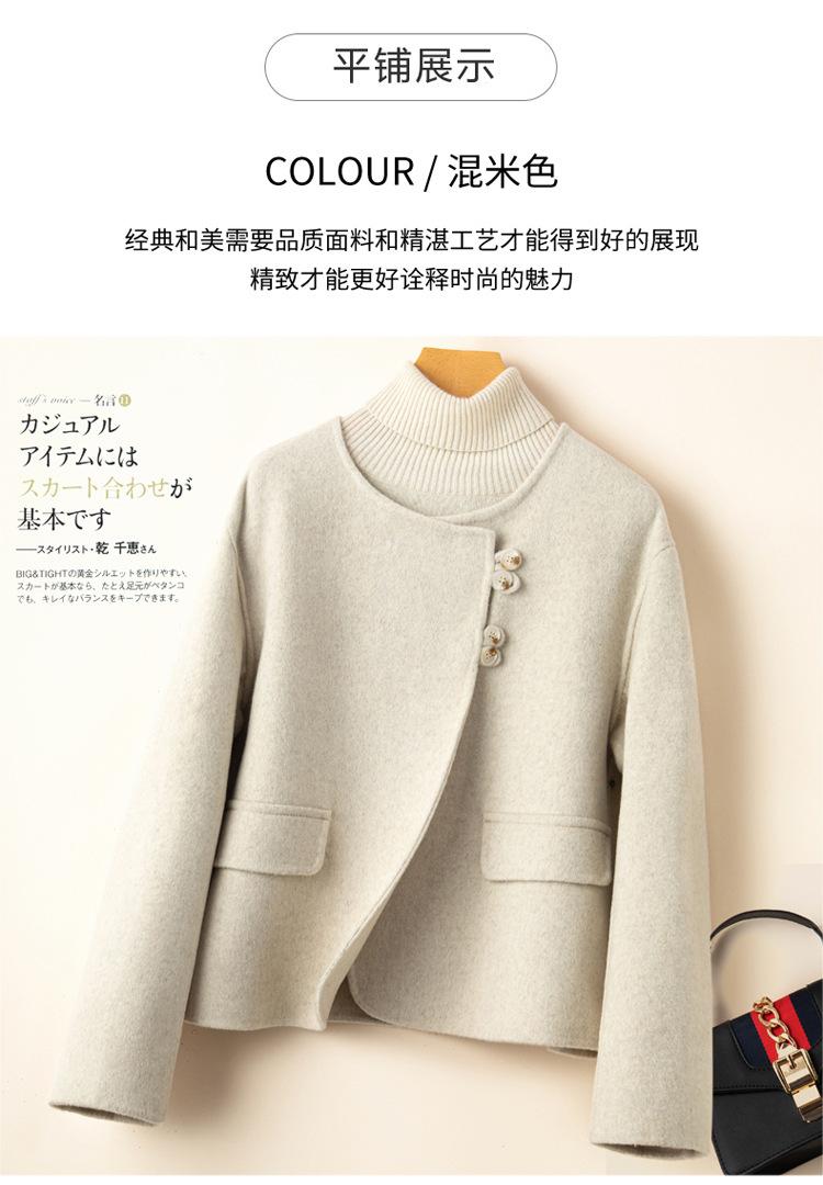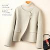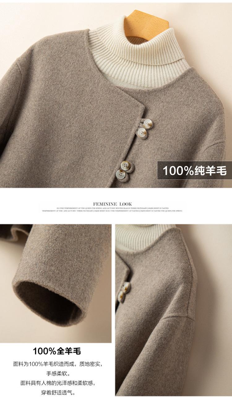 24 nuevo otoño e invierno una generación de 100 pura lana de doble cara tweed abrigo de cuello redondo diseño de hebilla oblicua damas abrigo corto