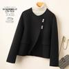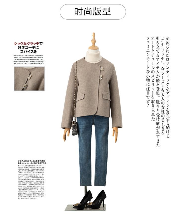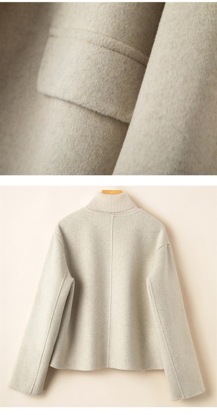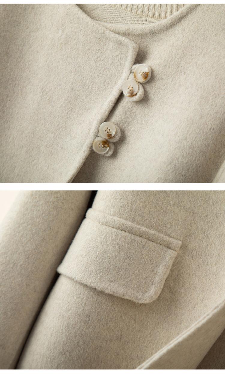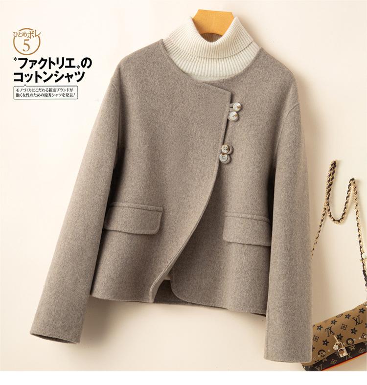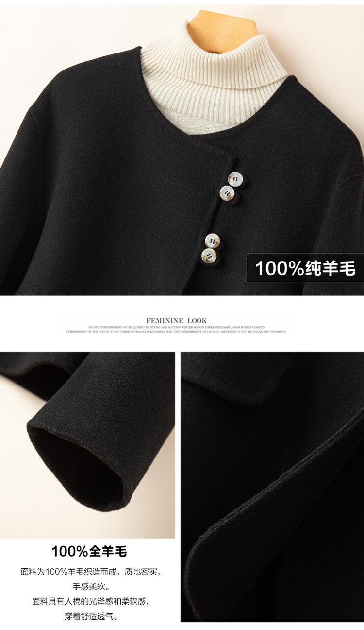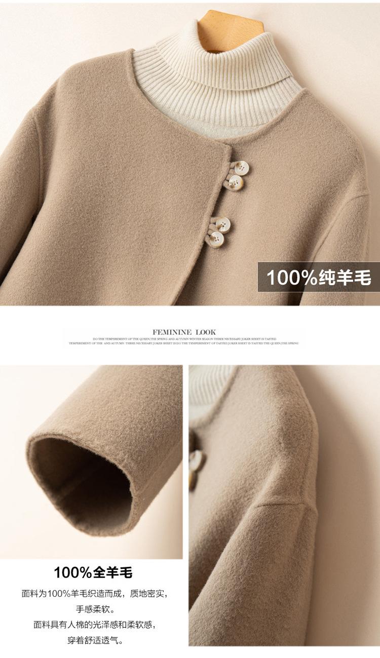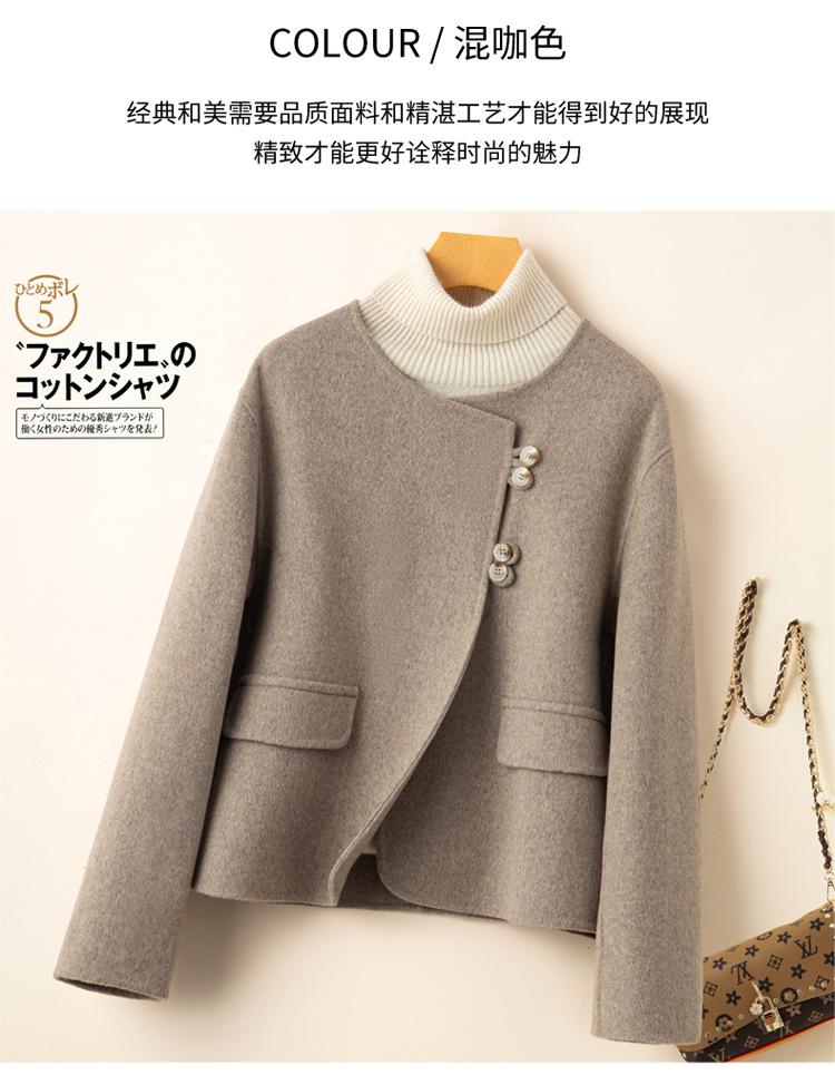 24 nuevo otoño e invierno una generación de 100 pura lana de doble cara tweed abrigo de cuello redondo diseño de hebilla oblicua damas abrigo corto