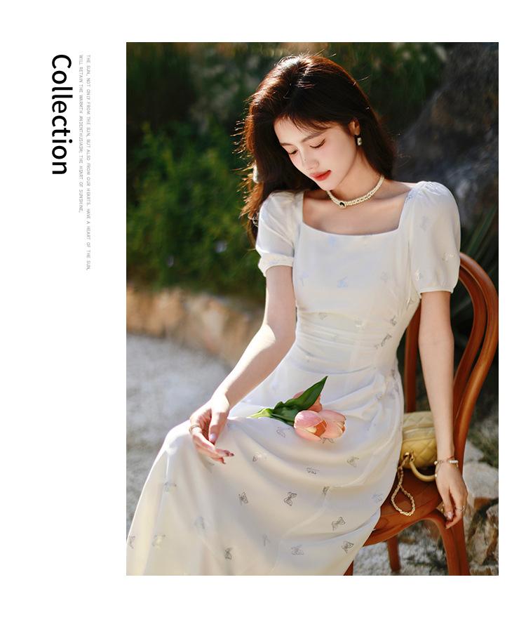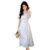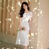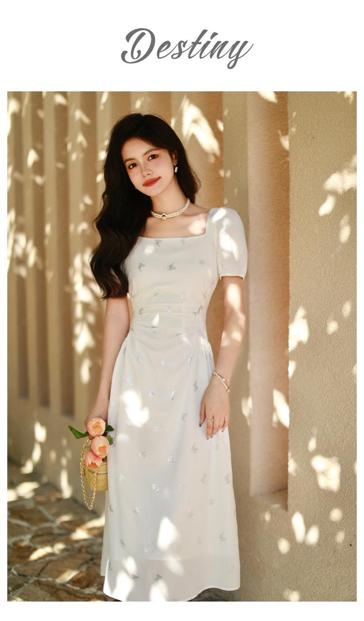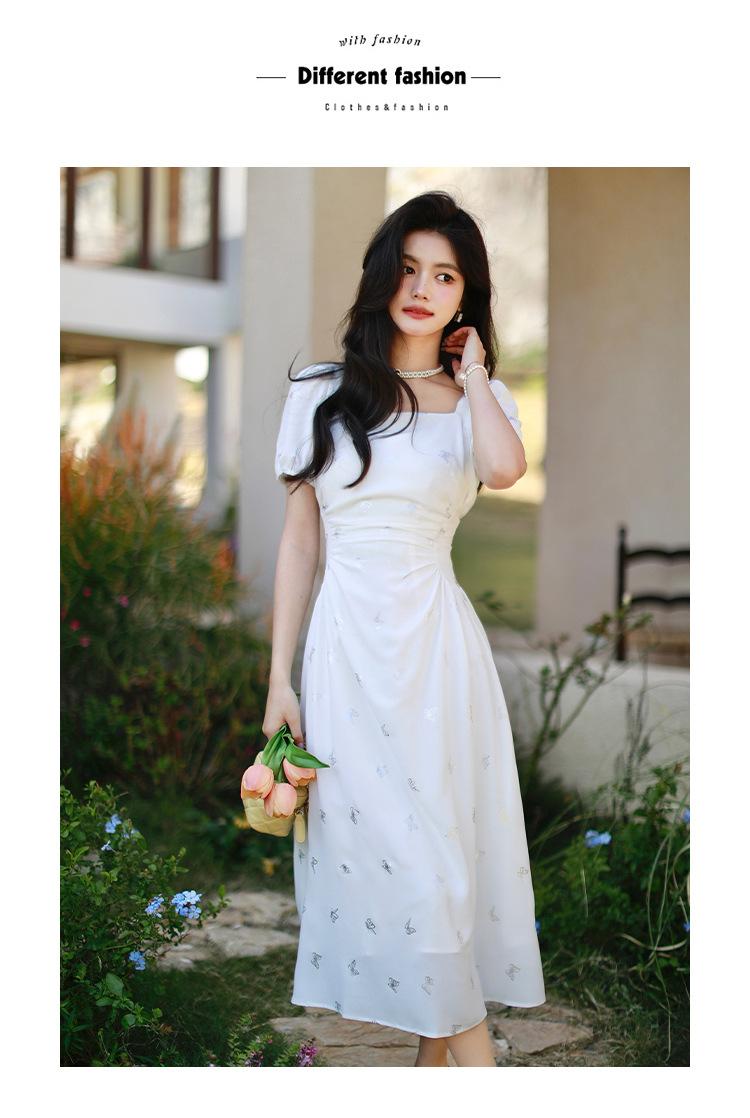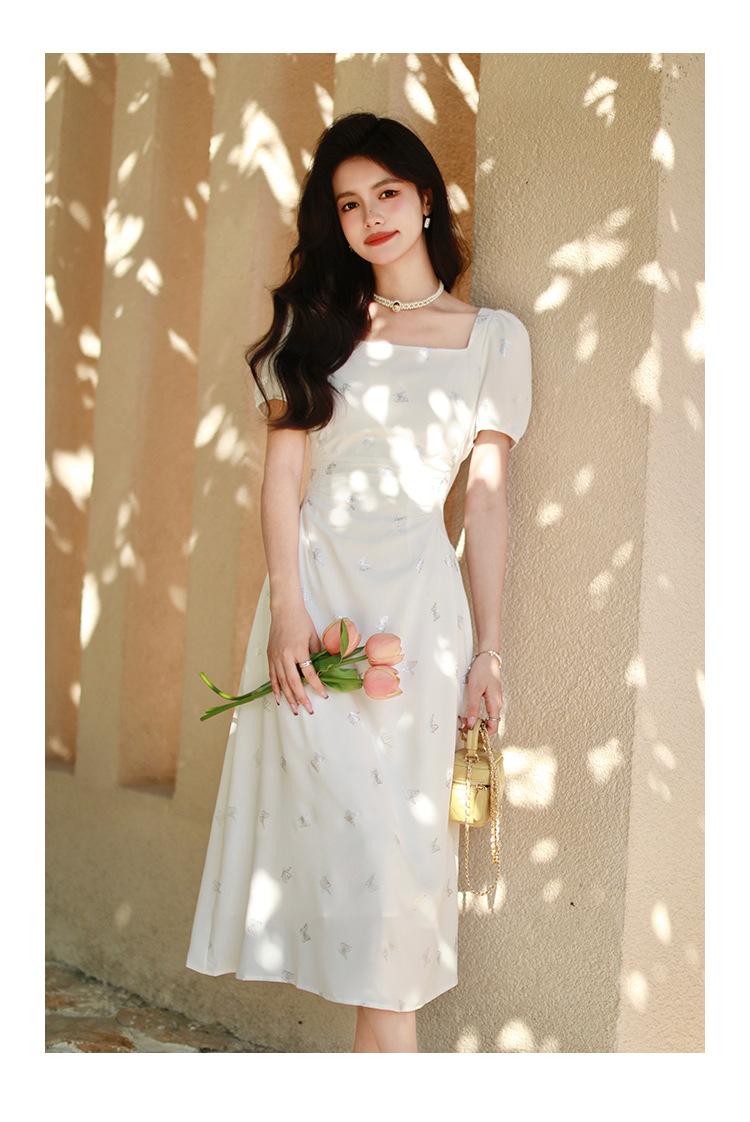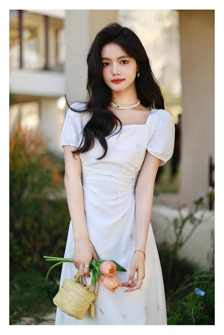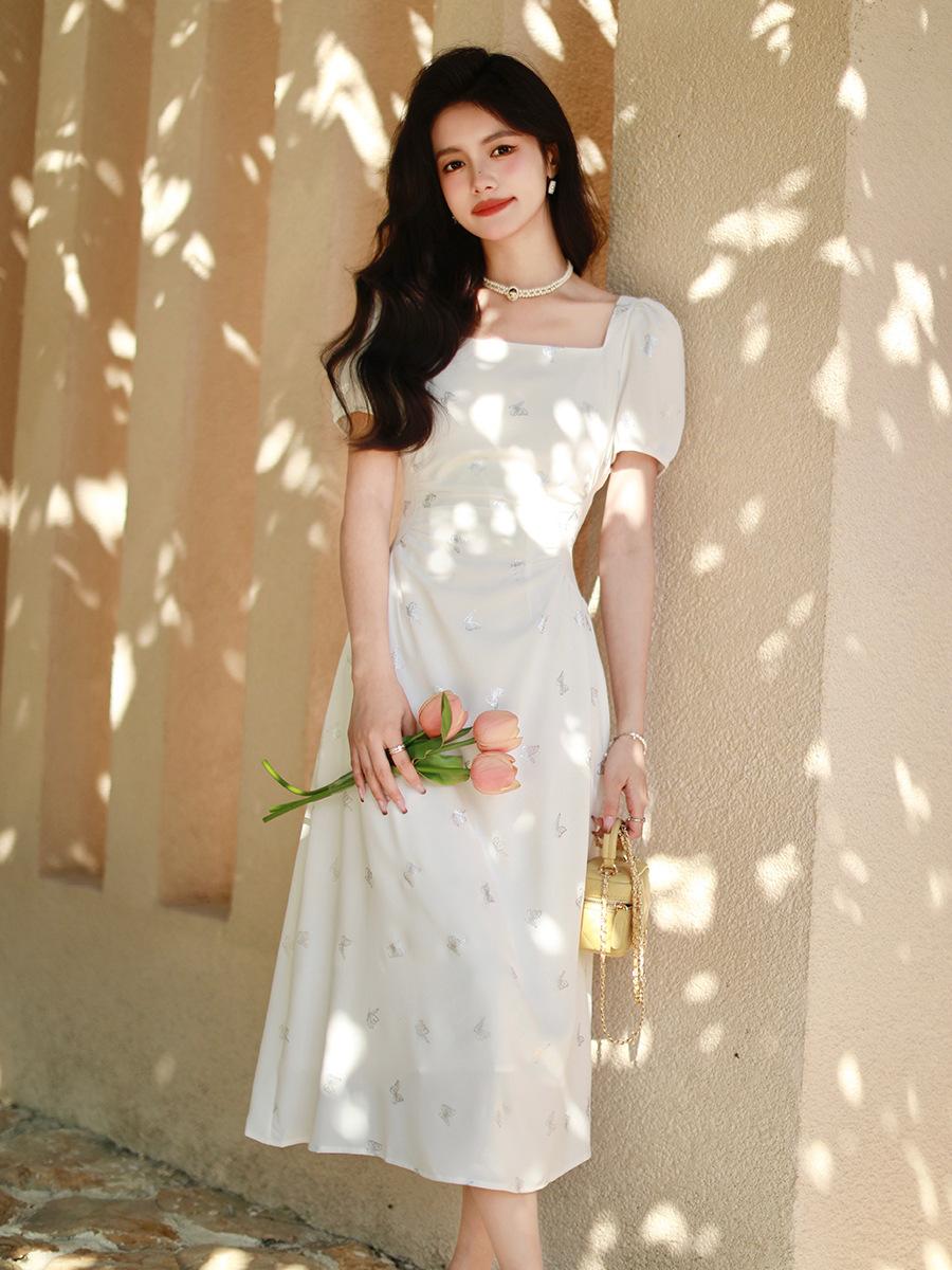 Vestido elegante francés blanco con cuello cuadrado para mujer, novedad de verano 2024, vestido largo ajustado de alta gama.