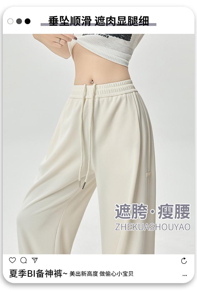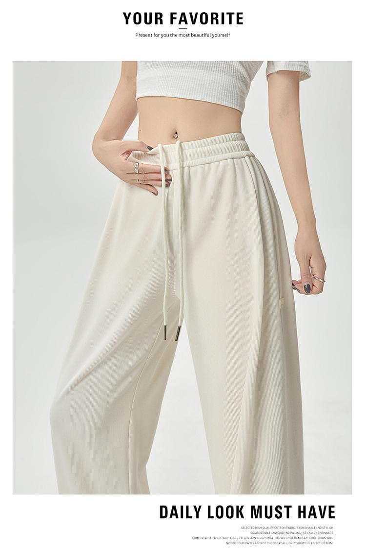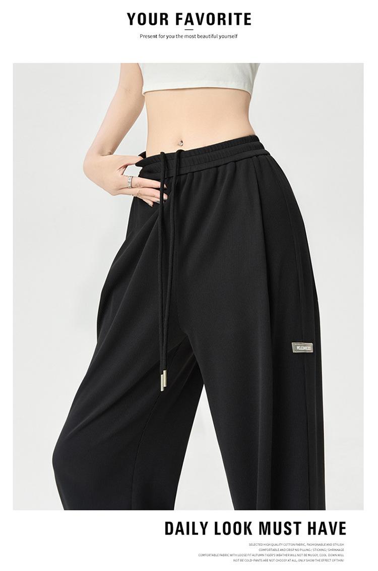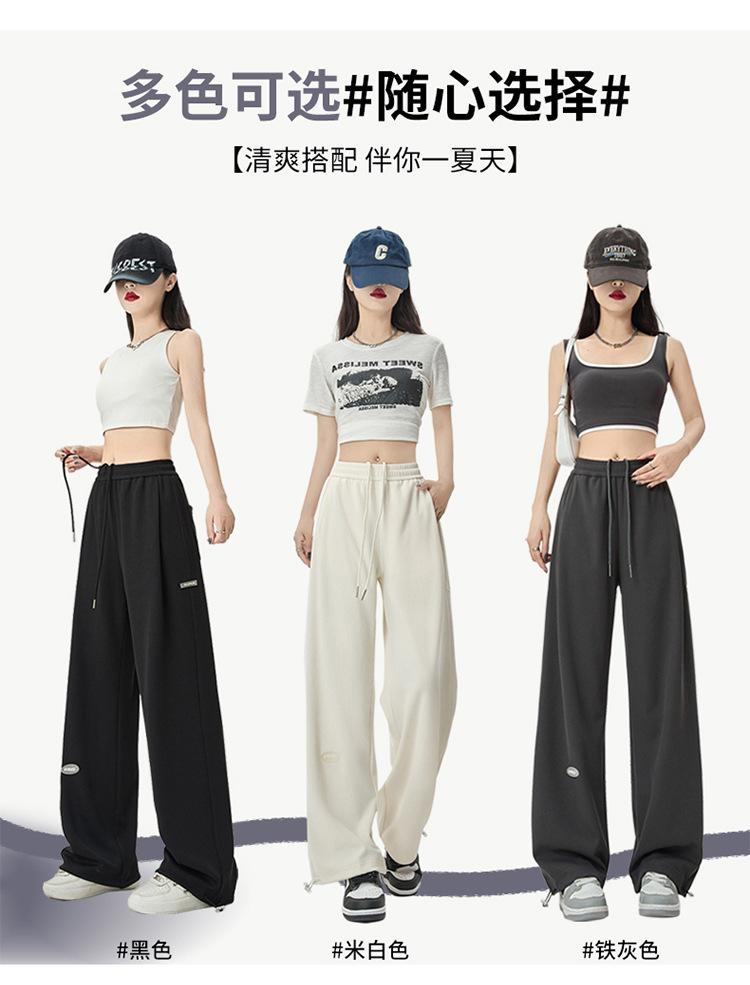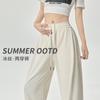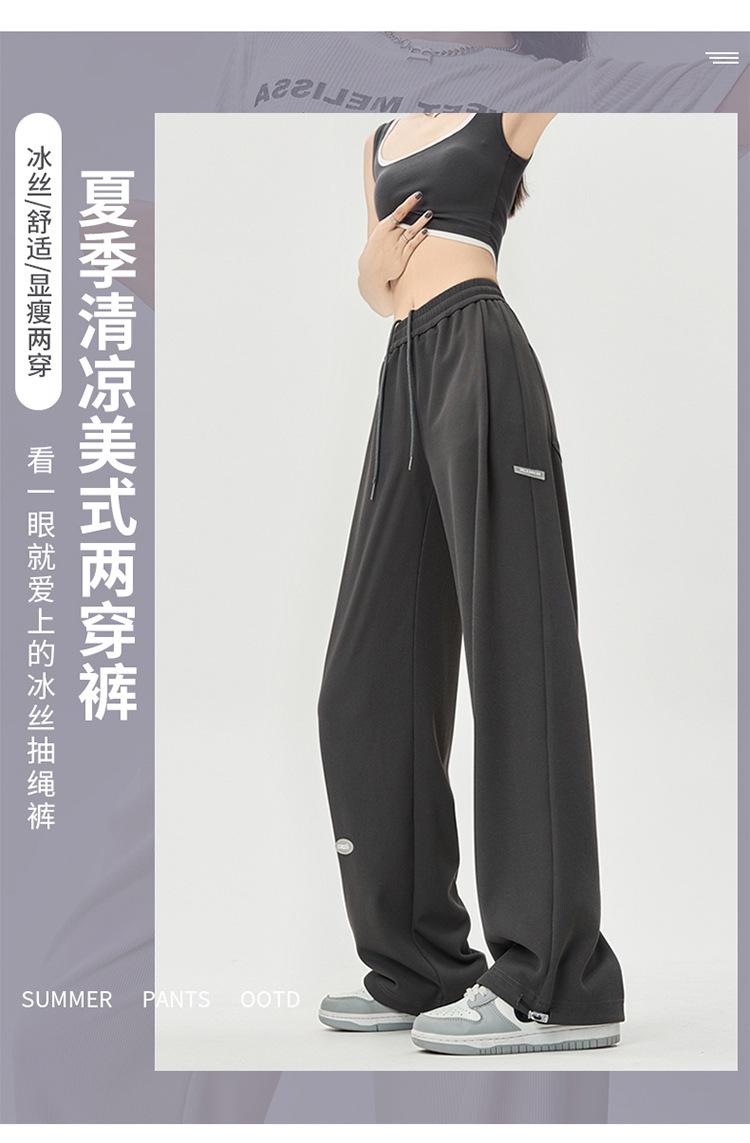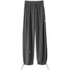 Pantalones deportivos de seda de hielo para mujer, pantalones finos de verano 2024, nuevos pantalones frescos con cordón, pantalones casuales de pierna ancha, pantalones de sudadera de dos piezas