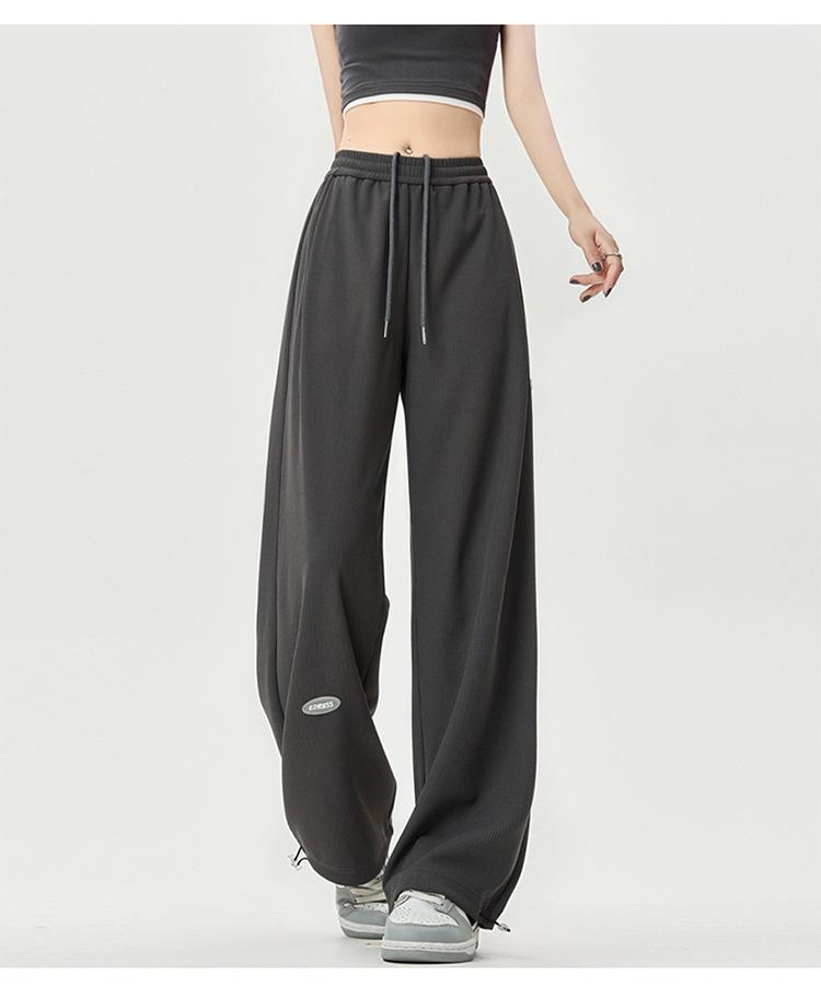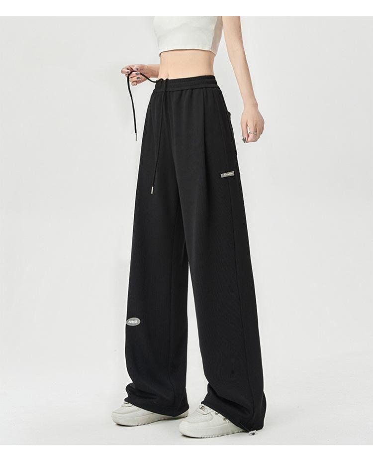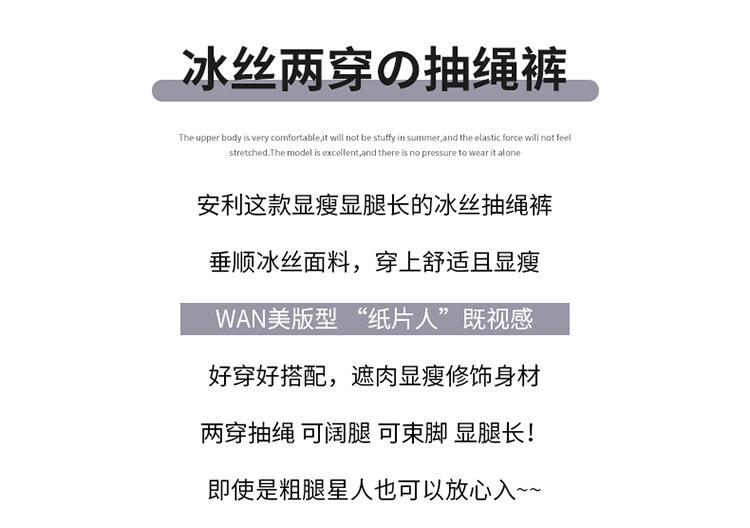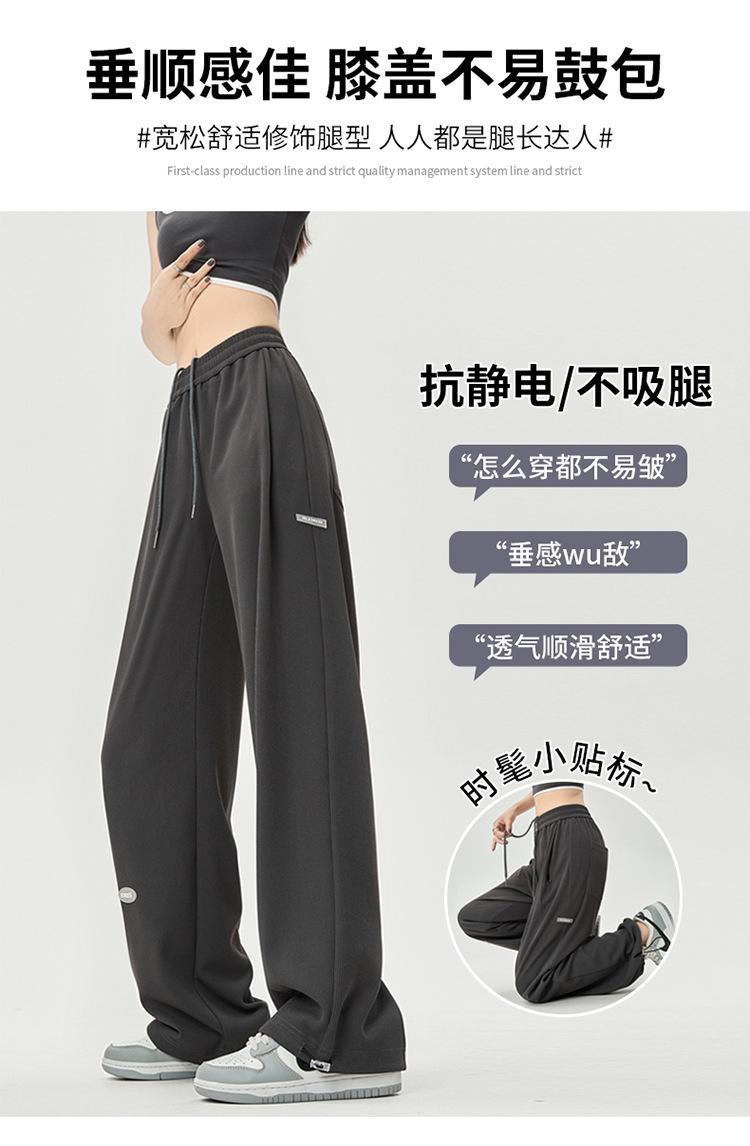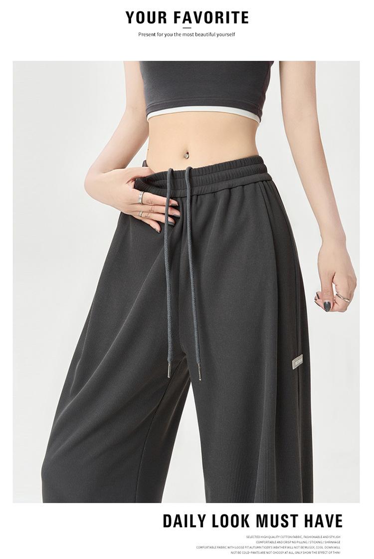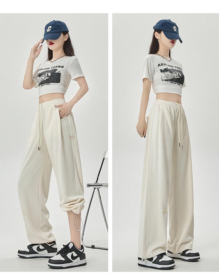 Pantalones deportivos de seda de hielo para mujer, pantalones finos de verano 2024, nuevos pantalones frescos con cordón, pantalones casuales de pierna ancha, pantalones de sudadera de dos piezas
