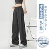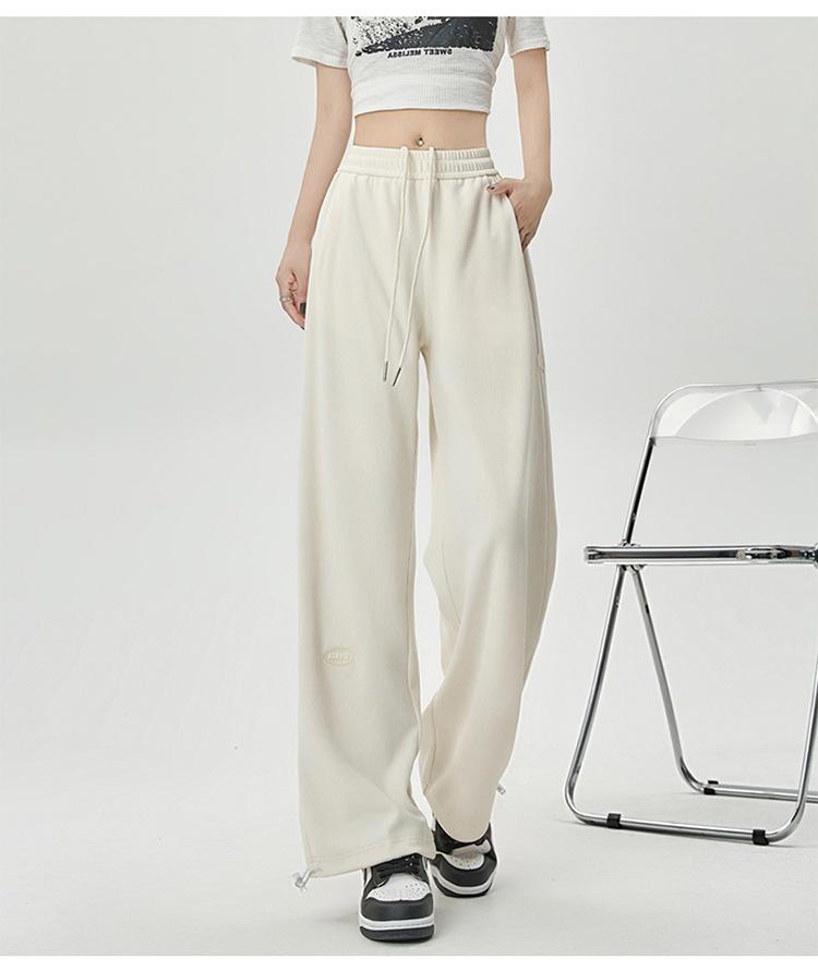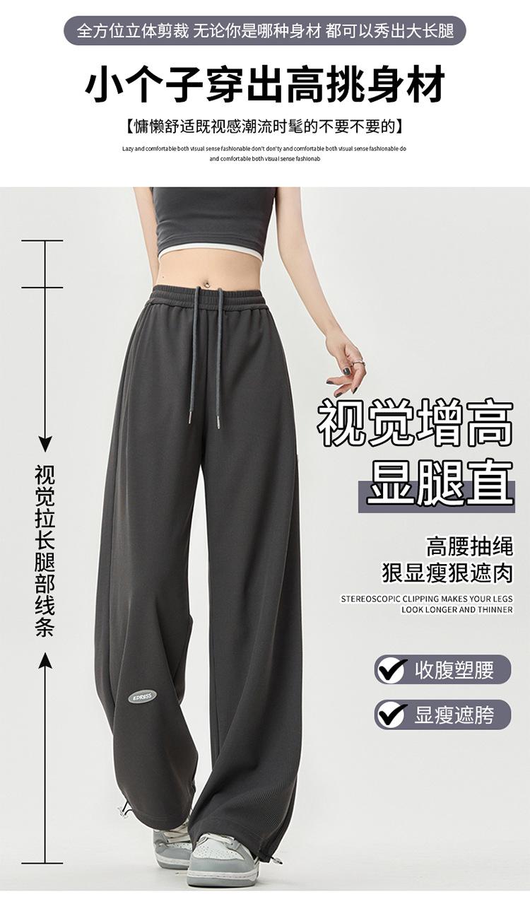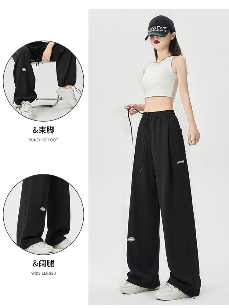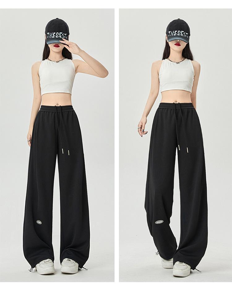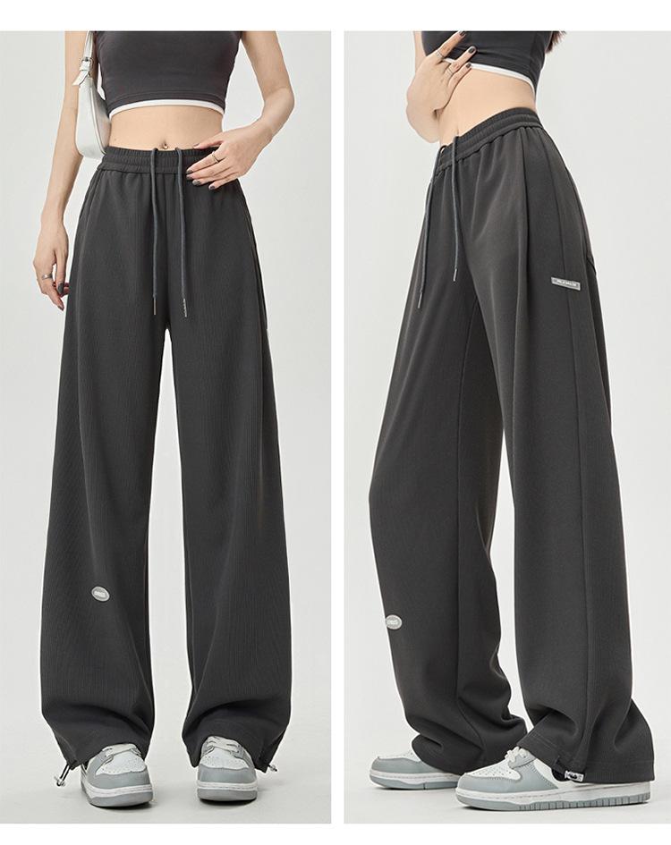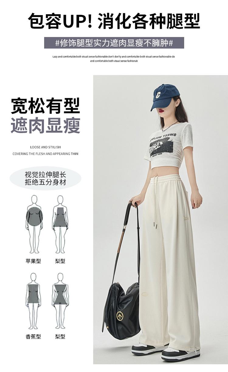 Pantalones deportivos de seda de hielo para mujer, pantalones finos de verano 2024, nuevos pantalones frescos con cordón, pantalones casuales de pierna ancha, pantalones de sudadera de dos piezas