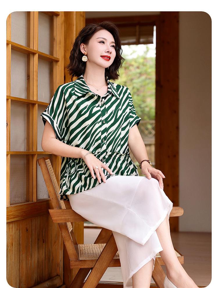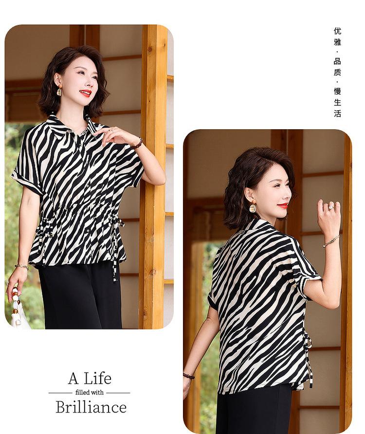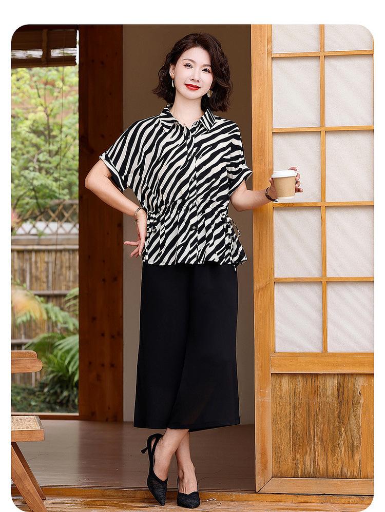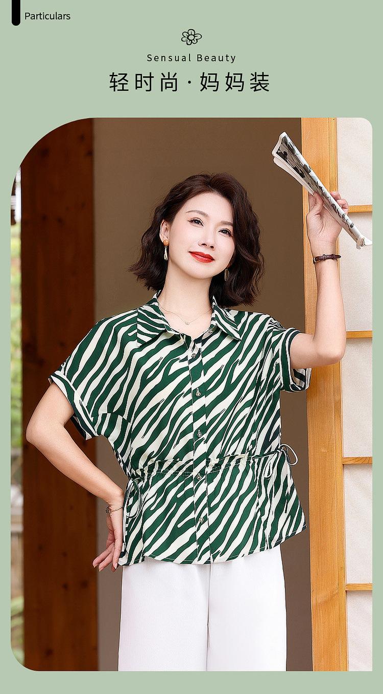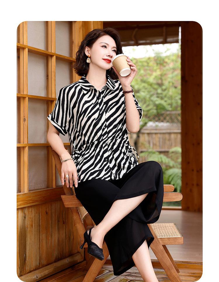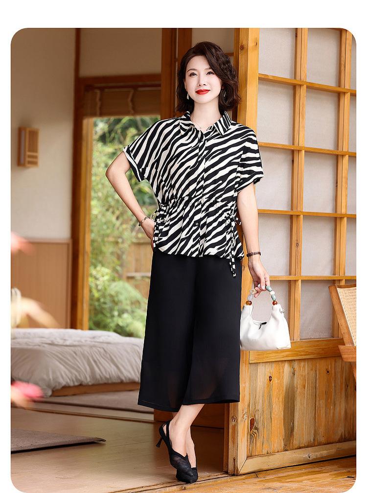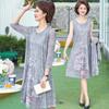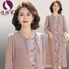Vestido de verano para madres de mediana edad, camisa a rayas de moda, cárdigan fino de gasa para mujeres de 40 y 60 años, conjunto de dos piezas