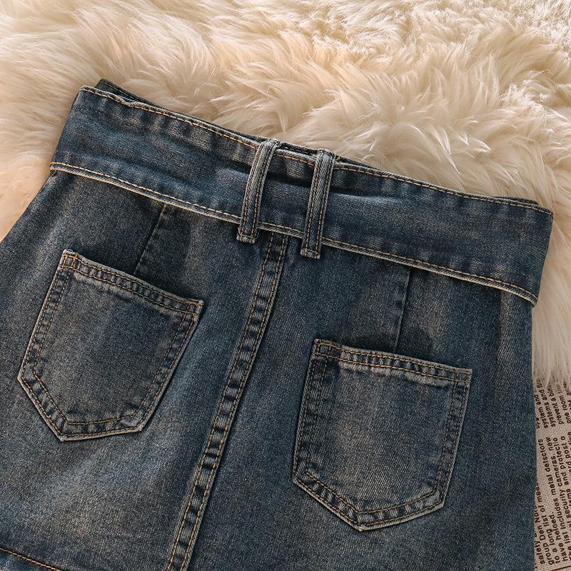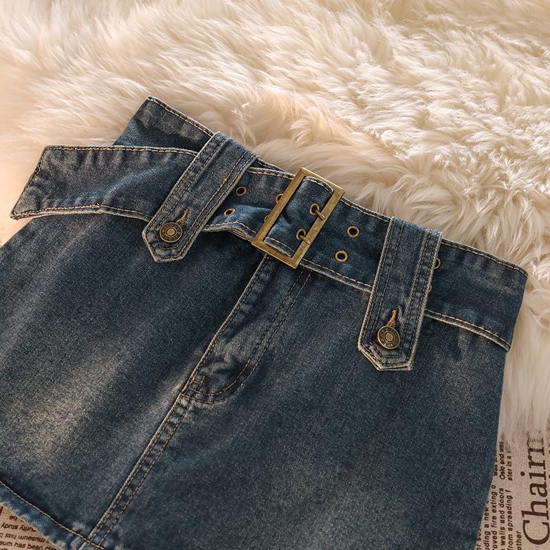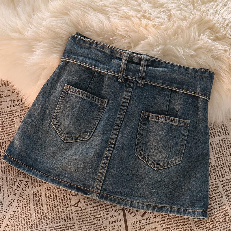 Falda vaquera para mujer, estilo americano de verano, estilo retro, cintura alta, estilo Spice Girl, corte A, negra, a la cadera