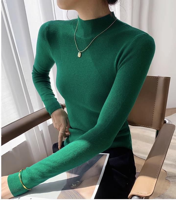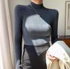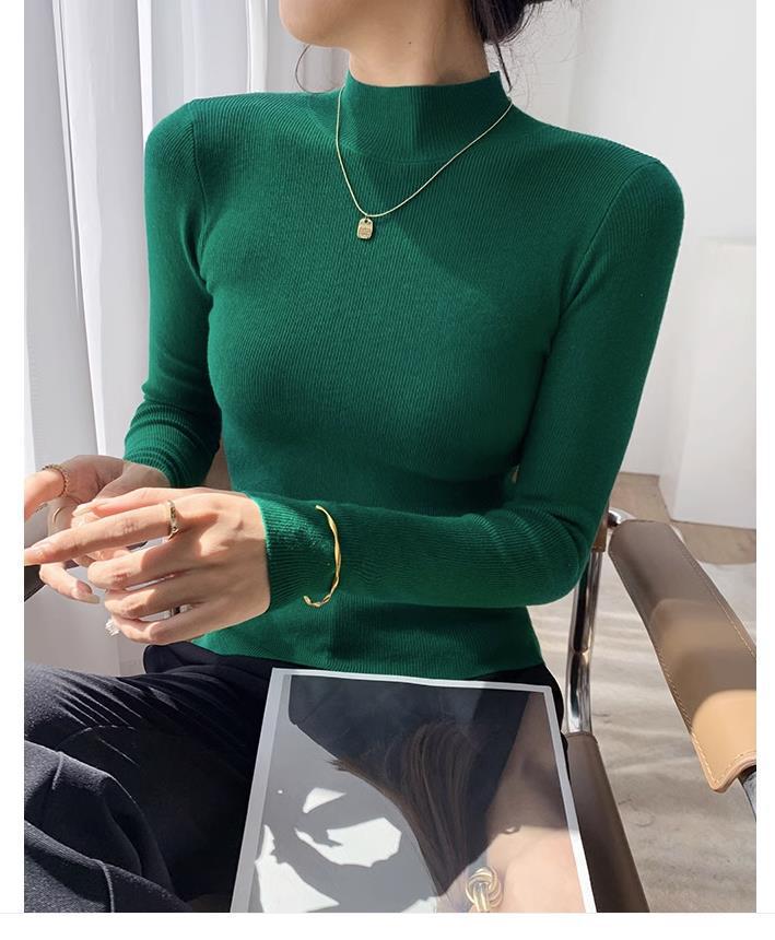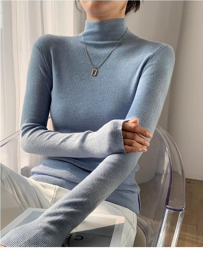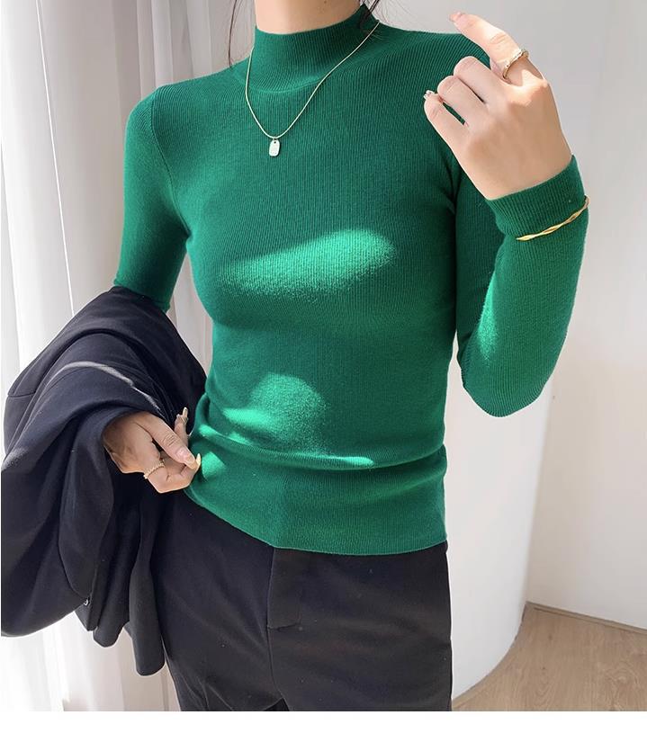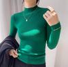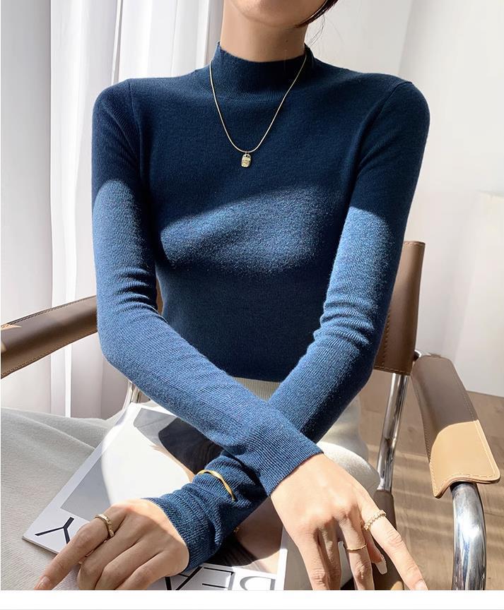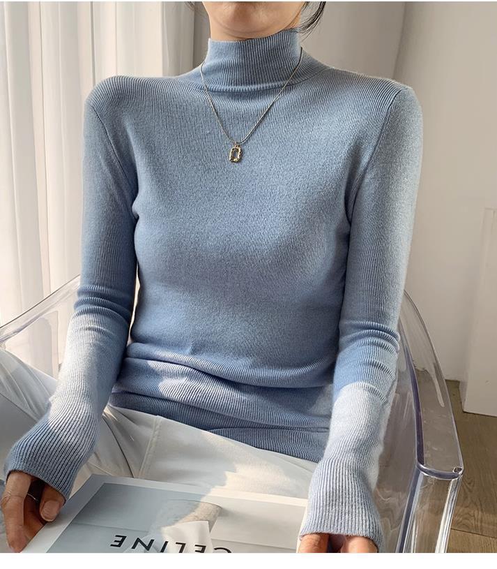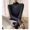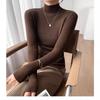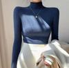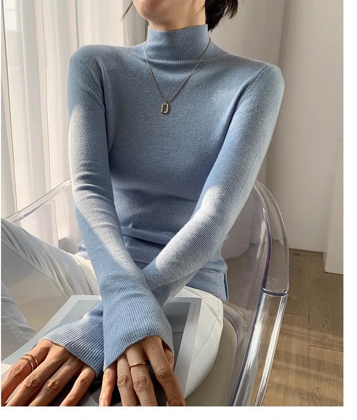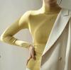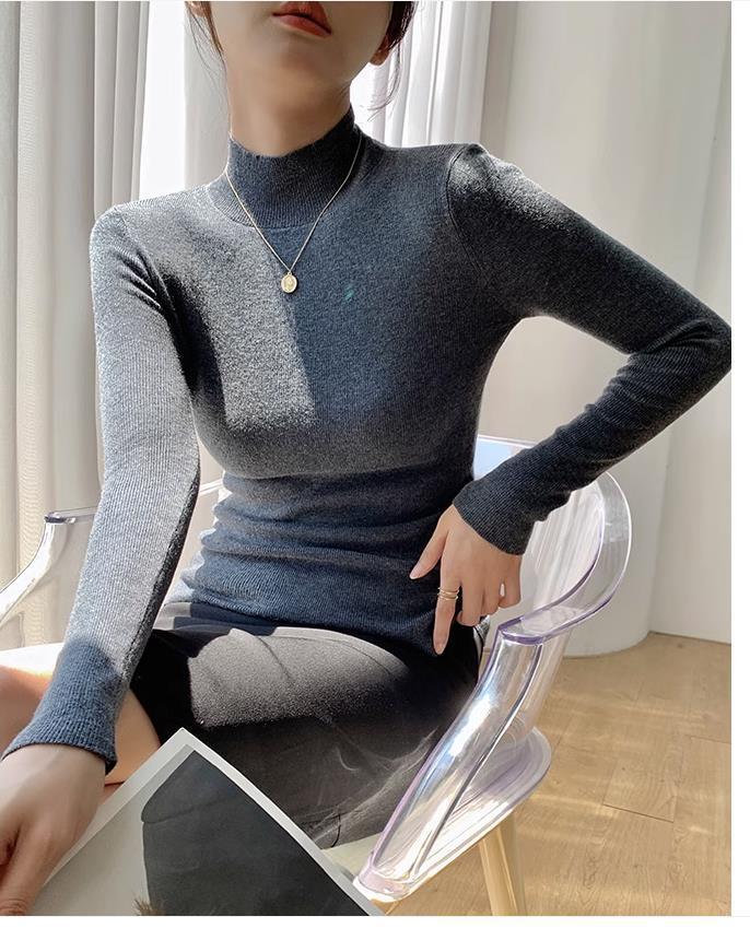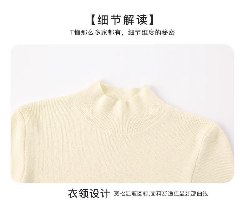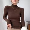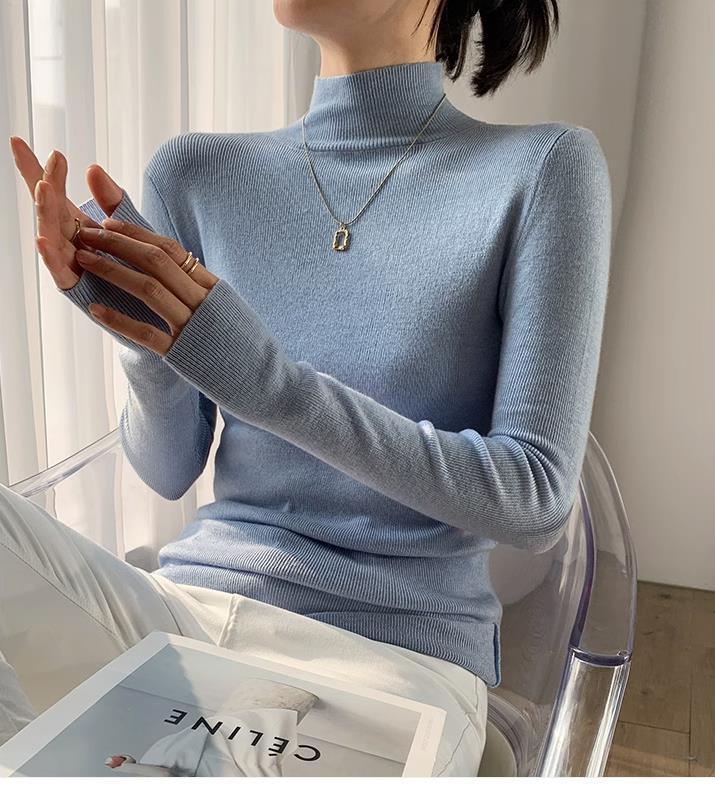Suéter de cuello semialto color albaricoque para mujer, otoño e invierno 2024, nuevo, corte entallado, adelgazante, temperamento interior, camisa de manga larga para mujer