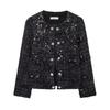 Abrigo informal con borlas de terciopelo dorado para otoño e invierno, estilo europeo y americano, holgado, con solapa de fiesta y cordones, para mujer, transfronterizo, 2024