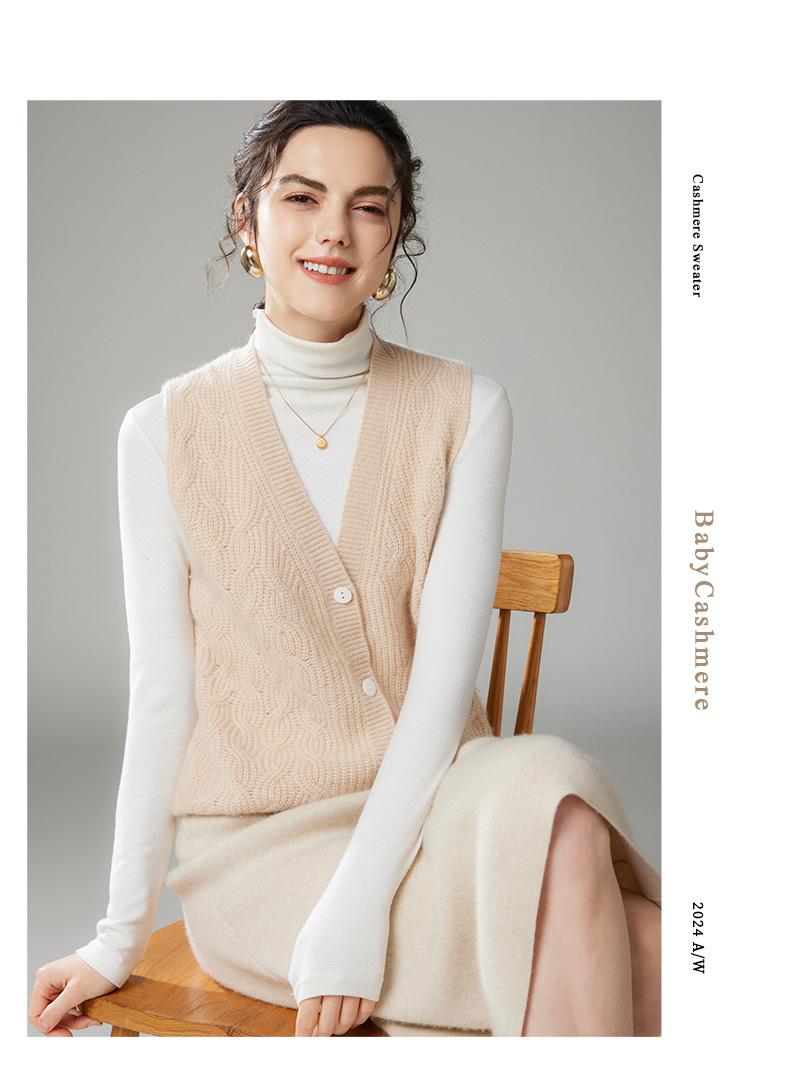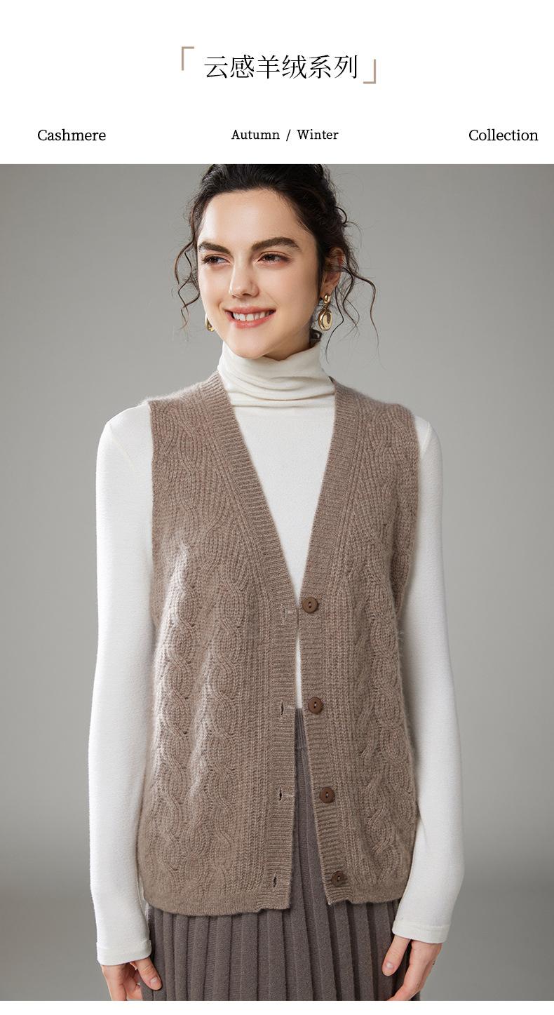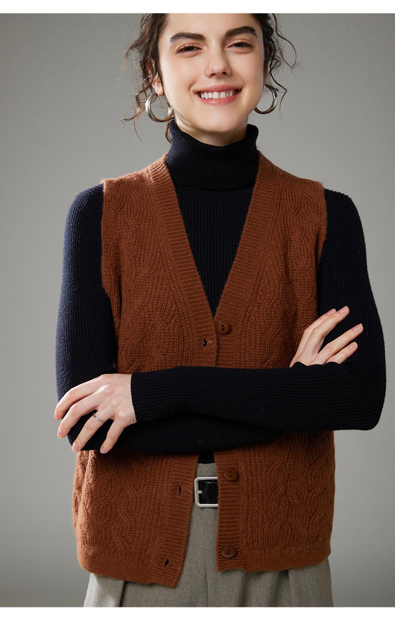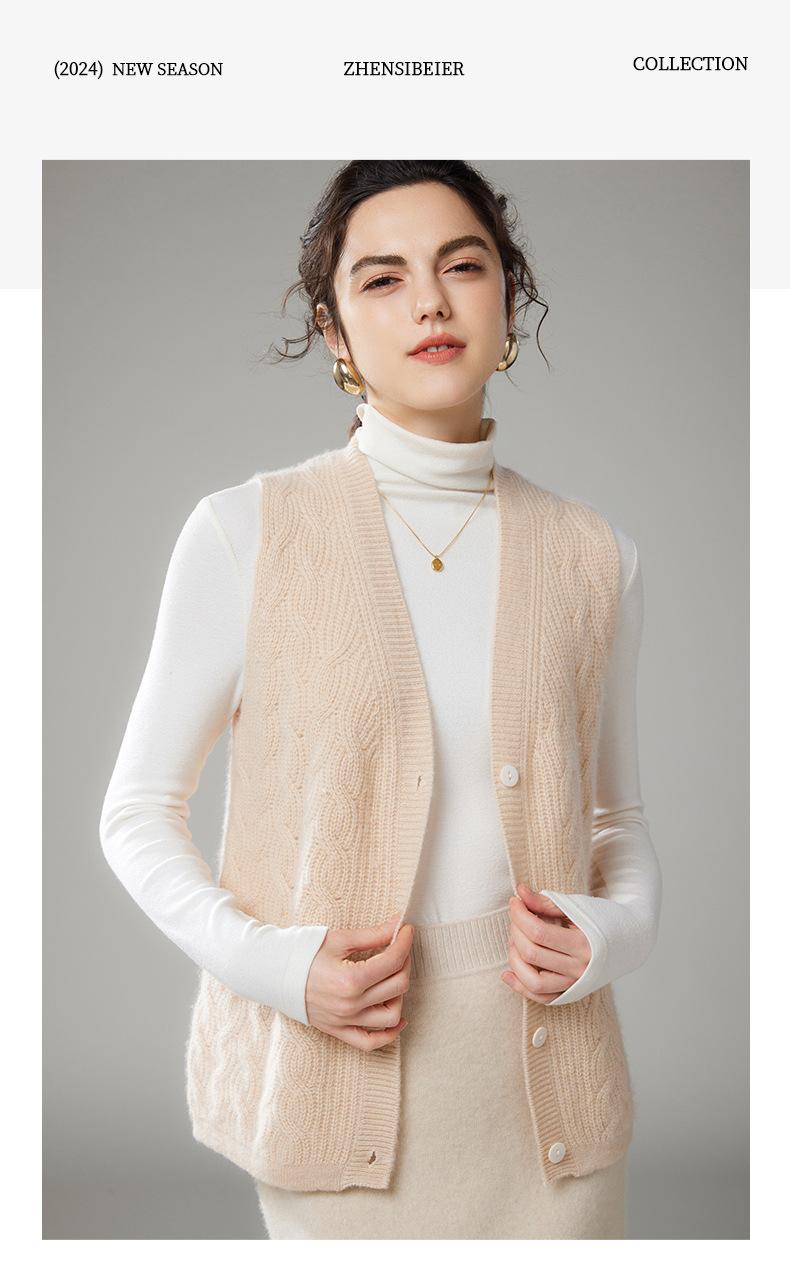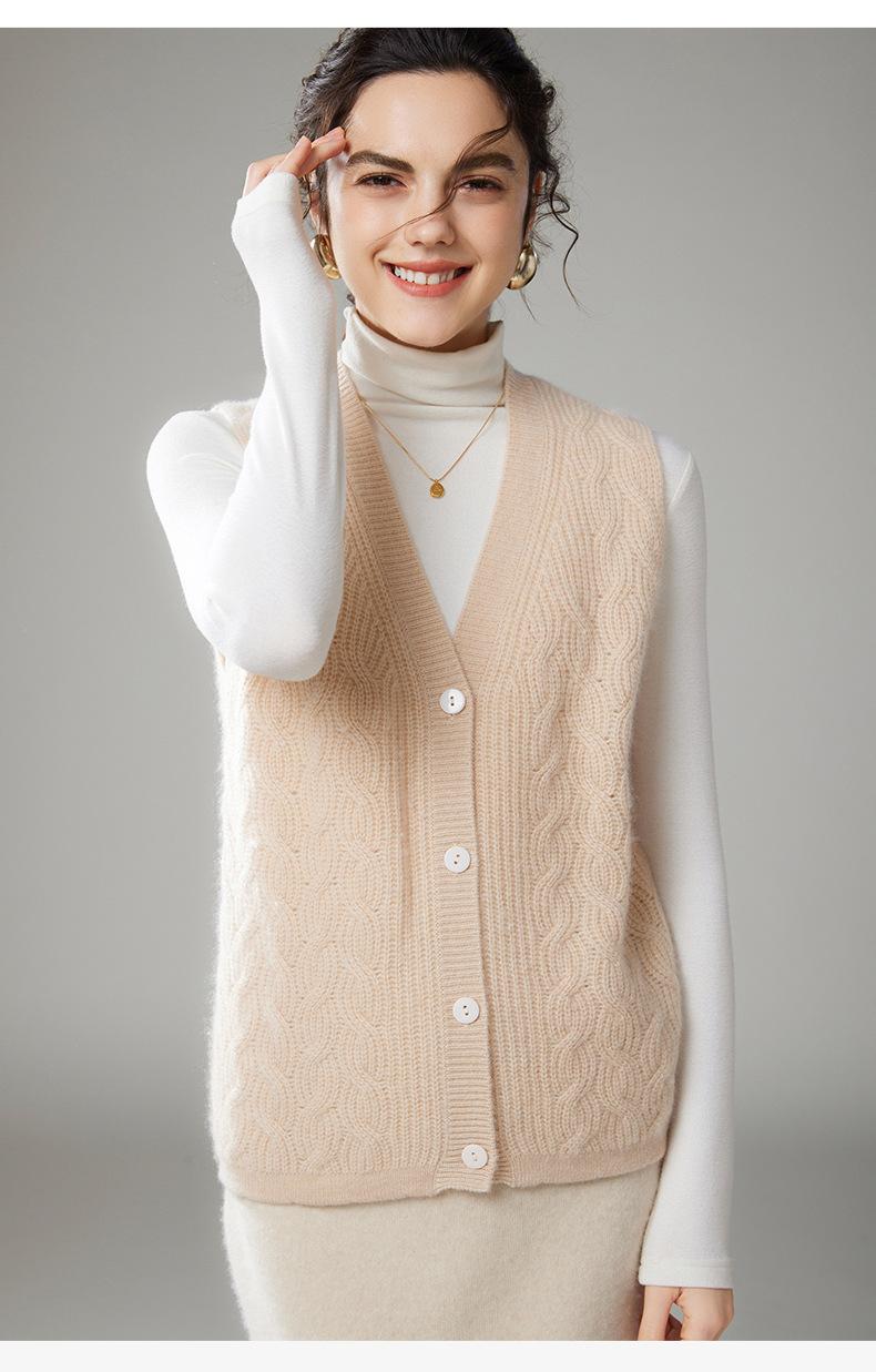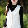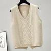 Chaleco de cachemira trenzado vintage de otoño e invierno 2024, chaleco tipo cárdigan con cuello en V y lana de punto sin mangas.