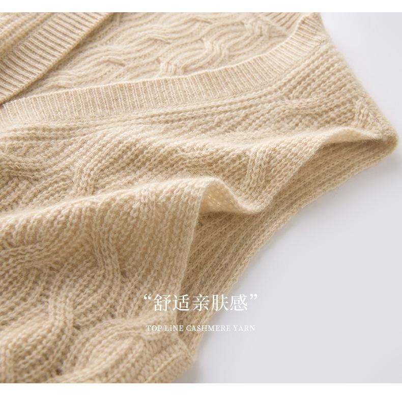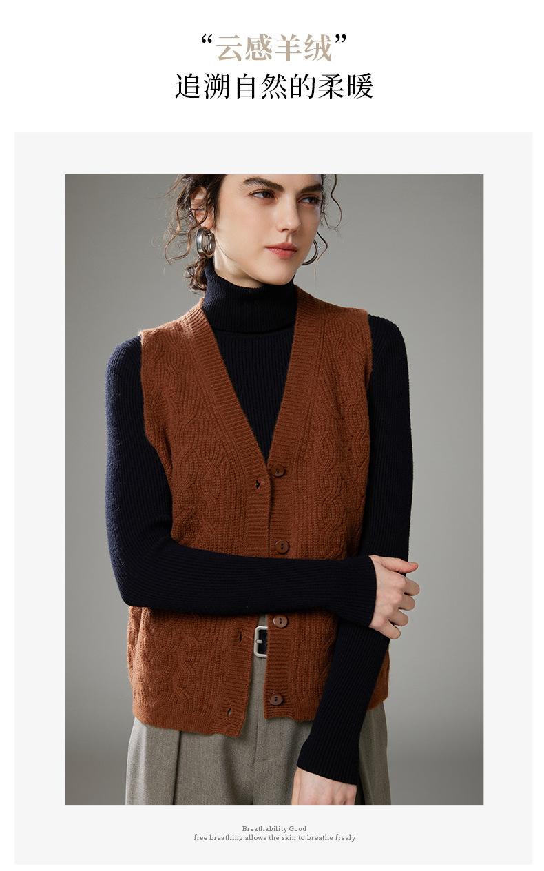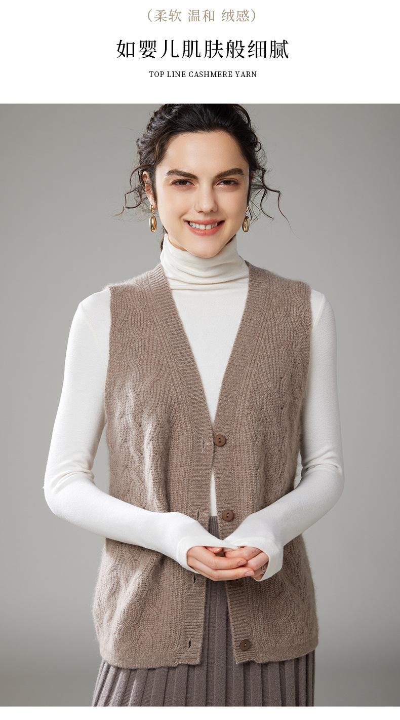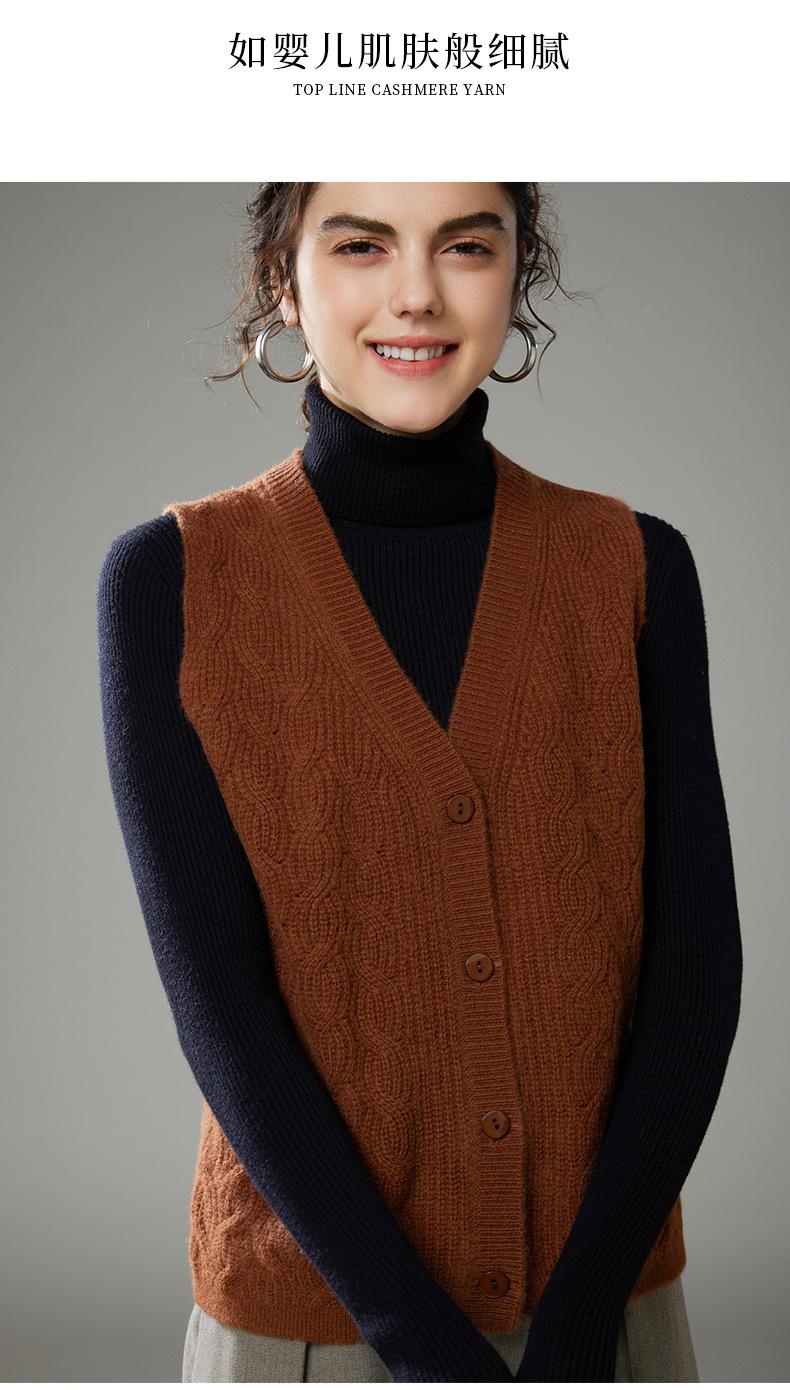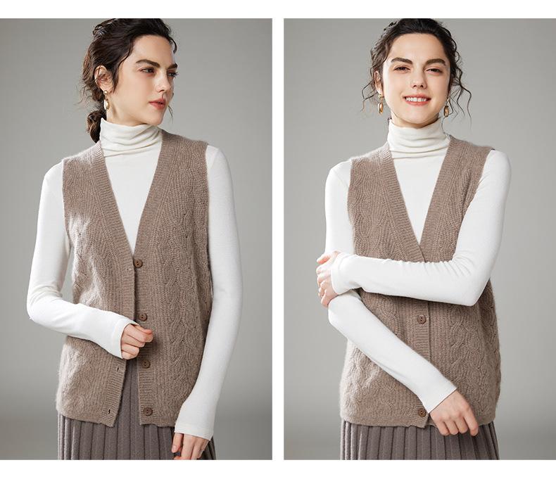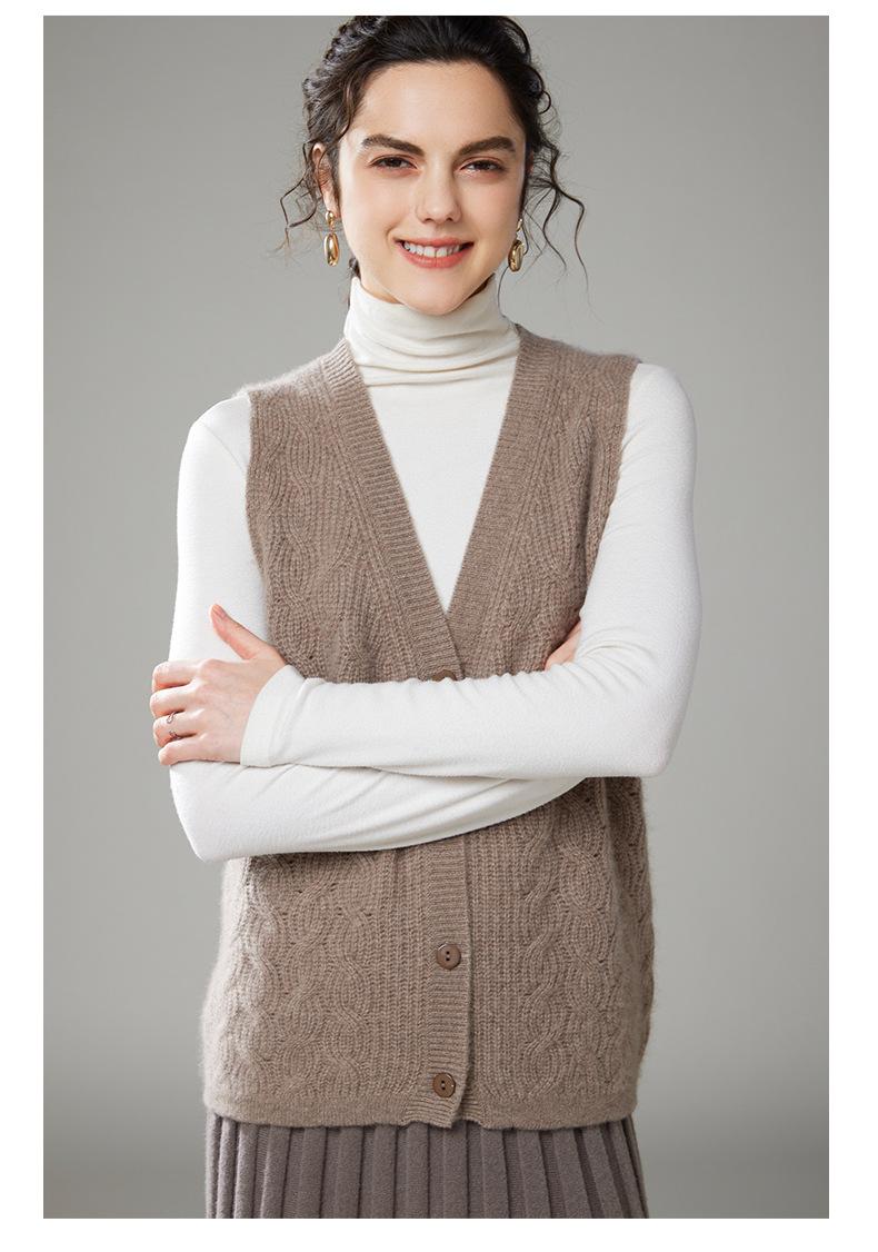 Chaleco de cachemira trenzado vintage de otoño e invierno 2024, chaleco tipo cárdigan con cuello en V y lana de punto sin mangas.