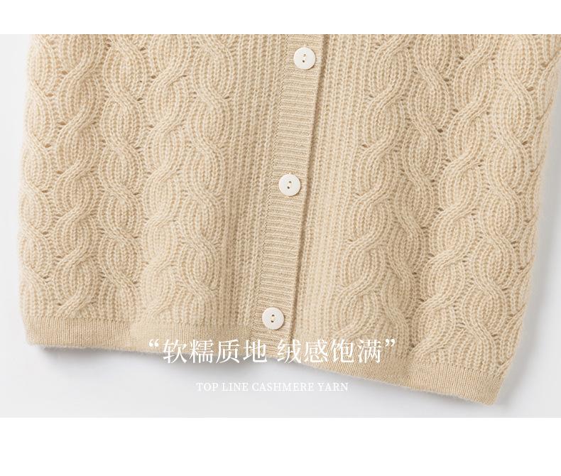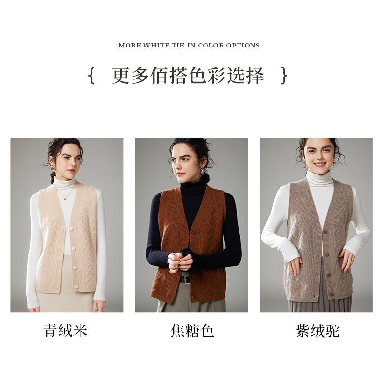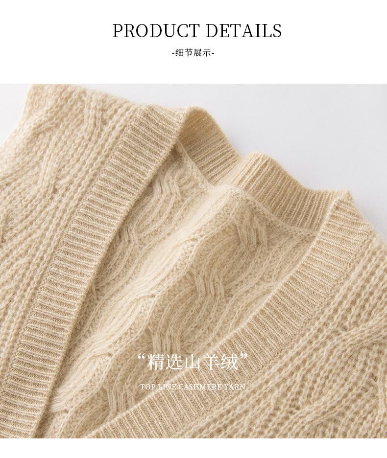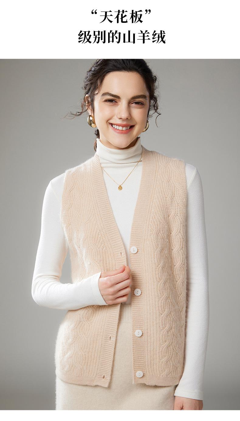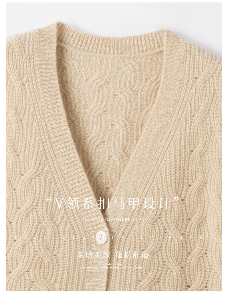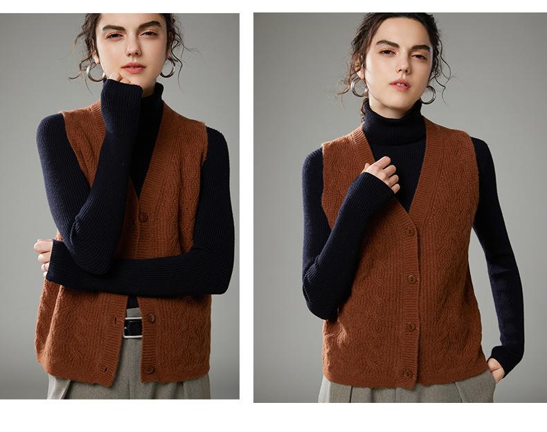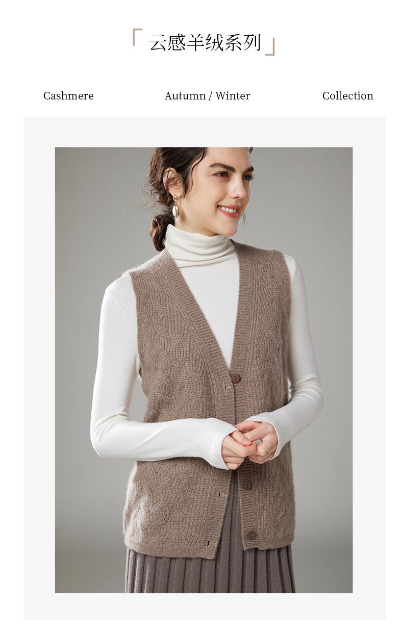 Chaleco de cachemira trenzado vintage de otoño e invierno 2024, chaleco tipo cárdigan con cuello en V y lana de punto sin mangas.