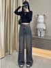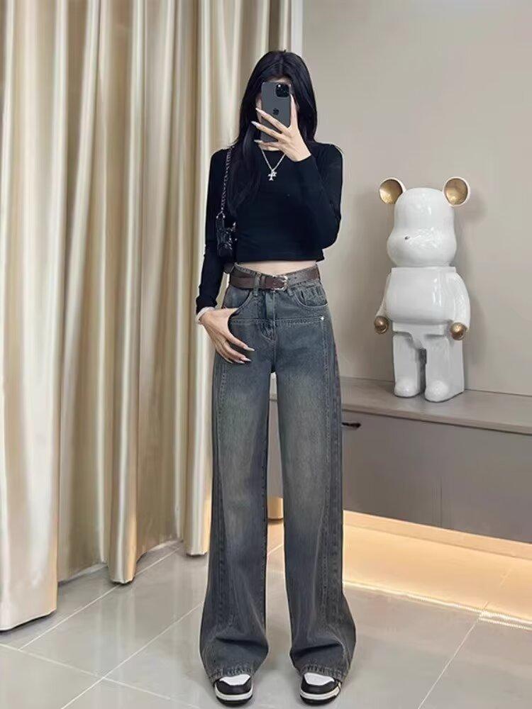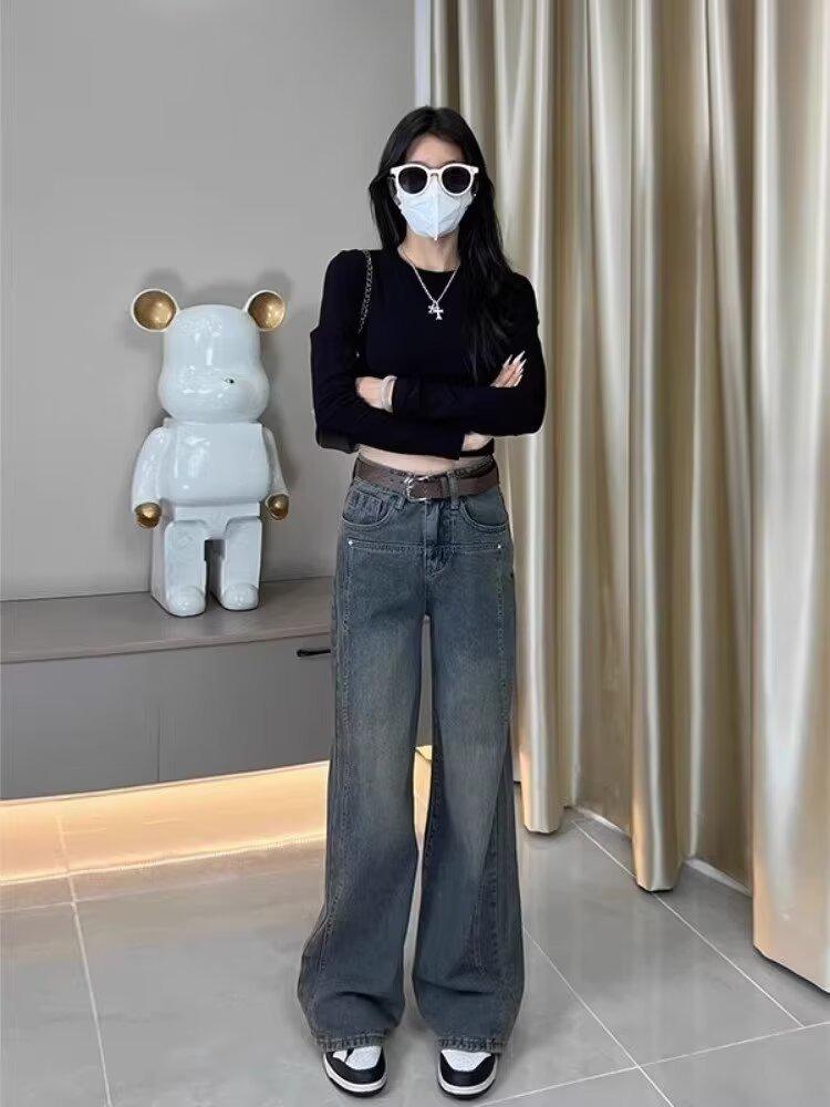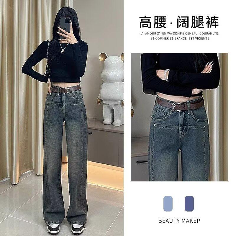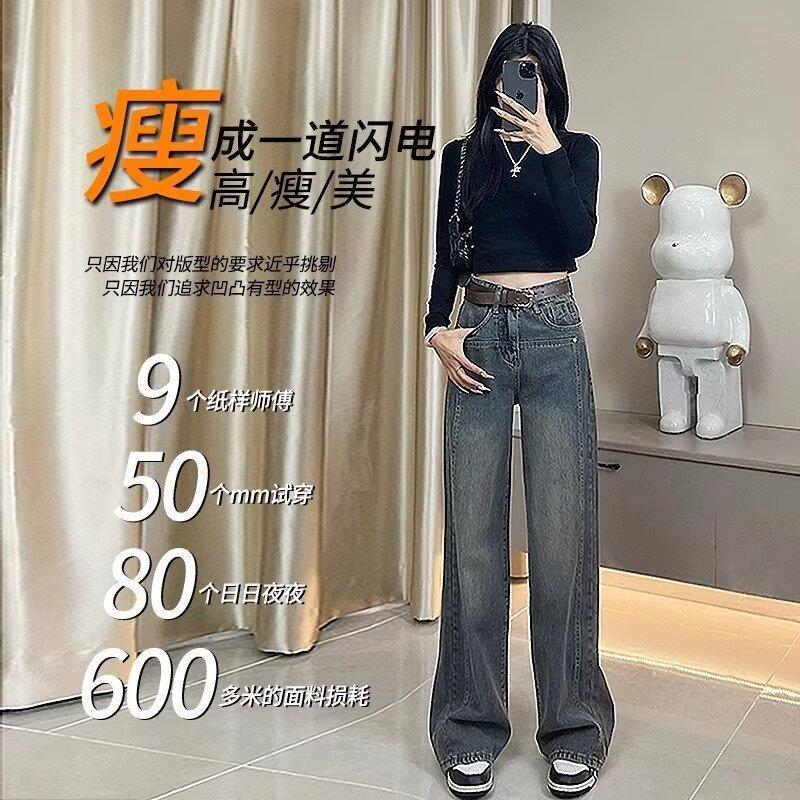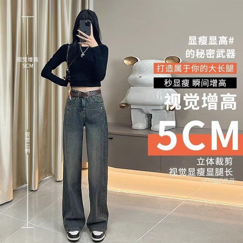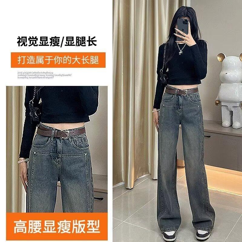 Pantalones vaqueros holgados rectos para mujer, primavera y otoño, cintura alta, pierna ancha y corta, novedad de verano de 2024.