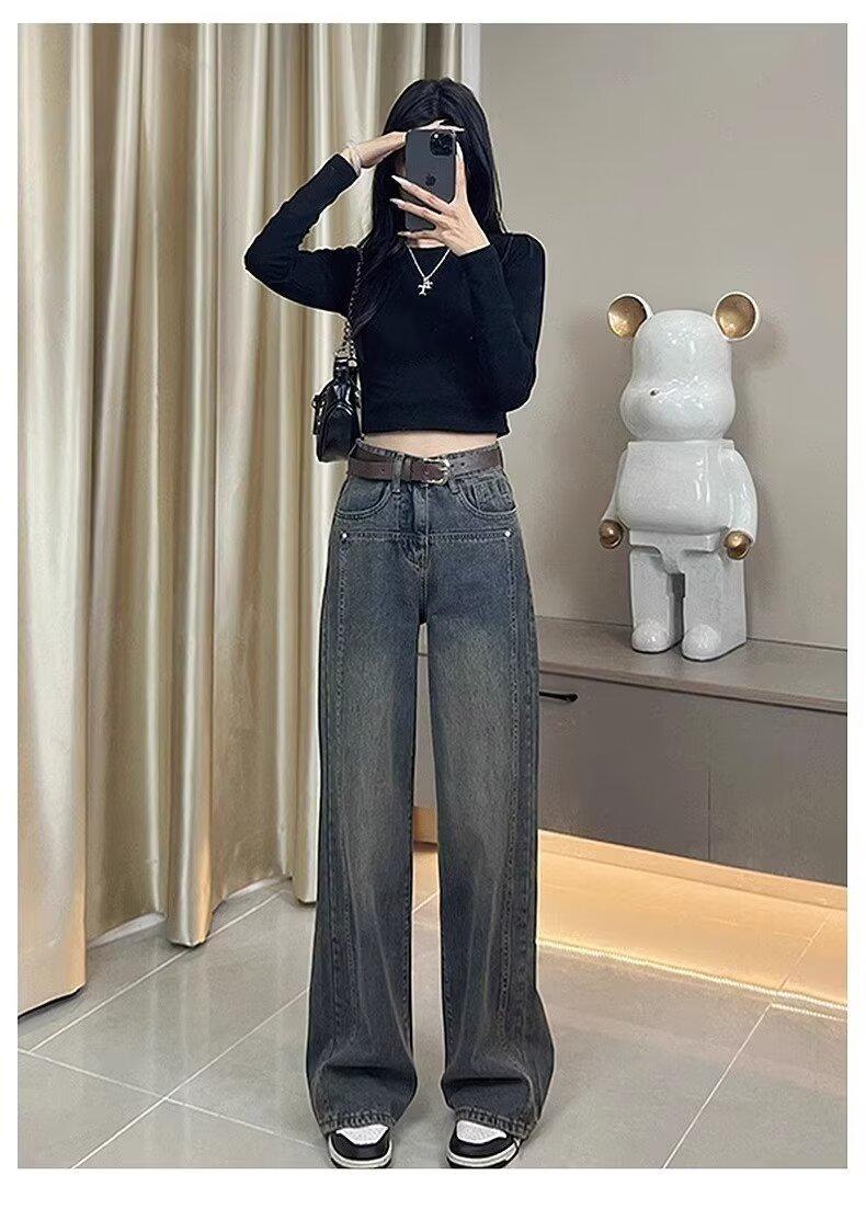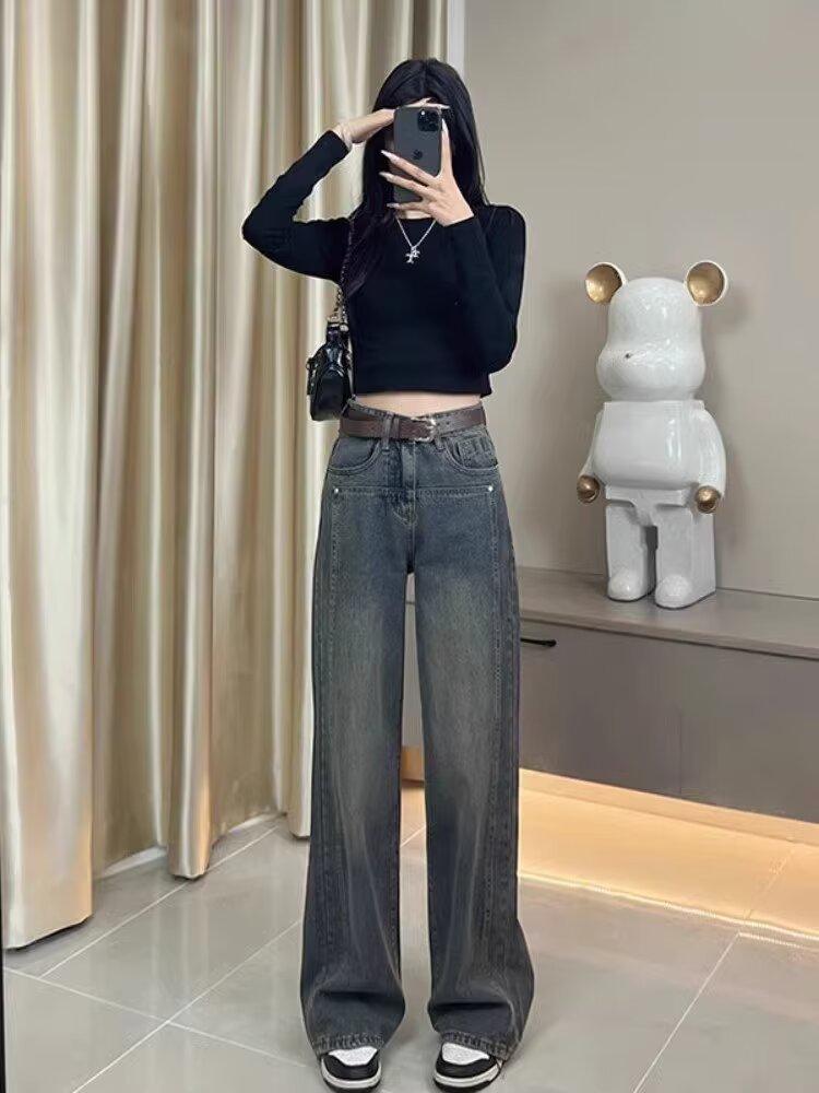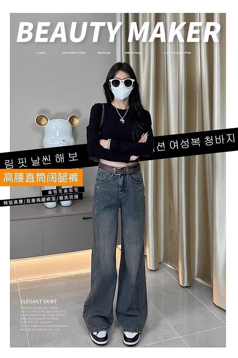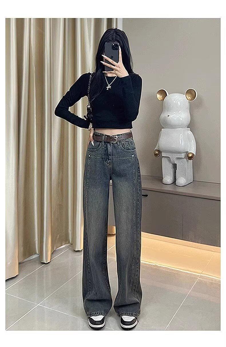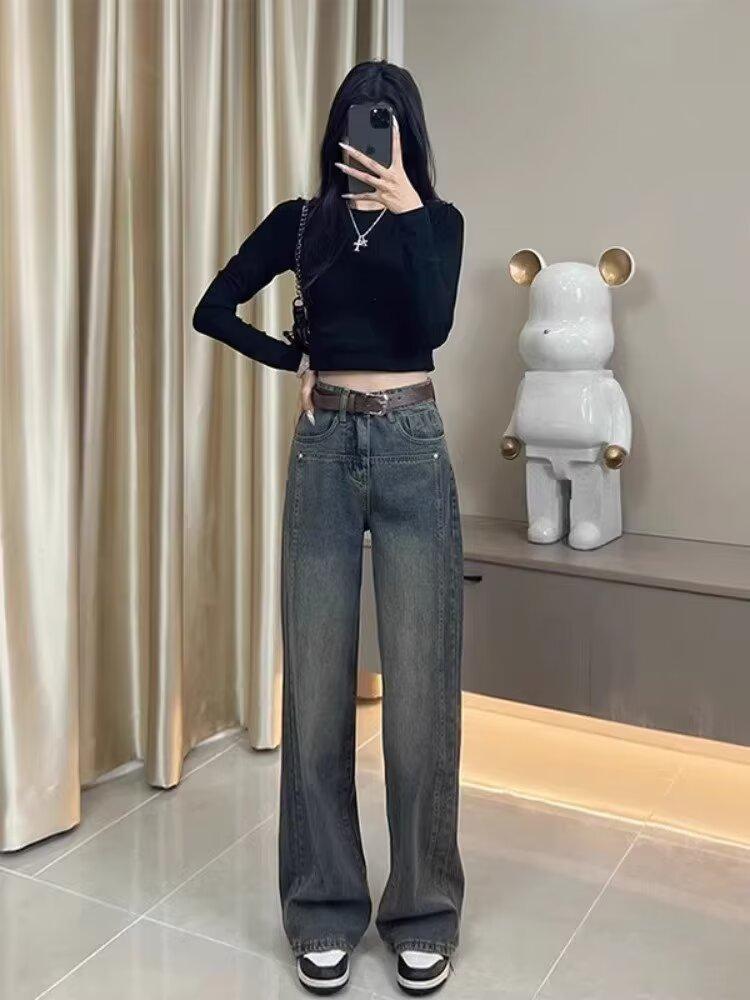 Pantalones vaqueros holgados rectos para mujer, primavera y otoño, cintura alta, pierna ancha y corta, novedad de verano de 2024.