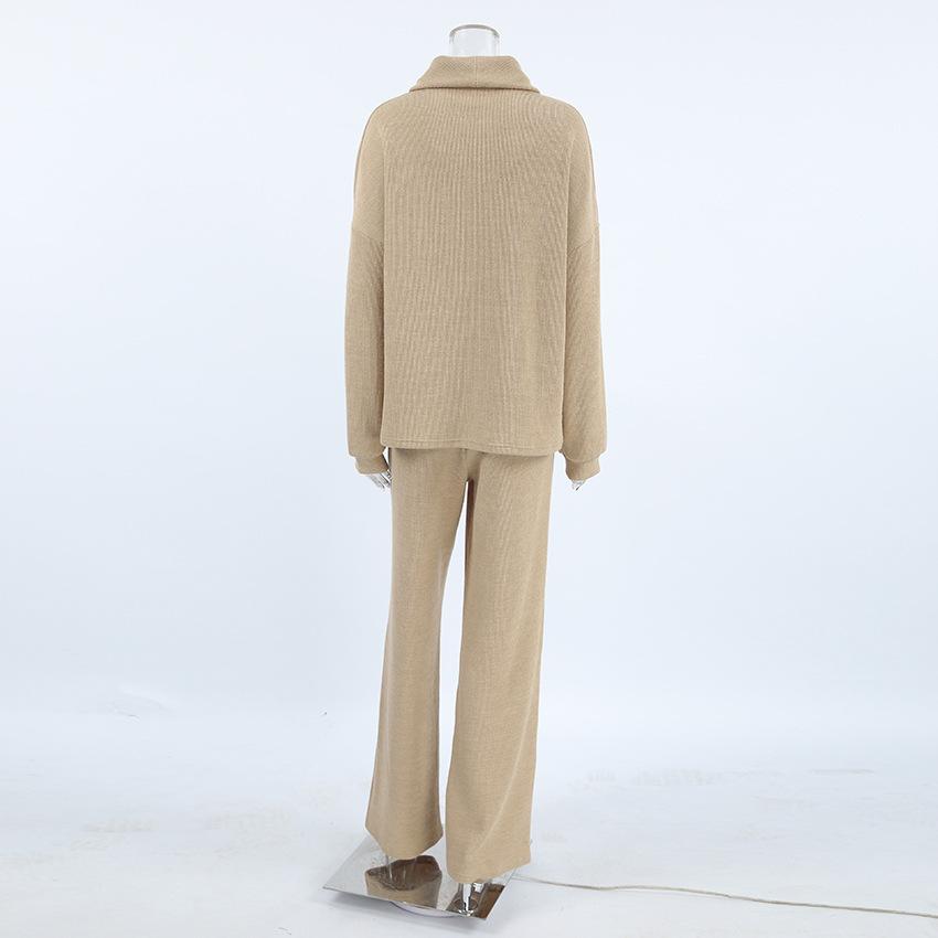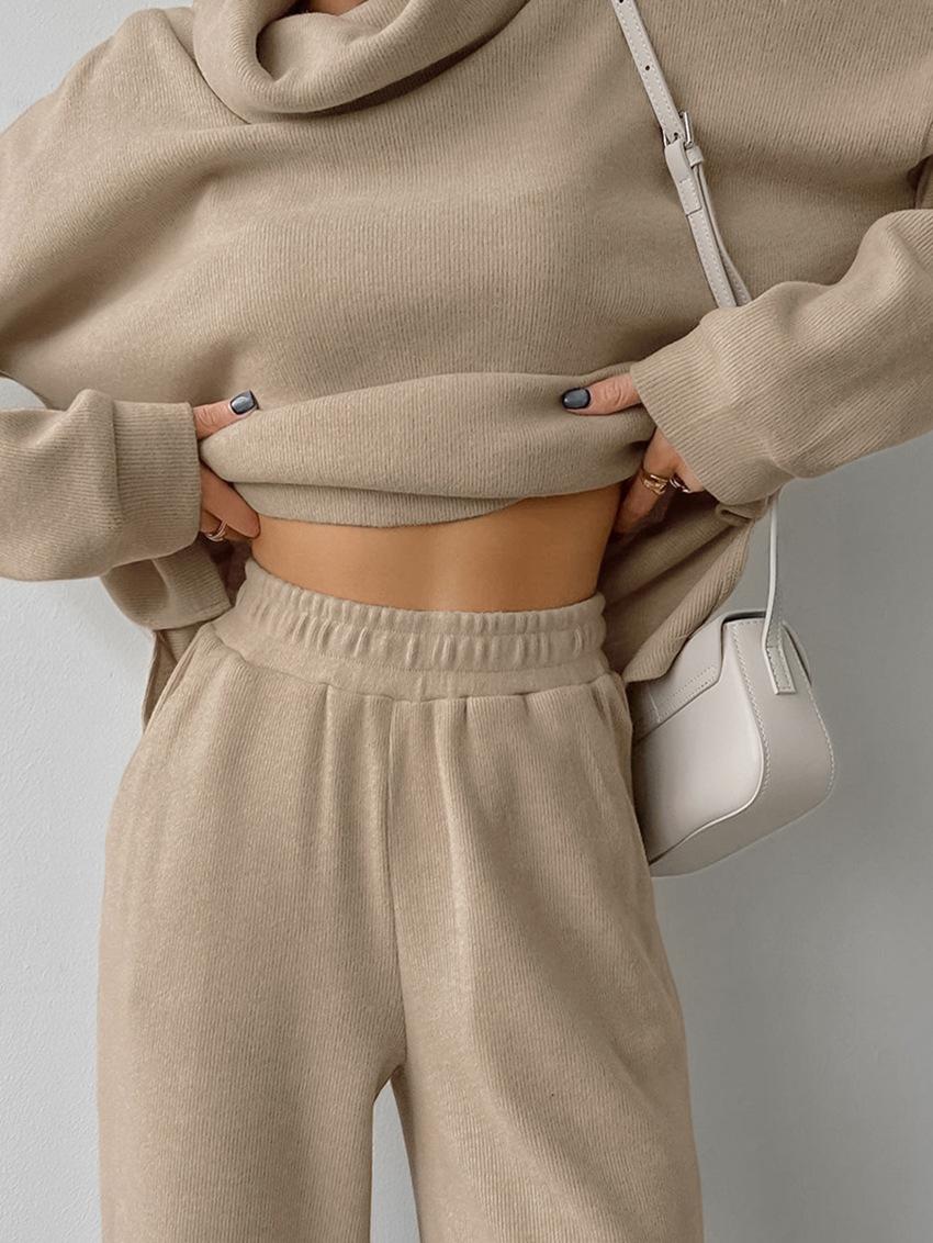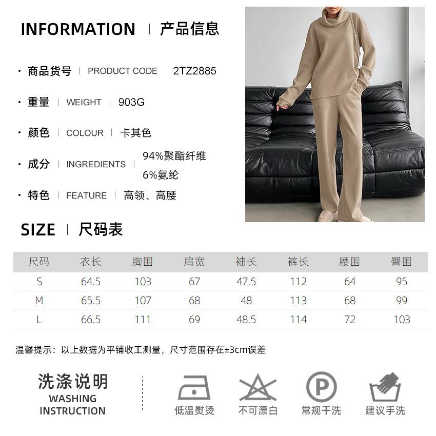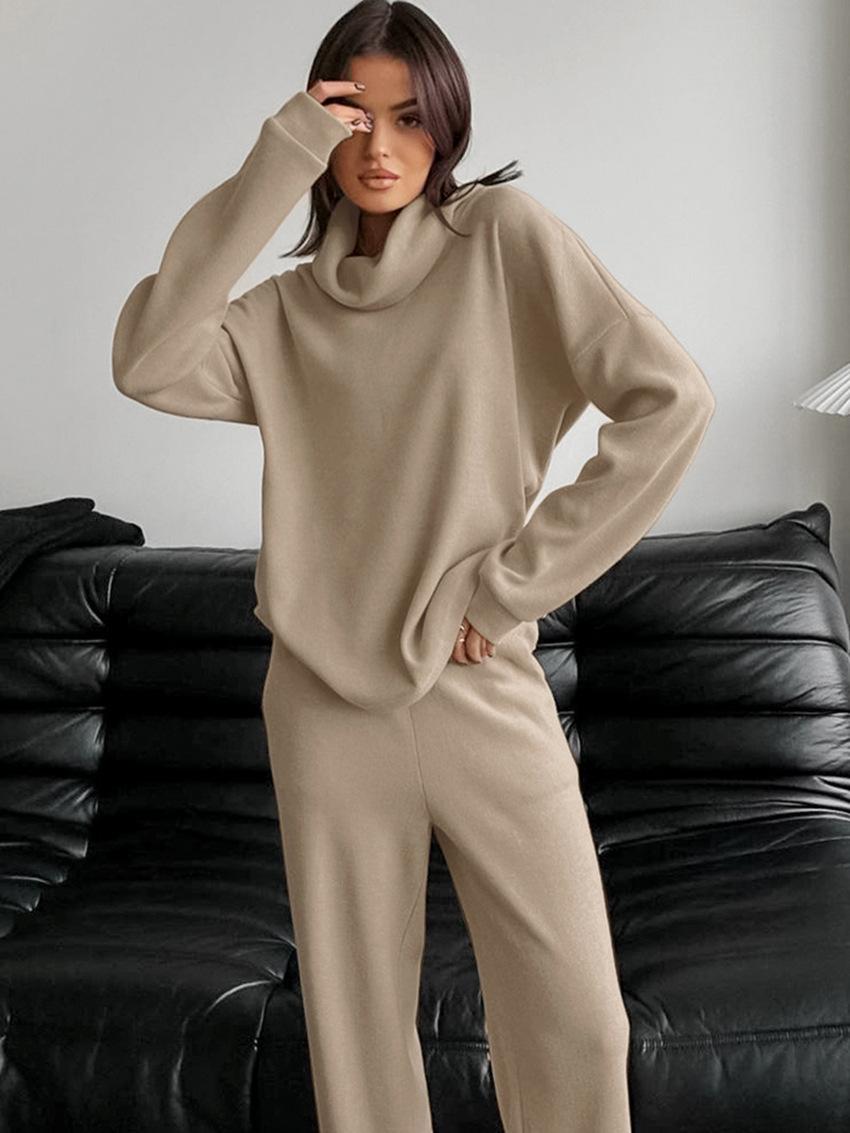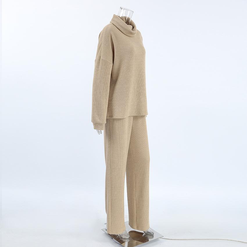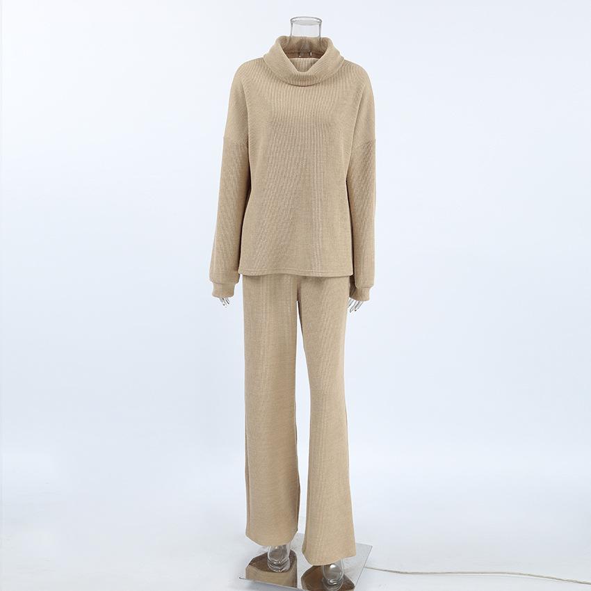 Traje casual de color sólido de cuello alto de moda 2024 otoño e invierno nuevo nicho transfronterizo Joker personalidad manga larga pantalones ropa de mujer