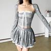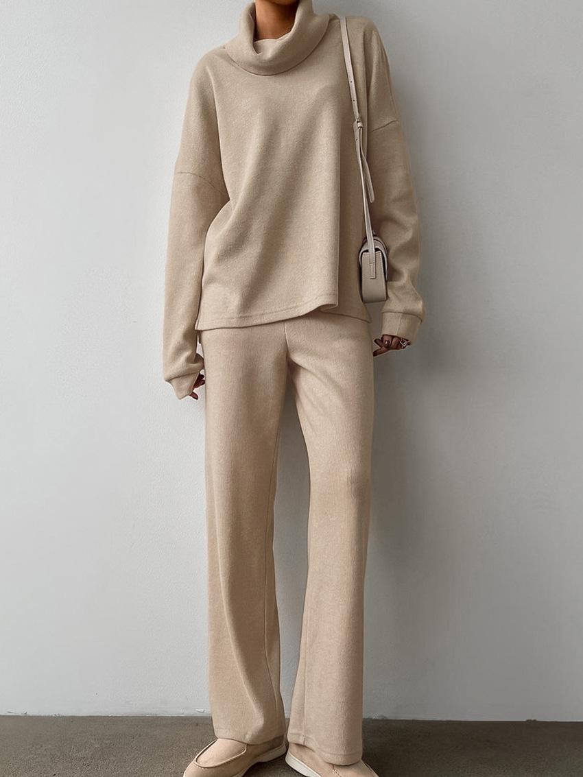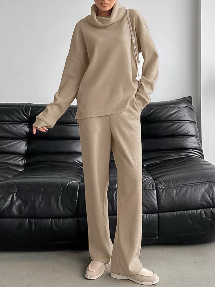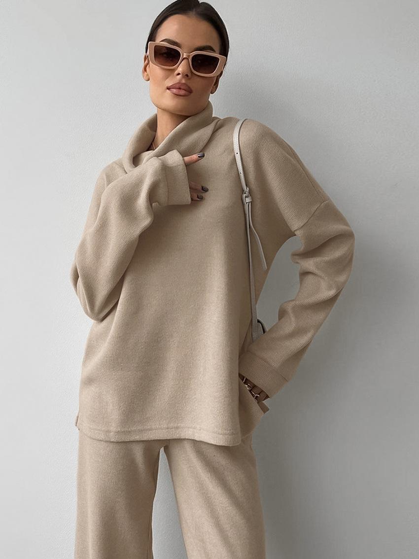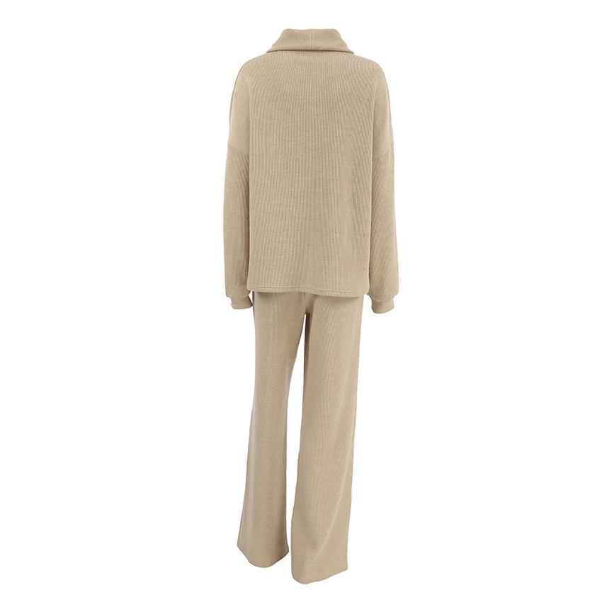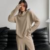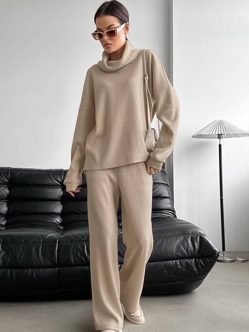 Traje casual de color sólido de cuello alto de moda 2024 otoño e invierno nuevo nicho transfronterizo Joker personalidad manga larga pantalones ropa de mujer