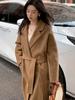 Dropshipping Abrigo de Cachemira de Doble Cara para Mujer Largo Medio Otoño e Invierno Nuevo Abrigo de Lana de Moda Slim para Personas Pequeñas