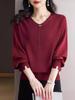 Elegante suéter adelgazante de cuello en V para mujer, camisa de fondo de estilo occidental simple para viajero frecuente, primavera y otoño, 2024