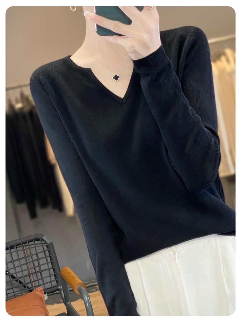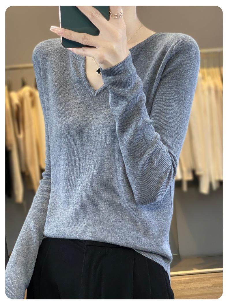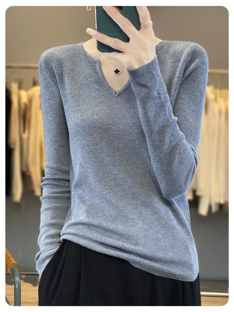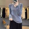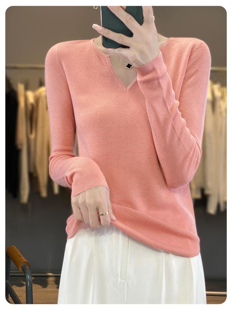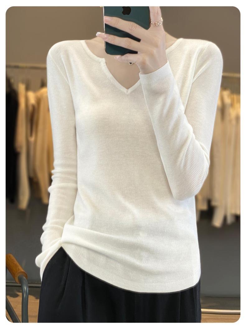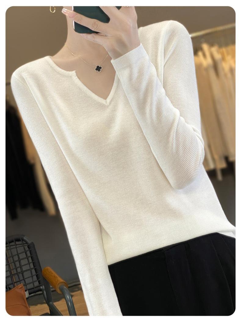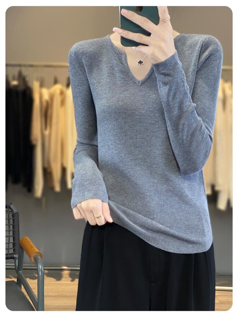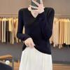 Estambre Cuatro Plano 2025 Primavera y Otoño Lana Fina para Mujer Ajustado Cuello Medio Abierto Suéter Tejido para Usar Debajo Suéter Adelgazante