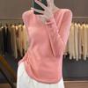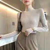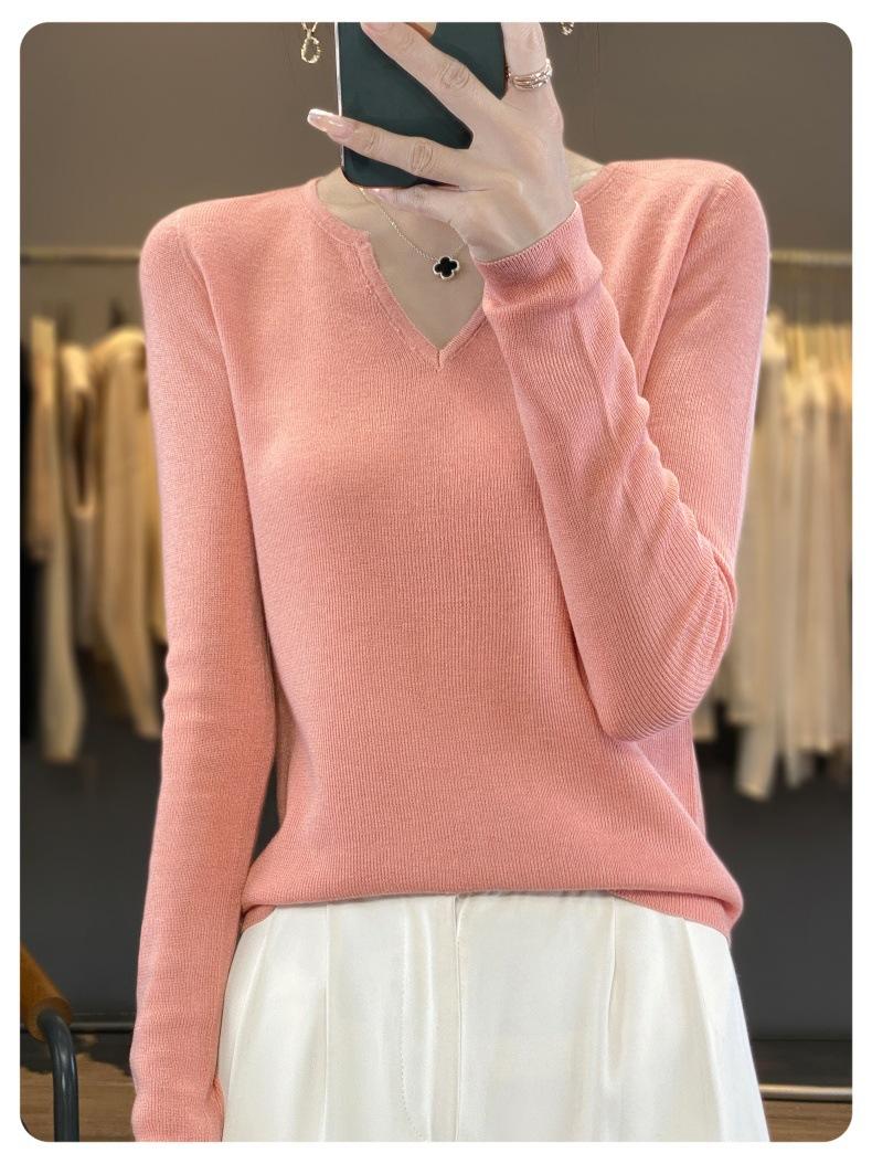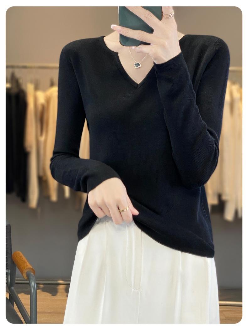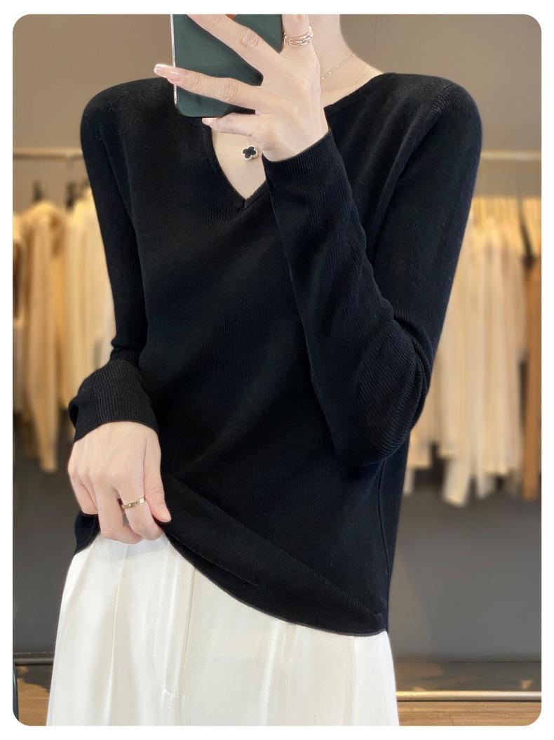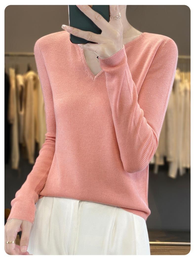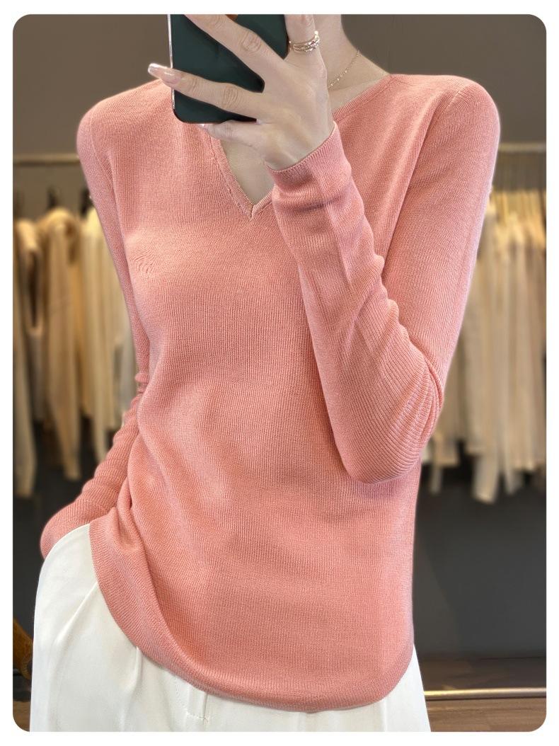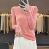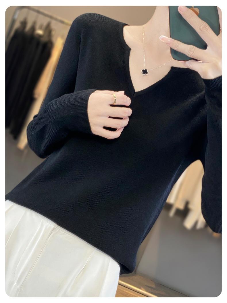 Estambre Cuatro Plano 2025 Primavera y Otoño Lana Fina para Mujer Ajustado Cuello Medio Abierto Suéter Tejido para Usar Debajo Suéter Adelgazante