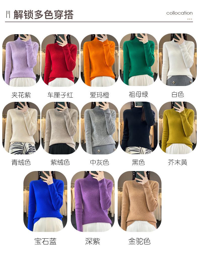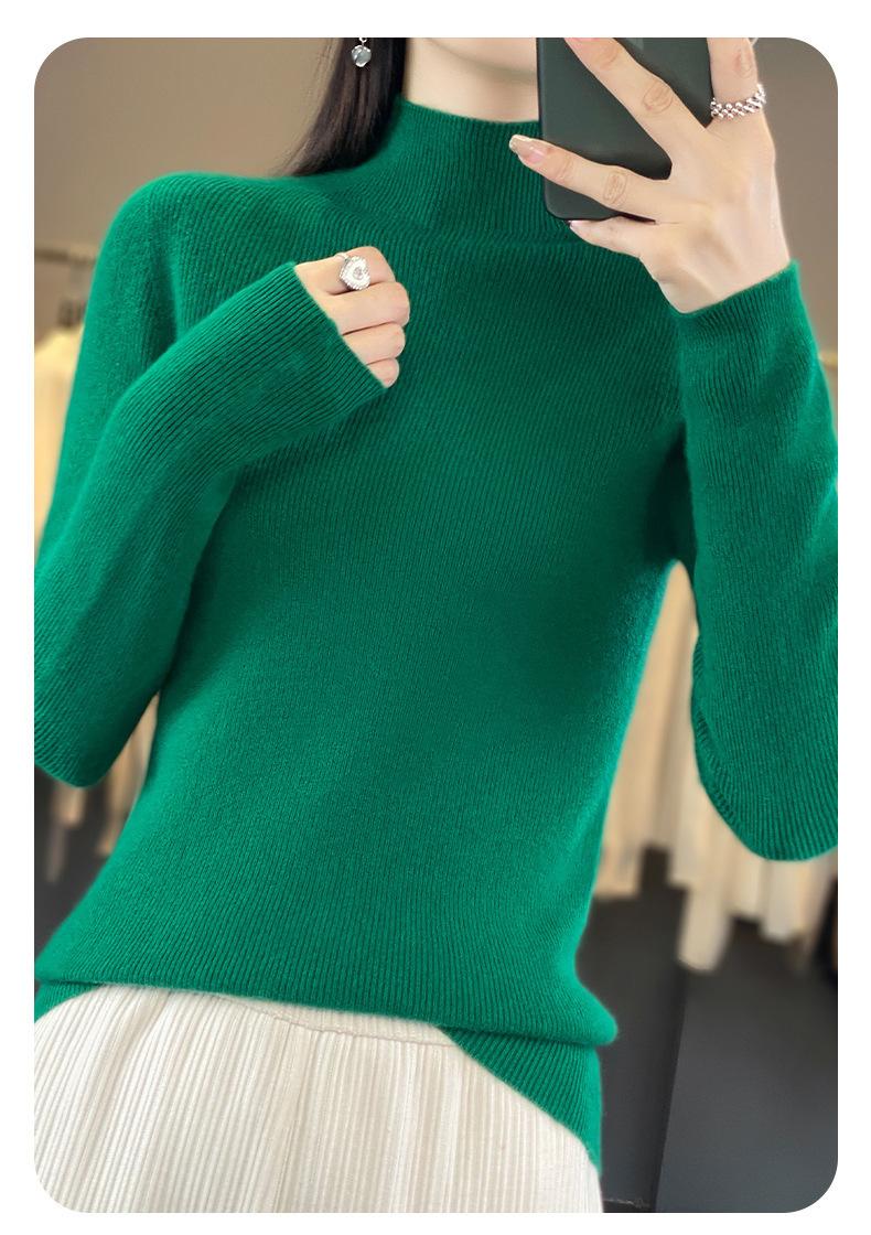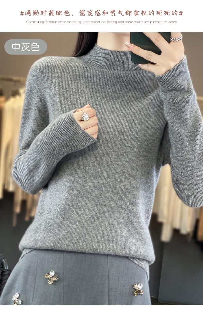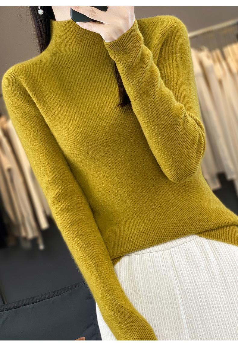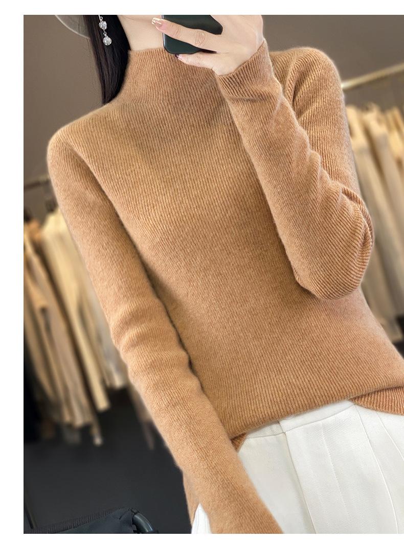 Suéter de lana de cuello medio alto para mujer, prenda de primera línea, nueva llegada de otoño e invierno, suéter de mujer, camisa interior ajustada