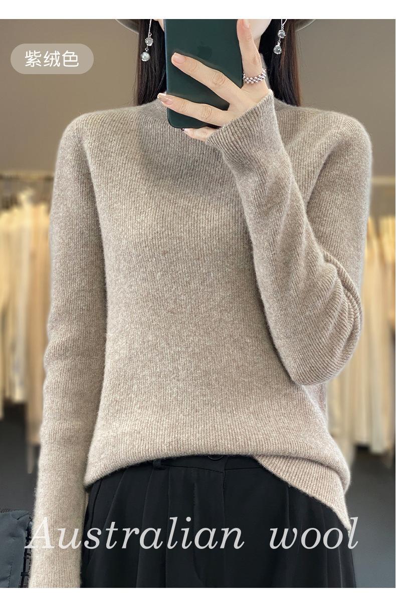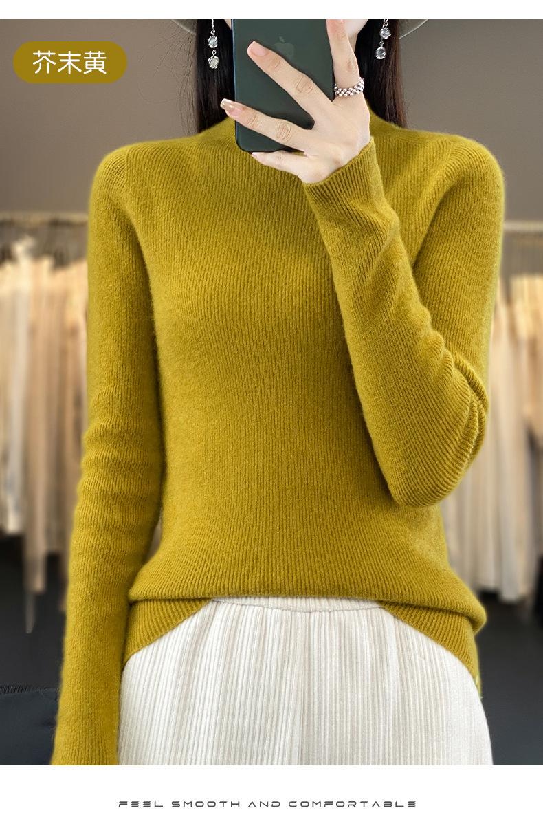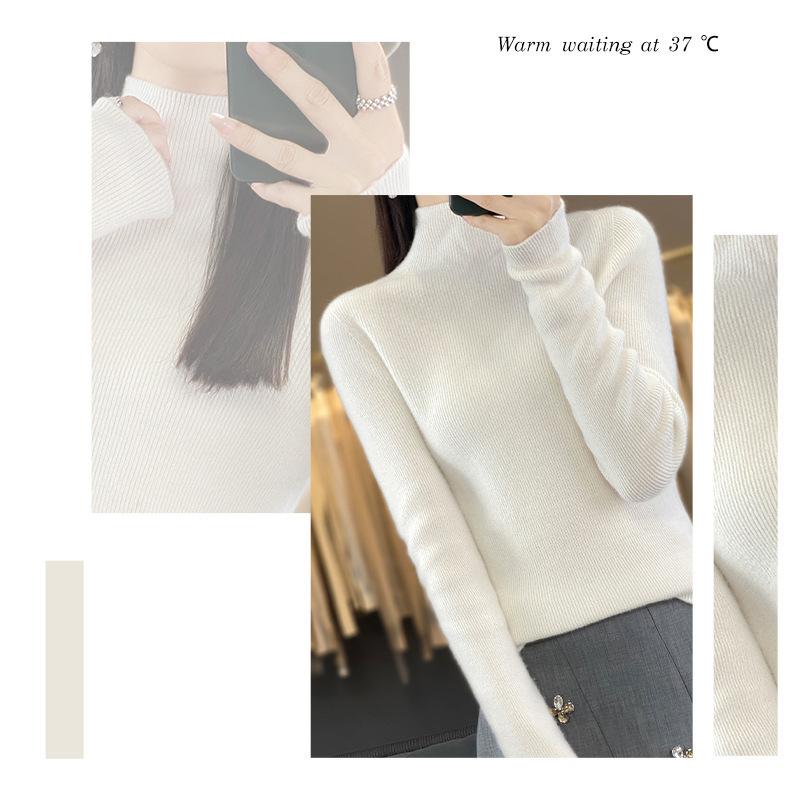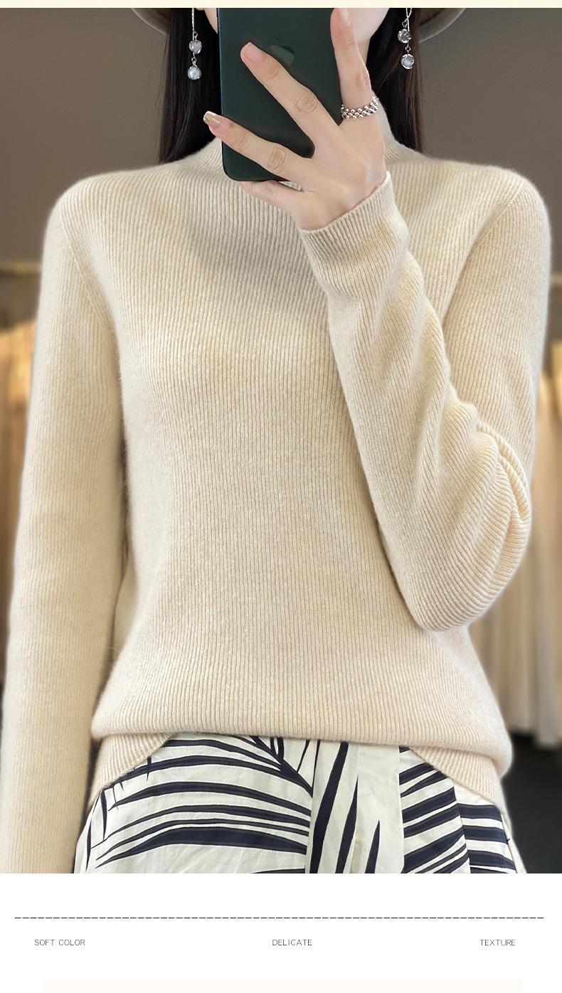 Suéter de lana de cuello medio alto para mujer, prenda de primera línea, nueva llegada de otoño e invierno, suéter de mujer, camisa interior ajustada