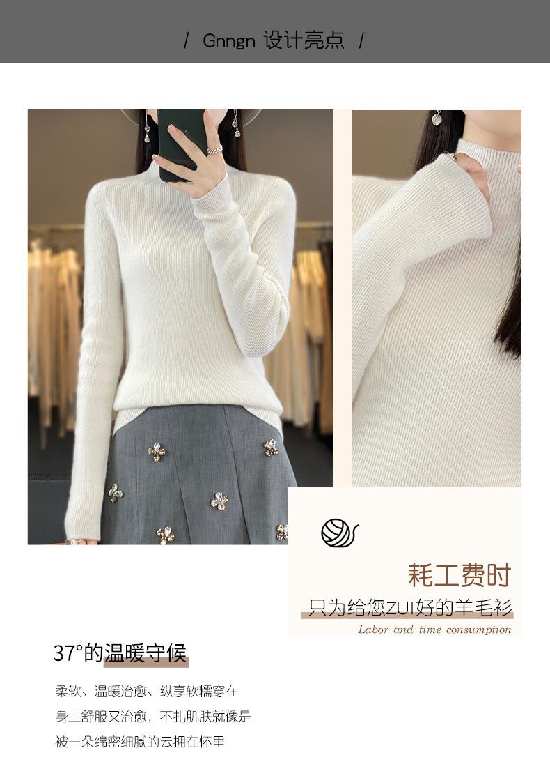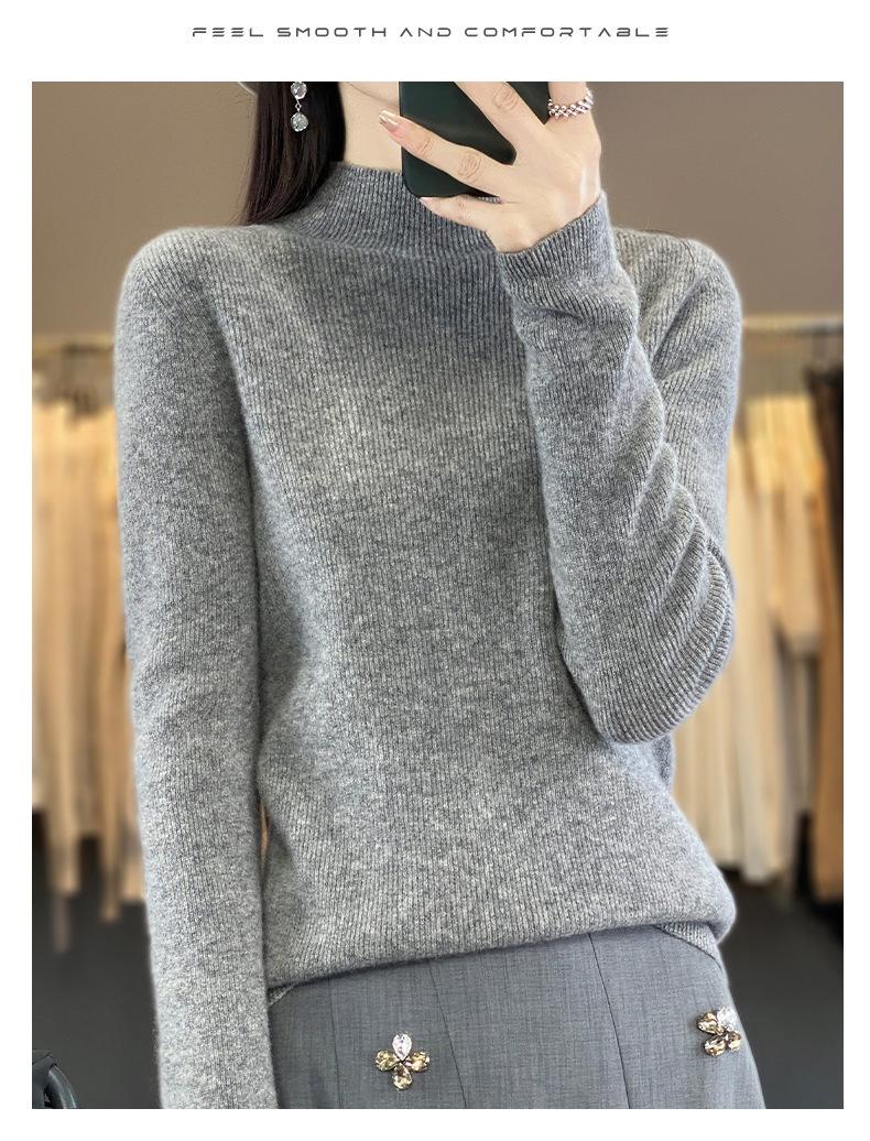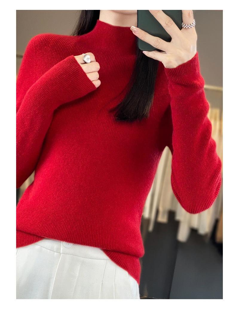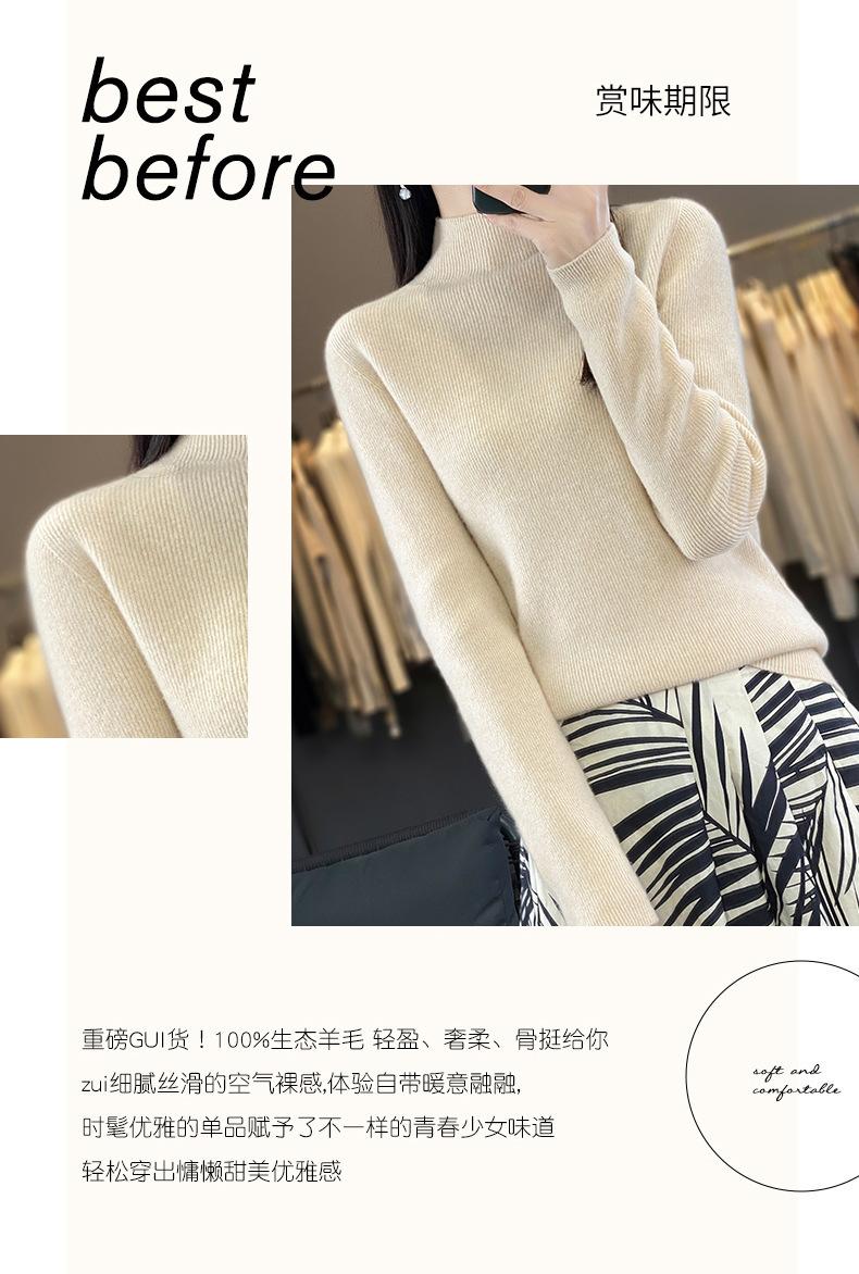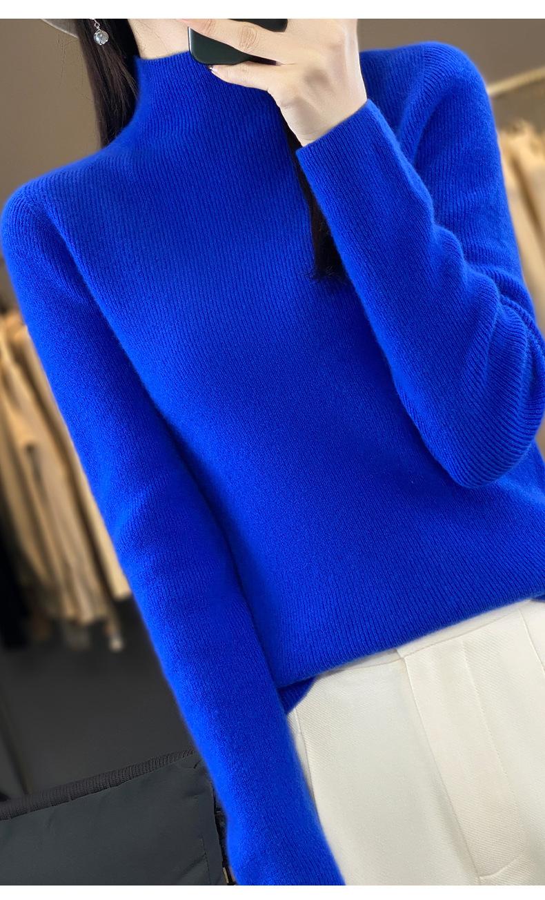 Suéter de lana de cuello medio alto para mujer, prenda de primera línea, nueva llegada de otoño e invierno, suéter de mujer, camisa interior ajustada
